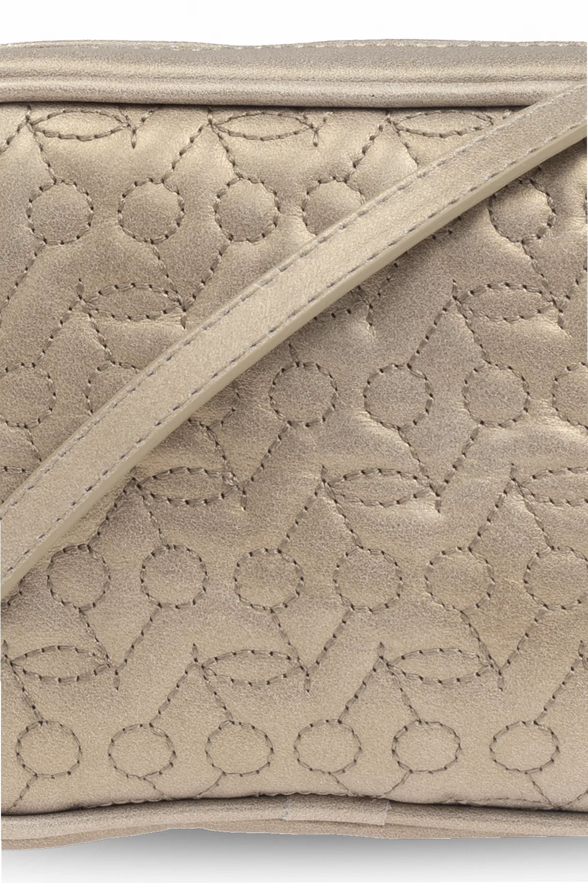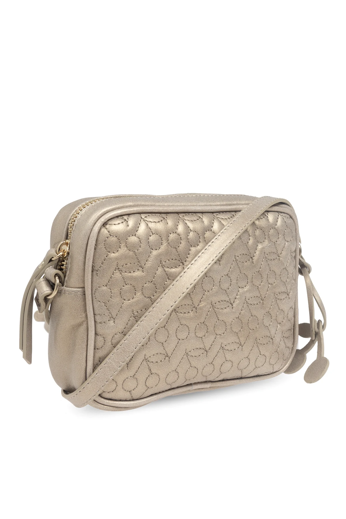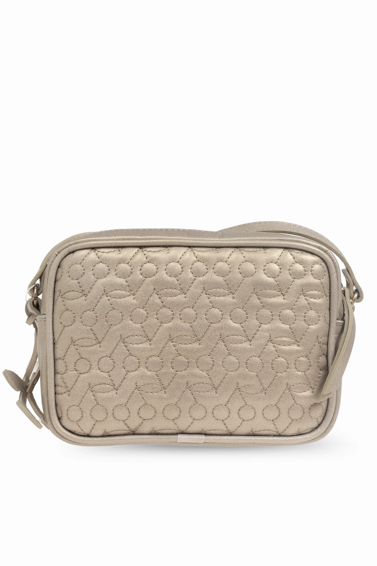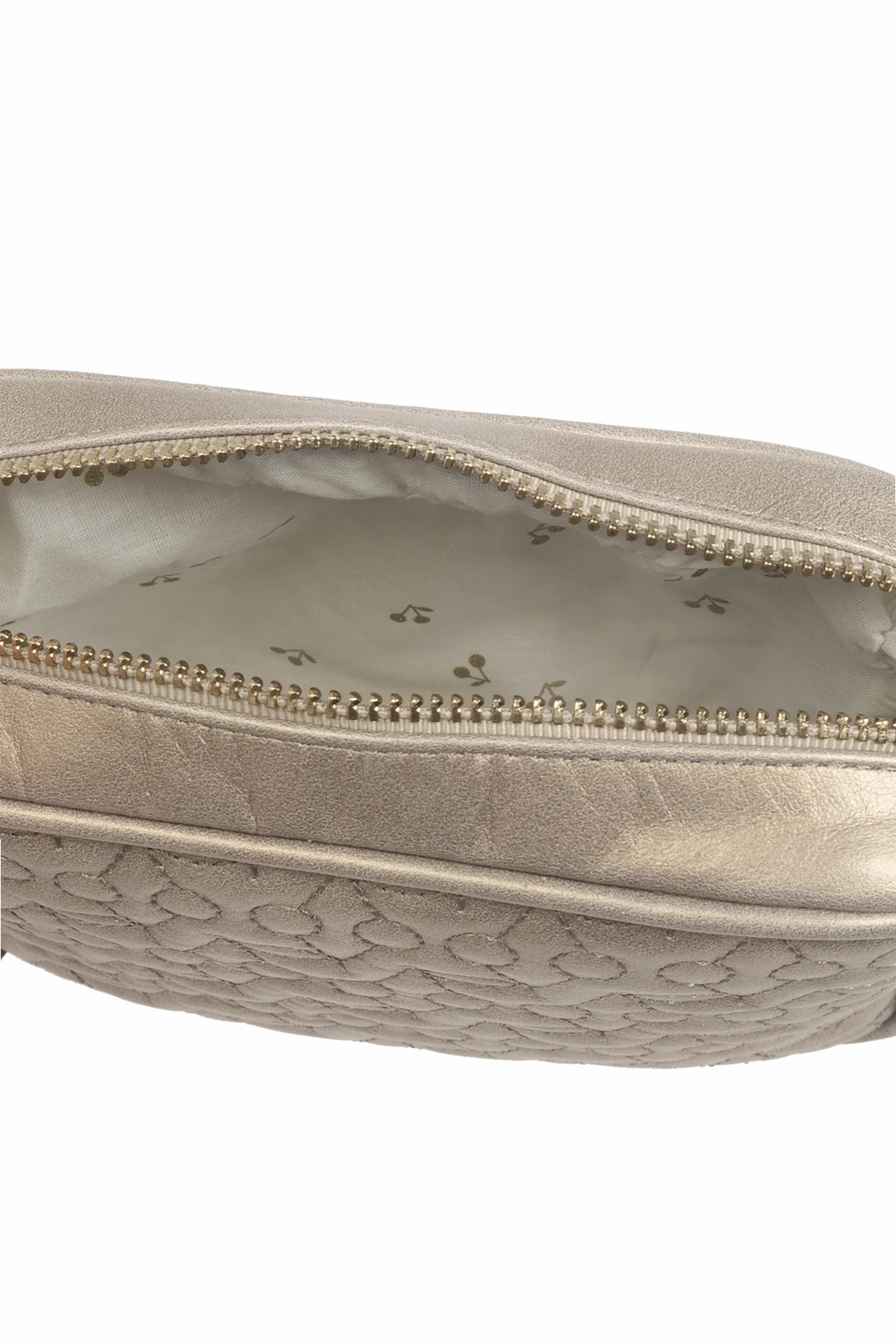 Introducing the Gold Quilted Shoulder Bag from the exclusive children\'s collection by Bonpoint. This compact and luxurious bag is the epitome of elegance and functionality, designed to add a touch of sophistication to any young wardrobe. Crafted from premium-quality, gold-toned calfskin leather, this bag features a distinctive quilted pattern of geometric shapes, combining circles and lines, which adds depth and visual interest. The rectangular shape with gently rounded corners enhances its chic and timeless appeal. The bag is equipped with a long, adjustable shoulder strap, ensuring a comfortable fit for children of various ages. The gold zipper not only complements the overall design but also offers secure and effortless closure. Inside, the bag is lined with a light-colored fabric adorned with a subtle pattern, providing a delicate contrast to the metallic exterior. Additional decorative elements around the zipper serve as both aesthetic accents and practical handles, further emphasizing the meticulous attention to detail that Bonpoint is renowned for. Why Choose This Product? Exquisite Design: The gold quilted pattern and luxurious materials make it a standout piece. Practicality: Compact yet spacious enough for everyday essentials. Adjustable Strap: Ensures a perfect fit for children of different ages. Secure Closure: Gold zipper adds elegance and security. Exclusive Brand: Designed by the prestigious French fashion house Bonpoint.