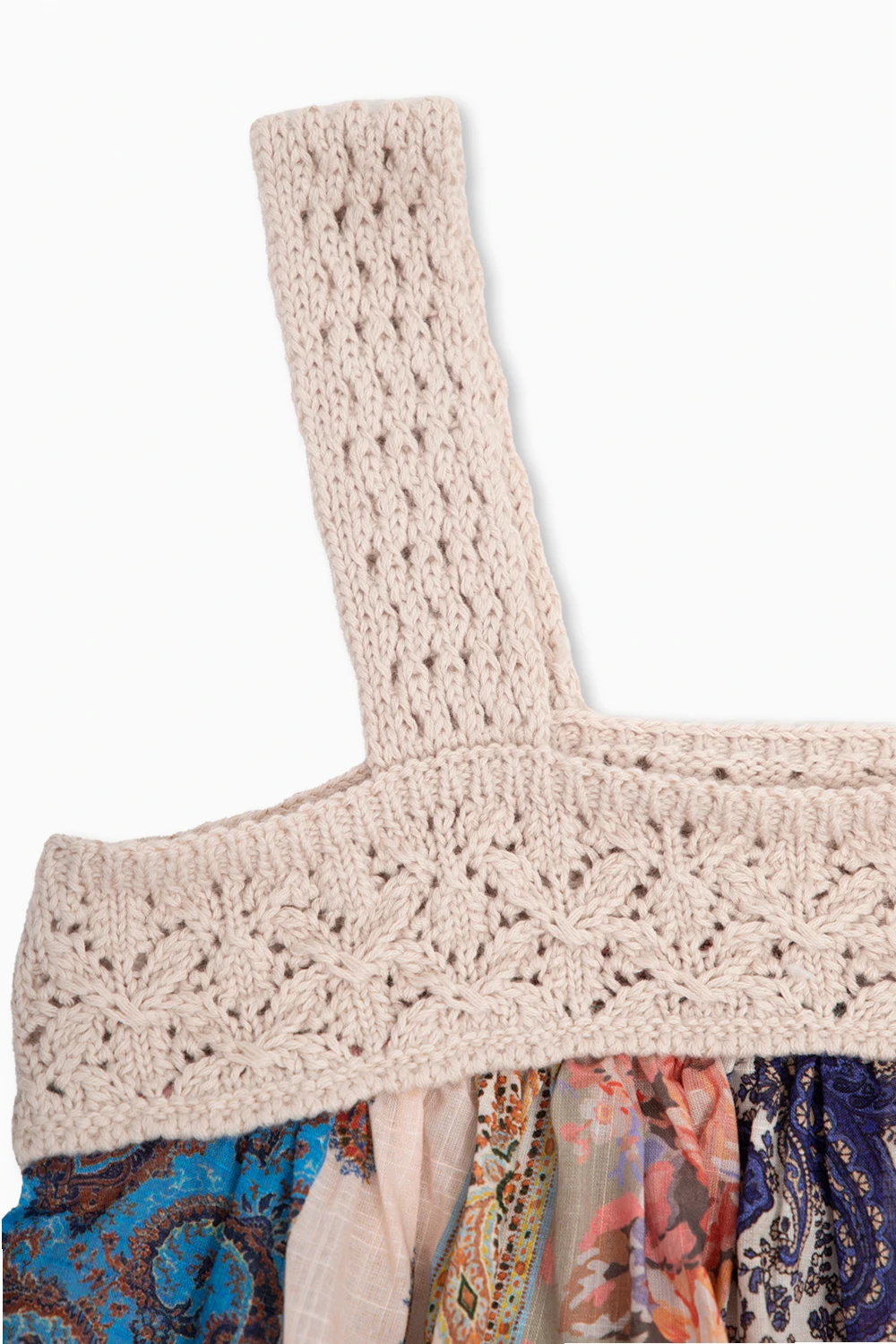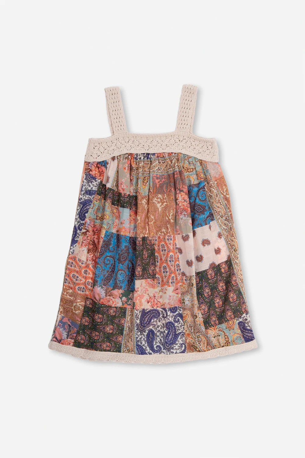 Multicoloured slip dress from Zimmermann Kids. Made of cotton, this style features a paisley pattern and decorative crochet detailing.