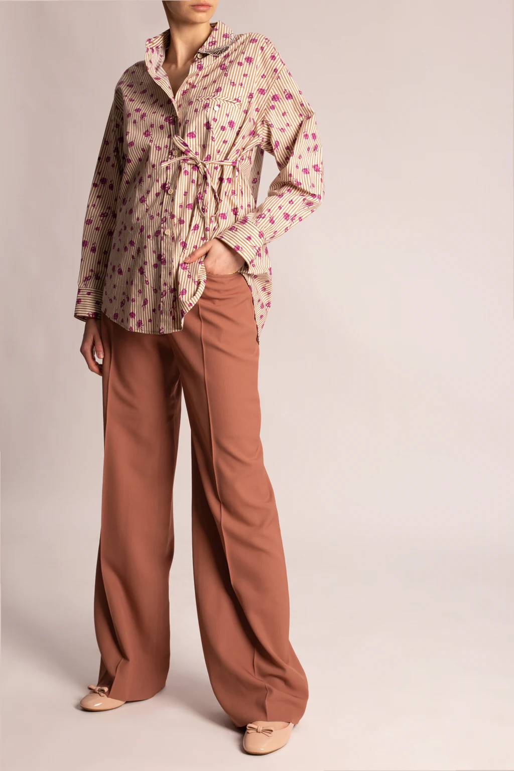 Beige \'Kiersten\' ballet flats from Kate Spade. Crafted from patent leather, this pair sits on a brown rubber sole and showcases the brand\'s logo and a decorative bow on the front.