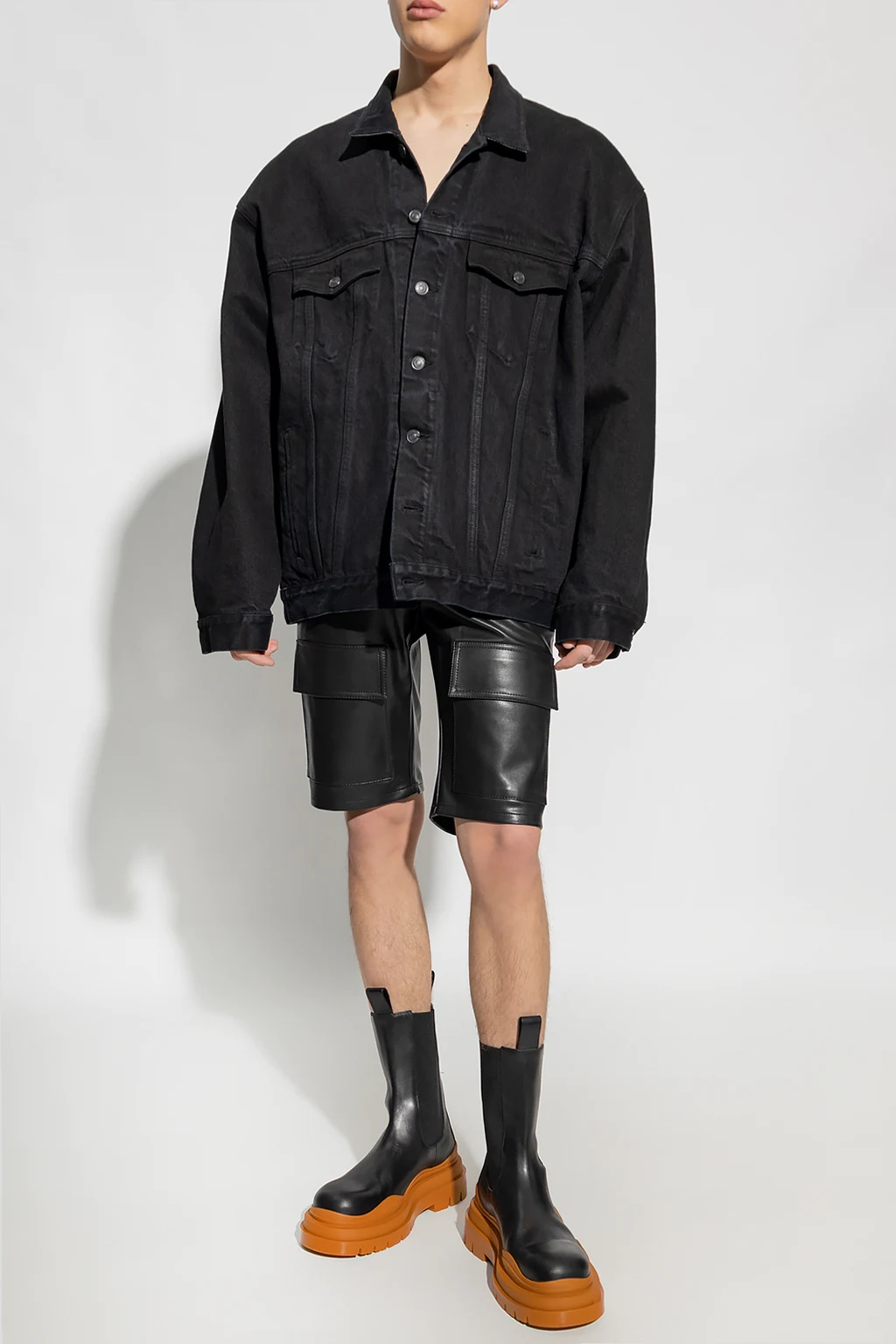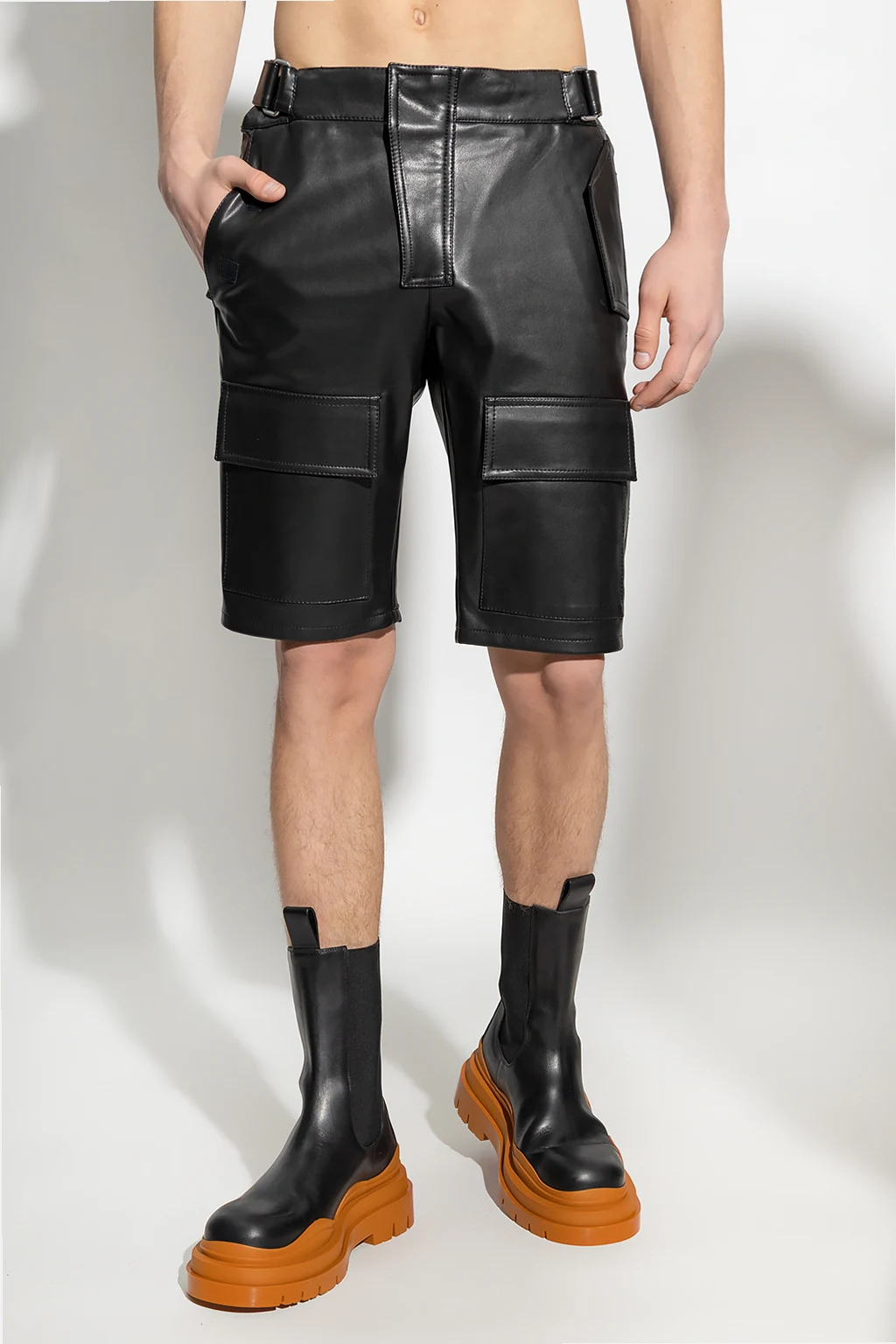 Black shorts from MISBHV, the ‘Garden Of Dreams’ collection. Made of vegan leather, this pair features an elastic waistband with decorative velcro straps, zip and snap buttons and multiple pockets.