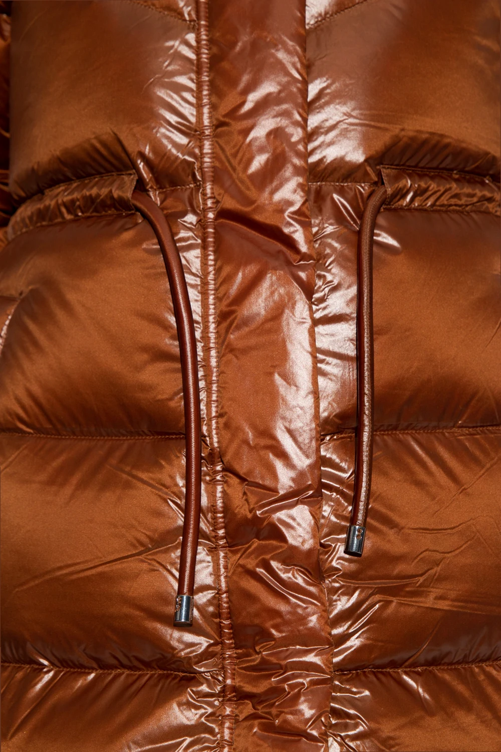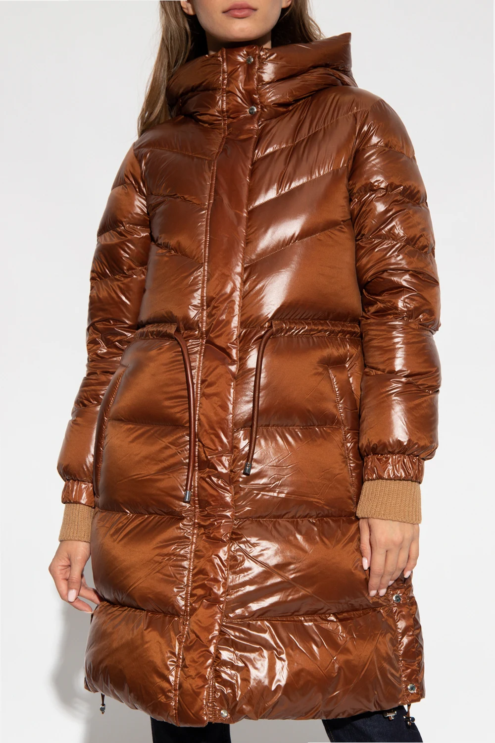 Brown hooded down jacket from Woolrich. Fastened with a two-way zip and snaps, this water- and windproof garment is padded with RDS-certified down and complete with a drawstring waist and hem, pockets with Polygiene ViralOff® treatment that kills 99% of the current viruses in two hours within a textile and long sleeves with ribbed cuffs. Temperature range: 0°C to -10°C