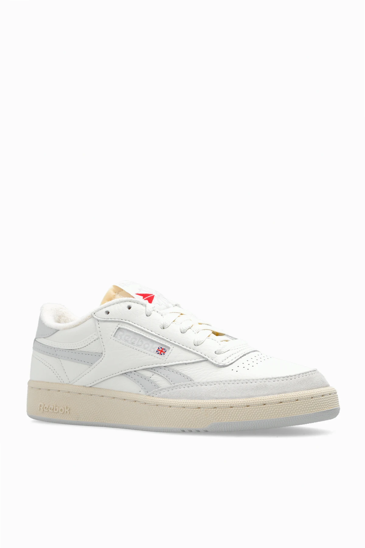 Cream and light grey ‘Club C Revenge’ sneakers from Reebok. Crafted from leather, this lace-up model sits on a cream rubber sole and showcases the brand\'s logo.