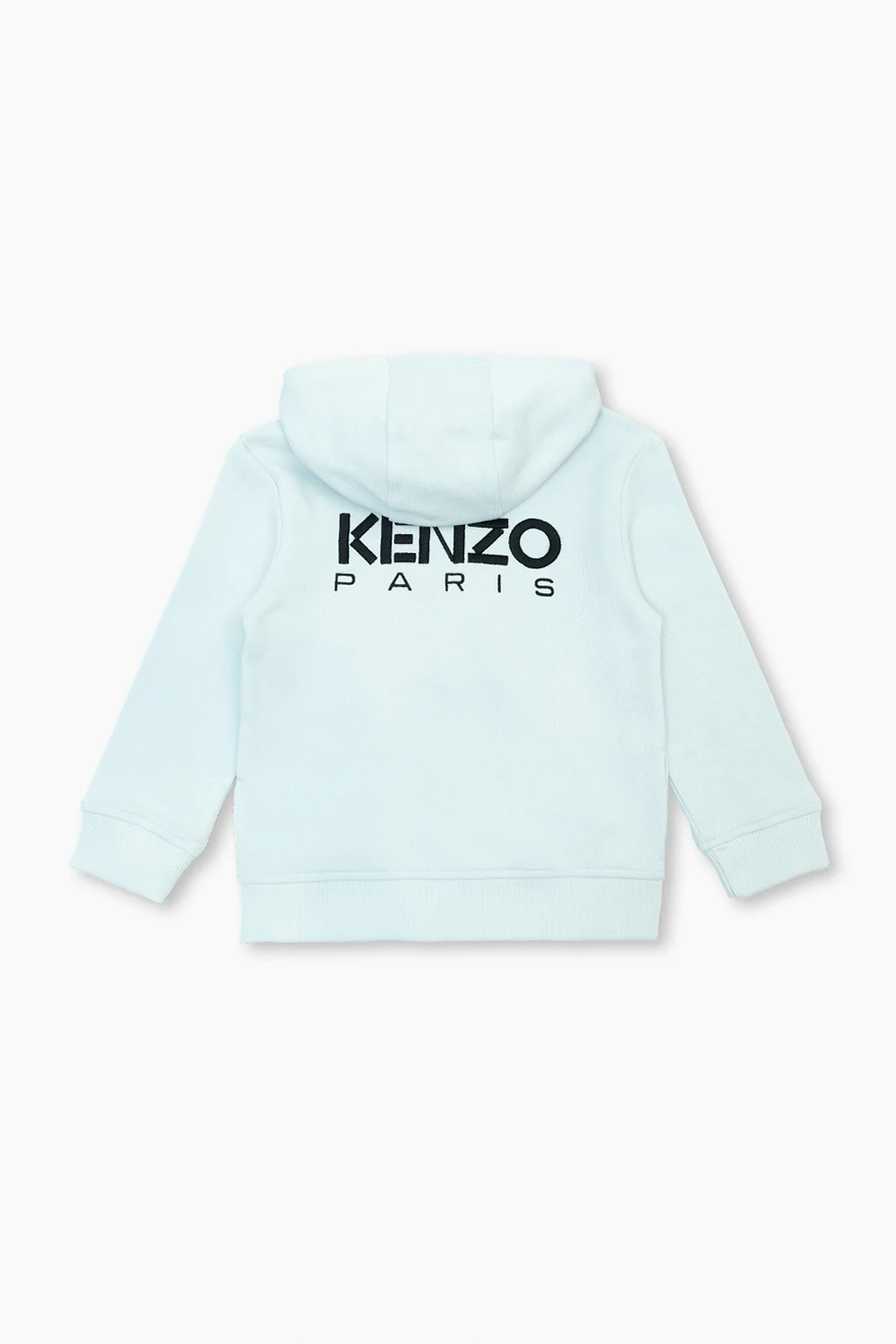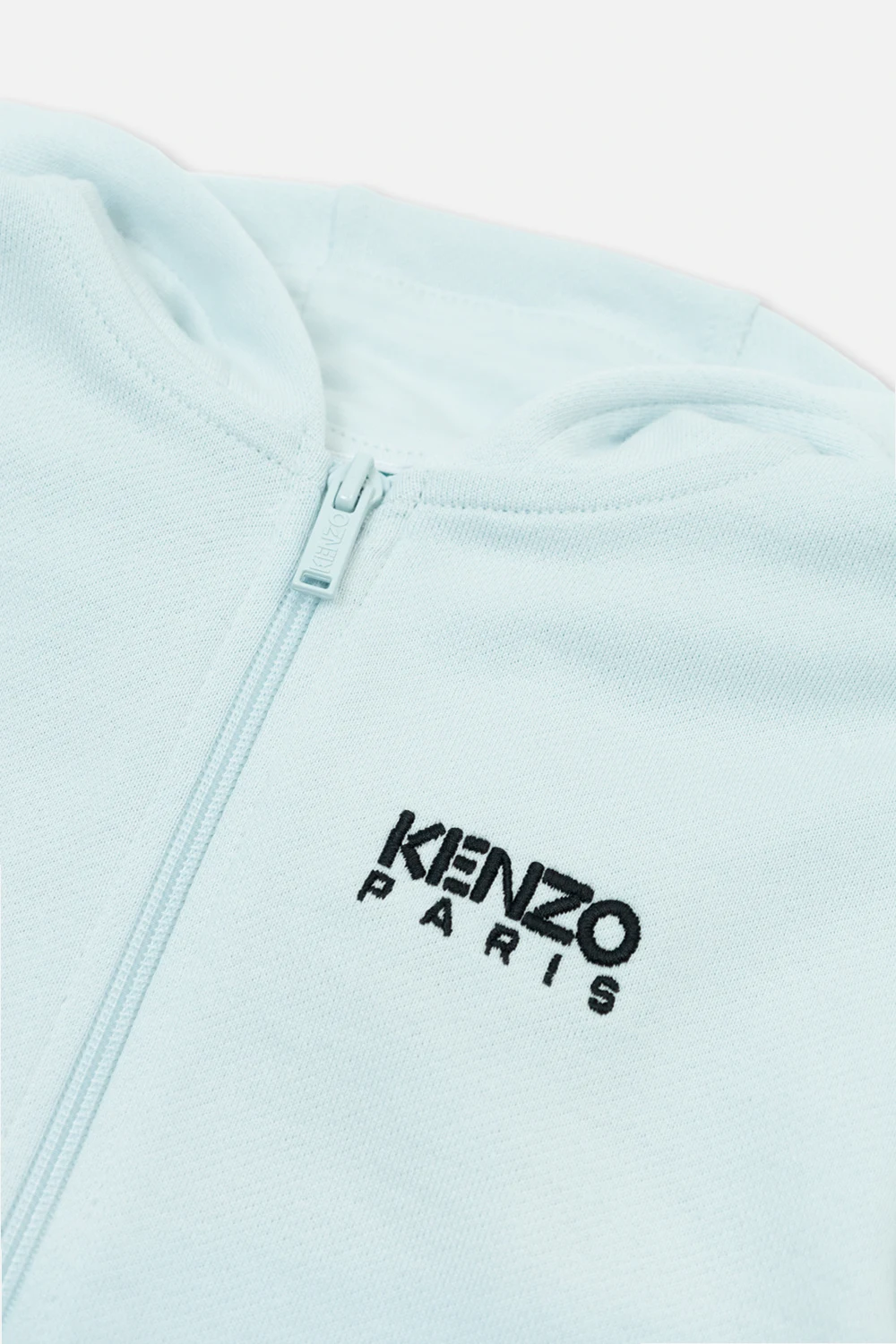 Light blue hoodie from Kenzo Kids. Made of cotton, this design features a zip fastening, black logo embroidery, side pockets and ribbed trims at the hem and cuffs.