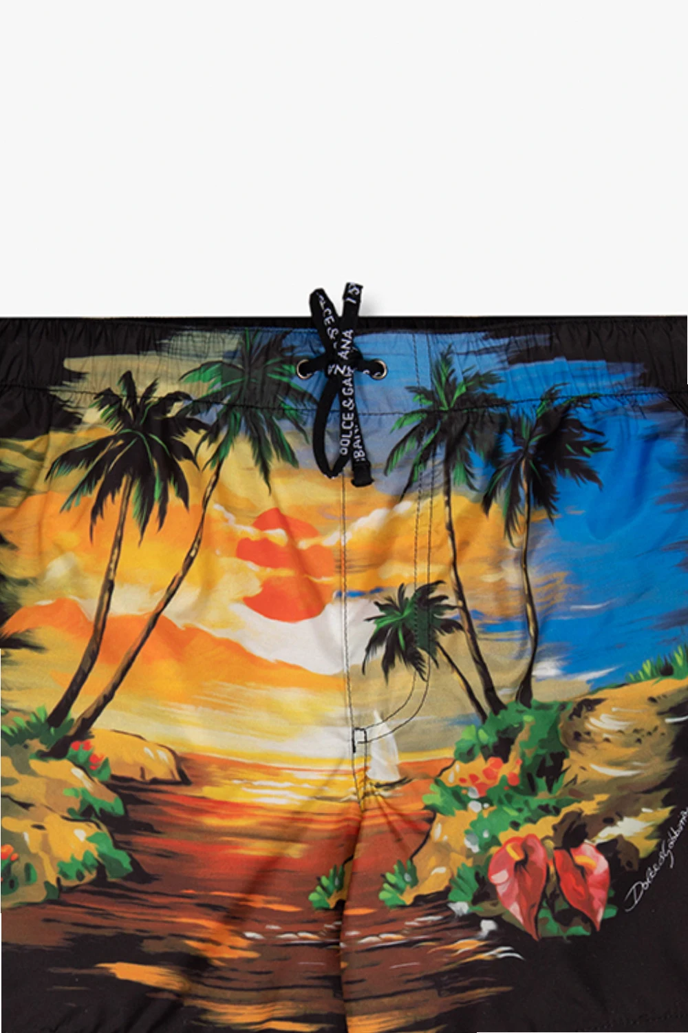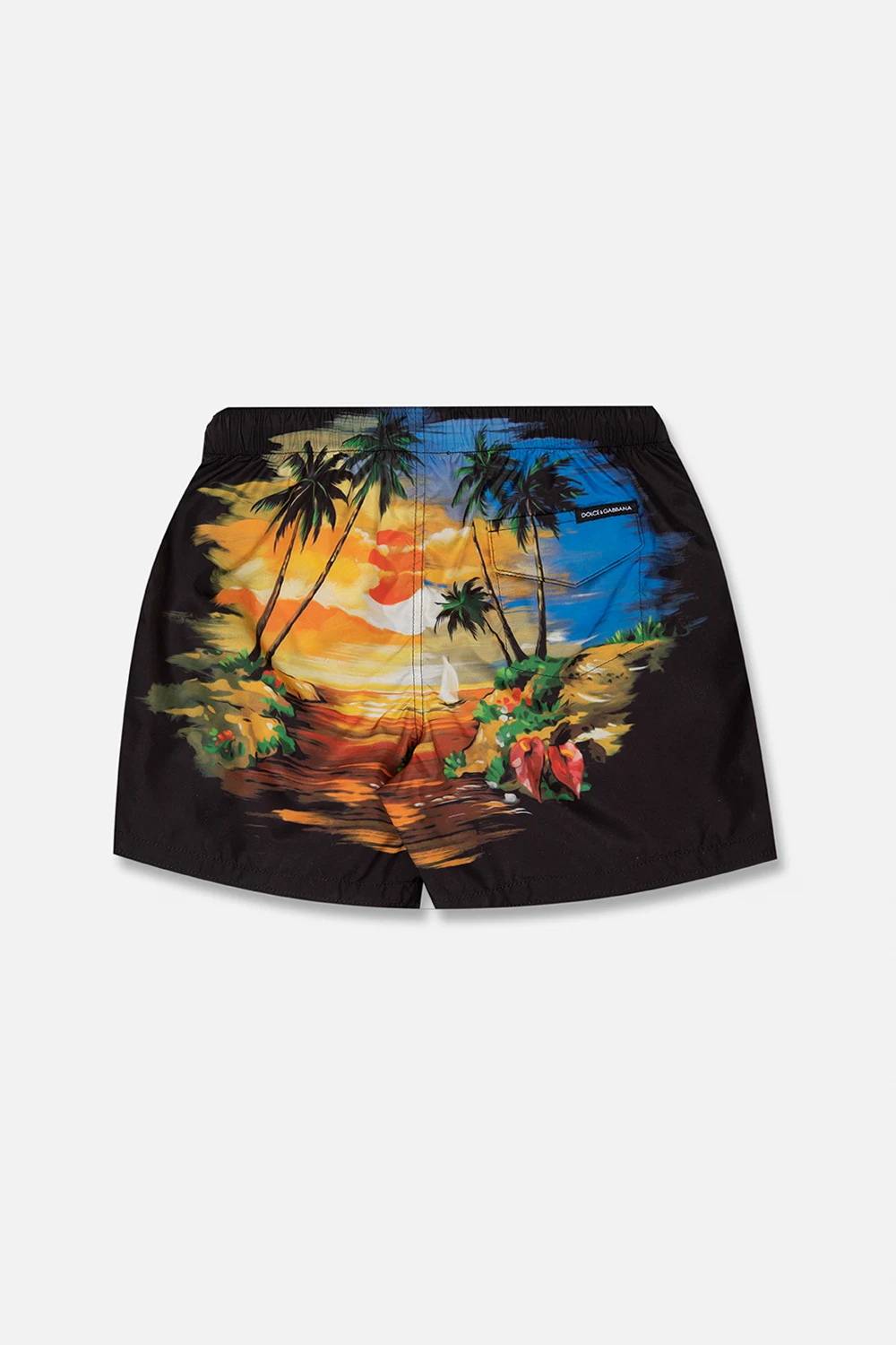 Multicolored swim shorts from Dolce & Gabbana Kids. This pair features an elastic drawstring waistband, multicolored landscape motif and flap pocket at the back.