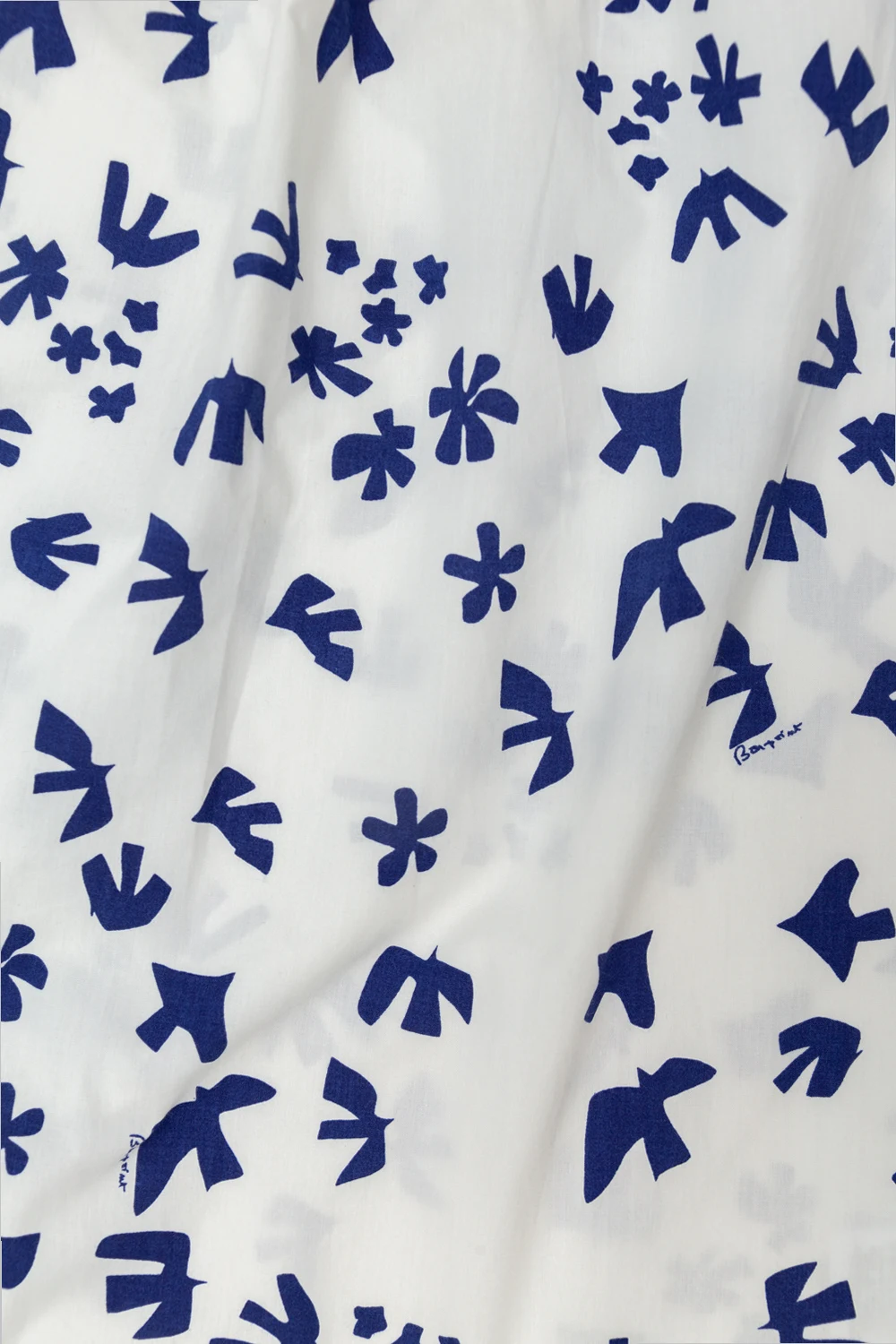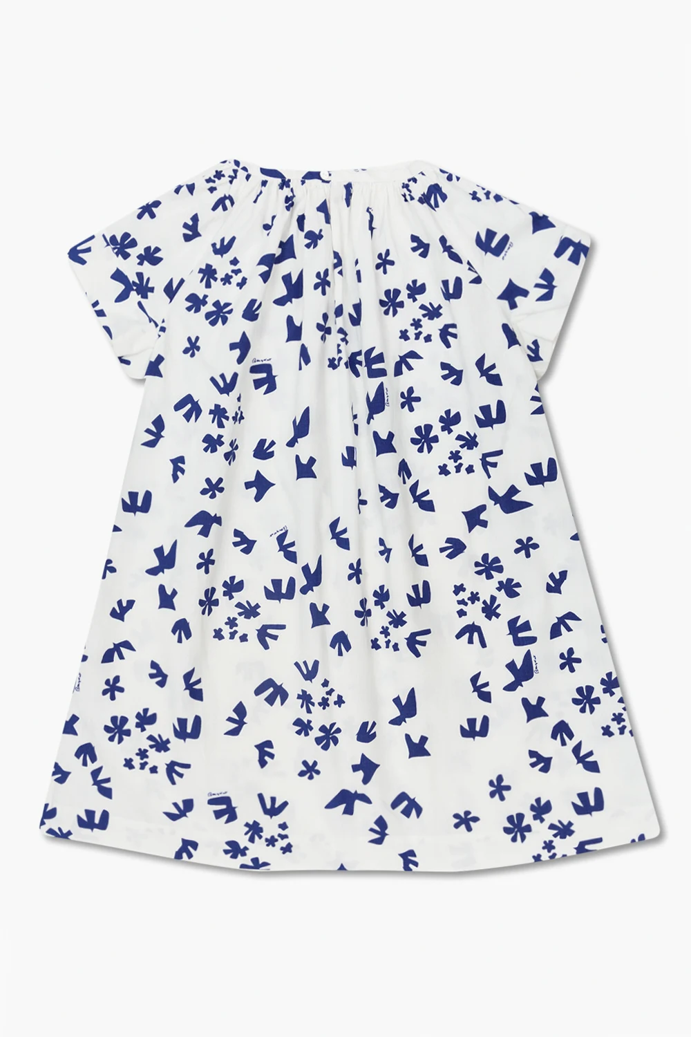 White dress from Bonpoint. Made of cotton, this short sleeve design features button fastenings and a navy print.