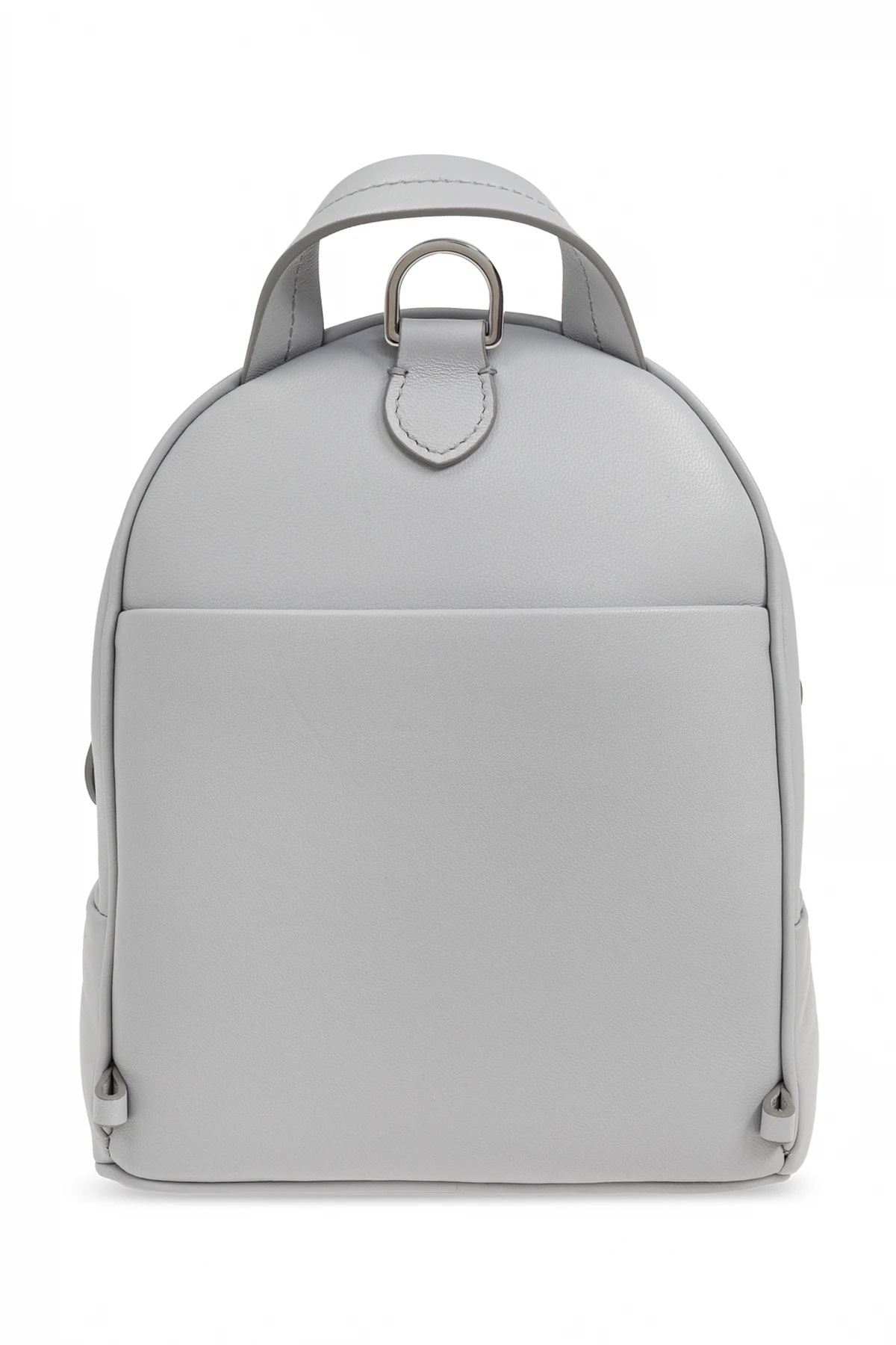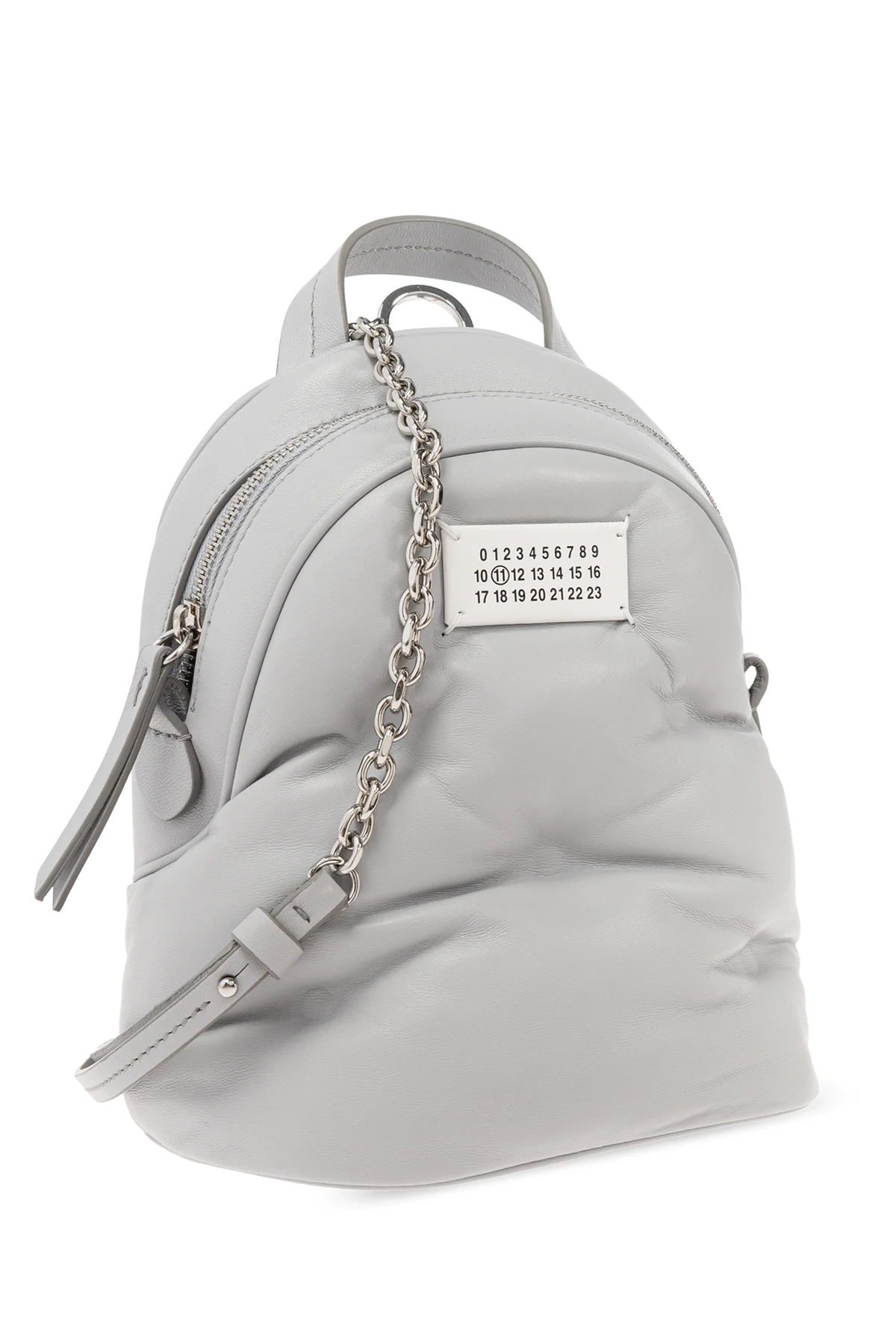 Introducing the Leather Backpack Convertible to Bag from the prestigious Maison Margiela collection. This exquisite piece, adorned in an elegant shade of gray, embodies sophistication and versatility. Crafted from the finest leather, the backpack boasts a rounded silhouette, promising both comfort and a refined aesthetic. The hallmark of Maison Margiela\'s craftsmanship is evident in the distinctive numbered label on the front and the robust metal zipper that secures its contents. A metal chain serves as a stylish shoulder strap, transforming the backpack into a chic bag, ideal for any fashion-forward individual. The interior, marked with \"Maison Margiela Made in Italy,\" features a spacious compartment with a convenient slip pocket. Why Choose This Product? Unisex design suitable for all fashion enthusiasts. High-quality leather ensures durability and elegance. Convertible functionality for versatile styling. Iconic Maison Margiela branding for a touch of luxury.