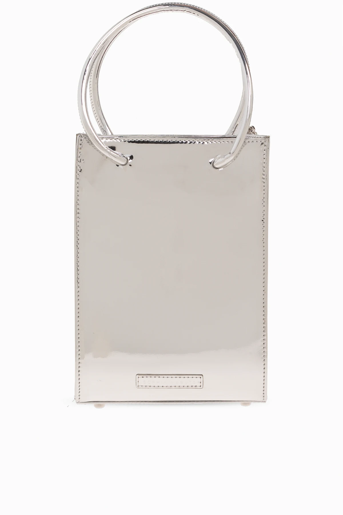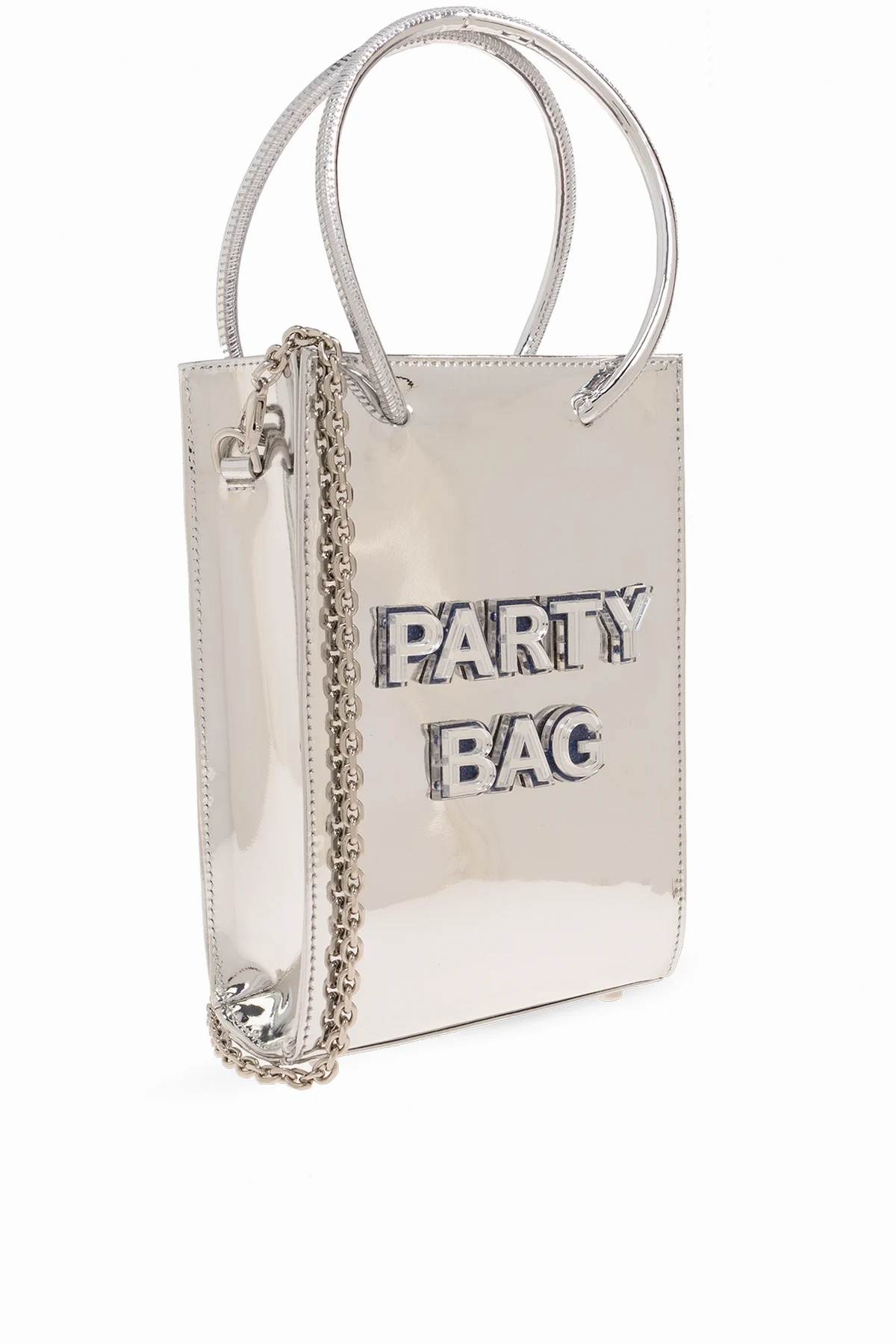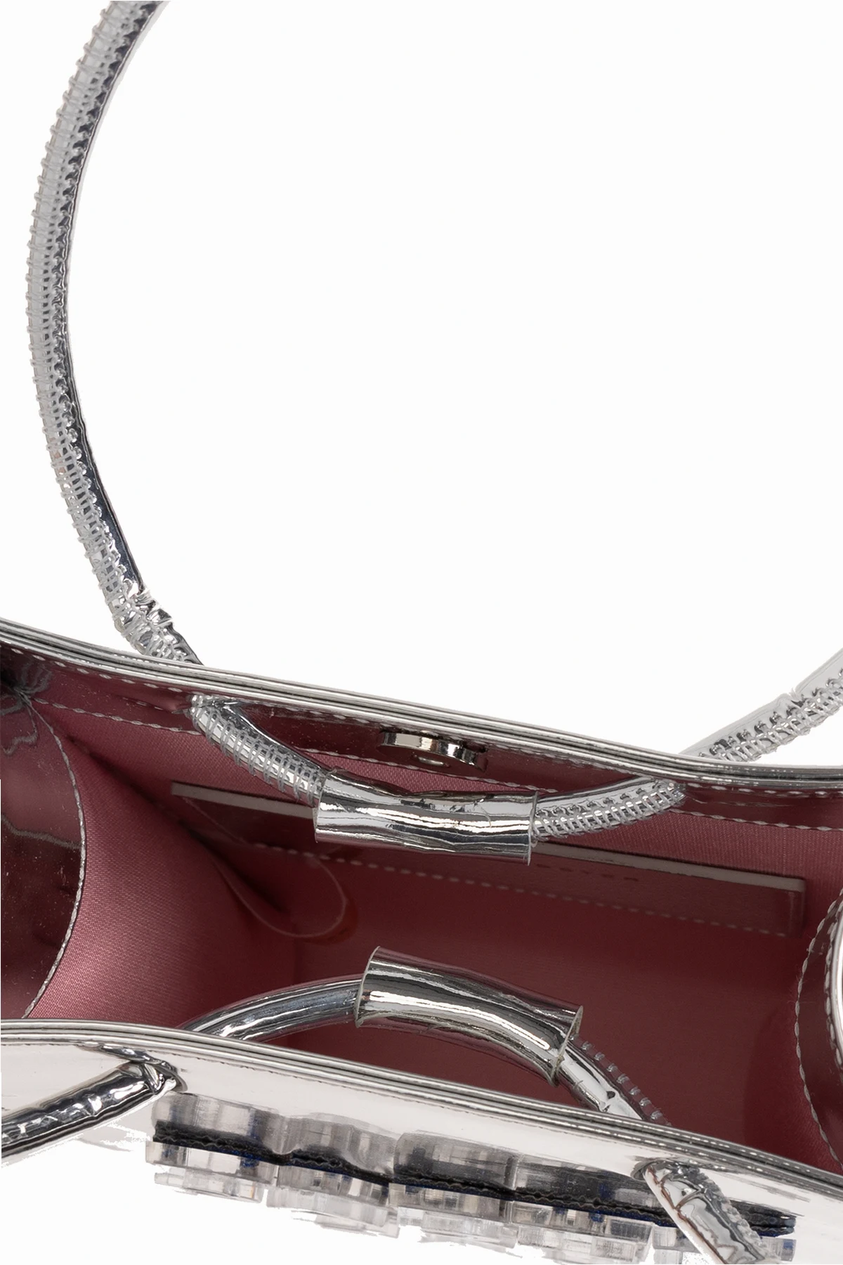 Silver-tone ‘Party Bag Micro’ shoulder bag from Sophia Webster. Made of leather with a metallic finish, this model features a detail, two half-round handles, detachable chain and one internal compartment with one card slot.