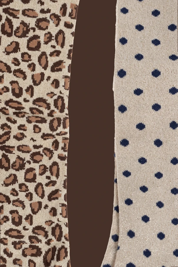 One pair features a timeless animal-inspired motif, with rich brown and black spots scattered organically across a beige background. The second enchants with petite, precisely arranged navy blue dots, creating a classic, playful look. Both pairs boast a classic silhouette that gently conforms to the child’s figure, ensuring sublime comfort throughout the day.