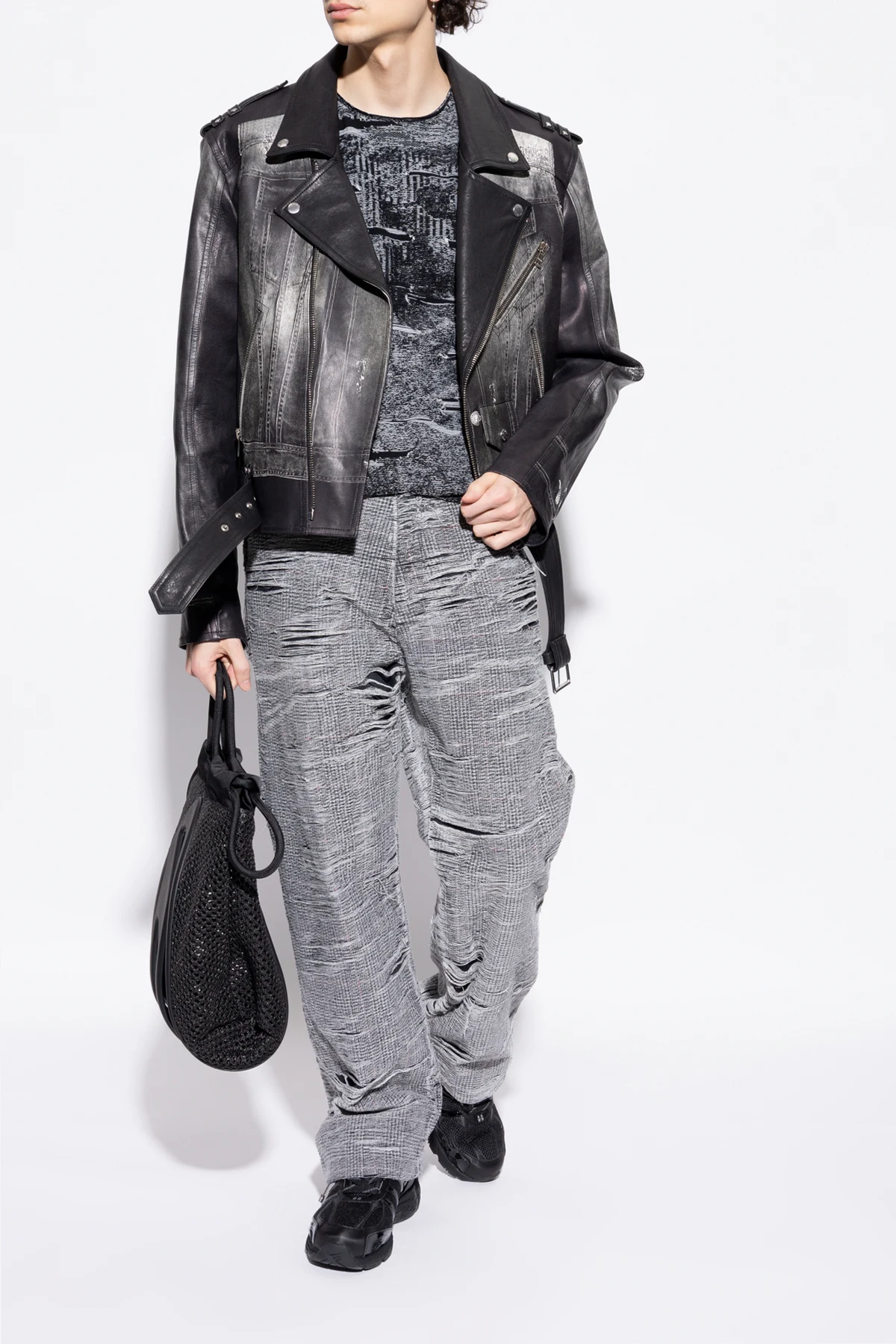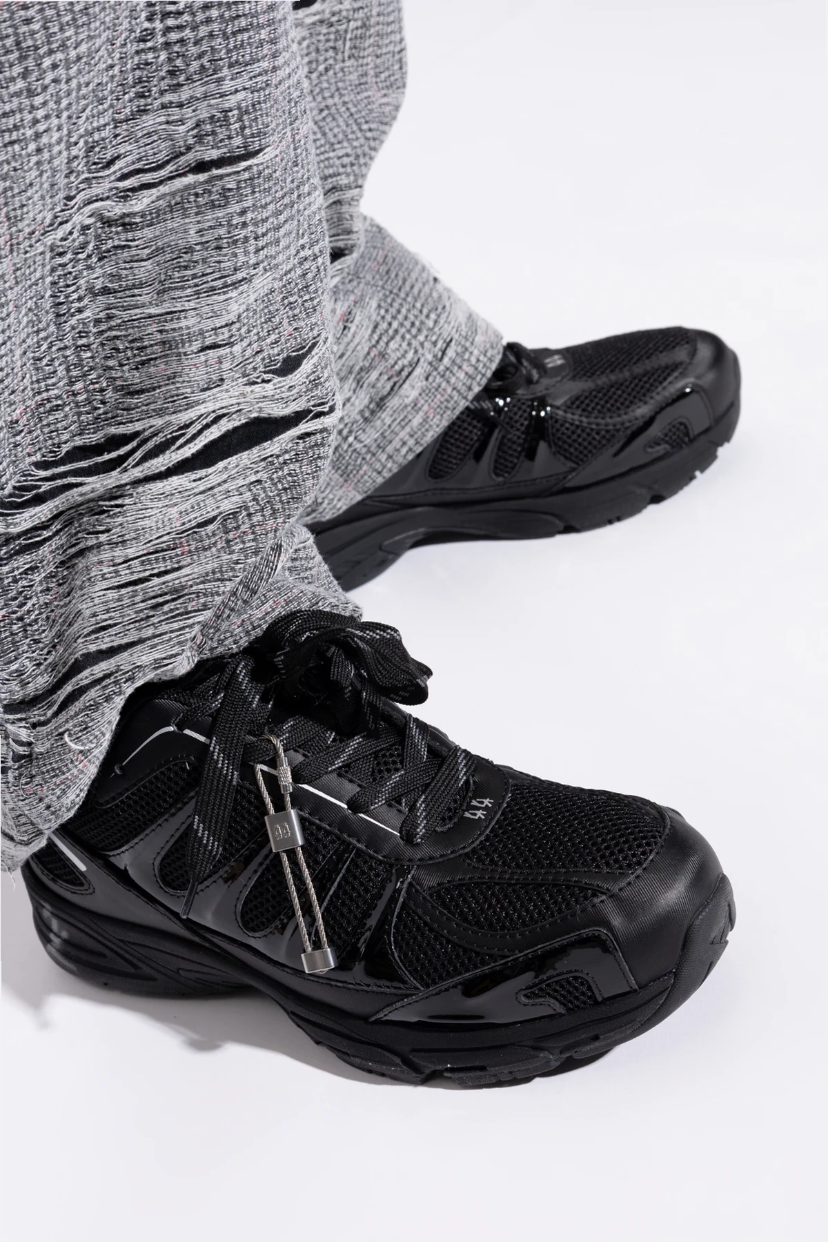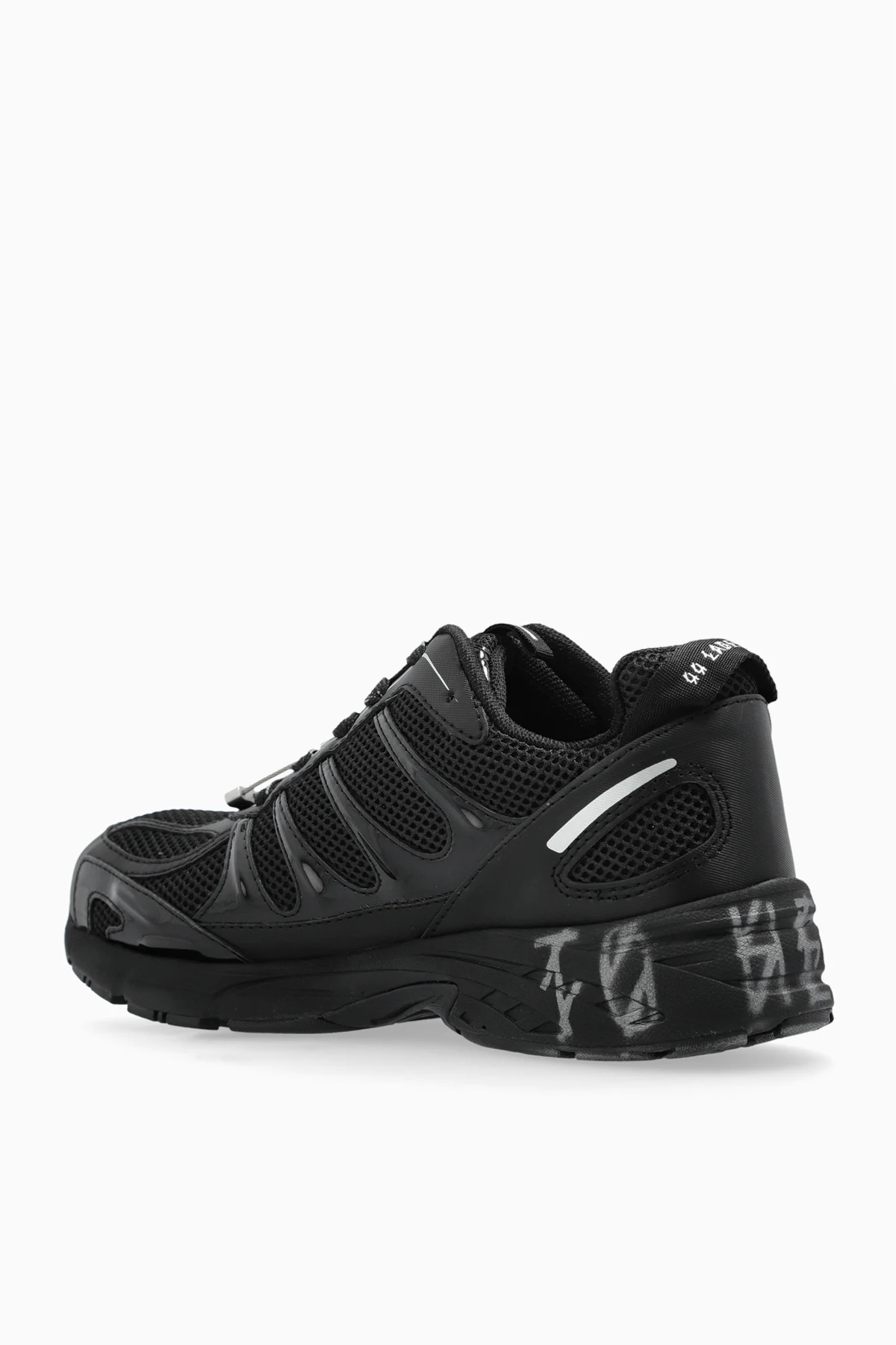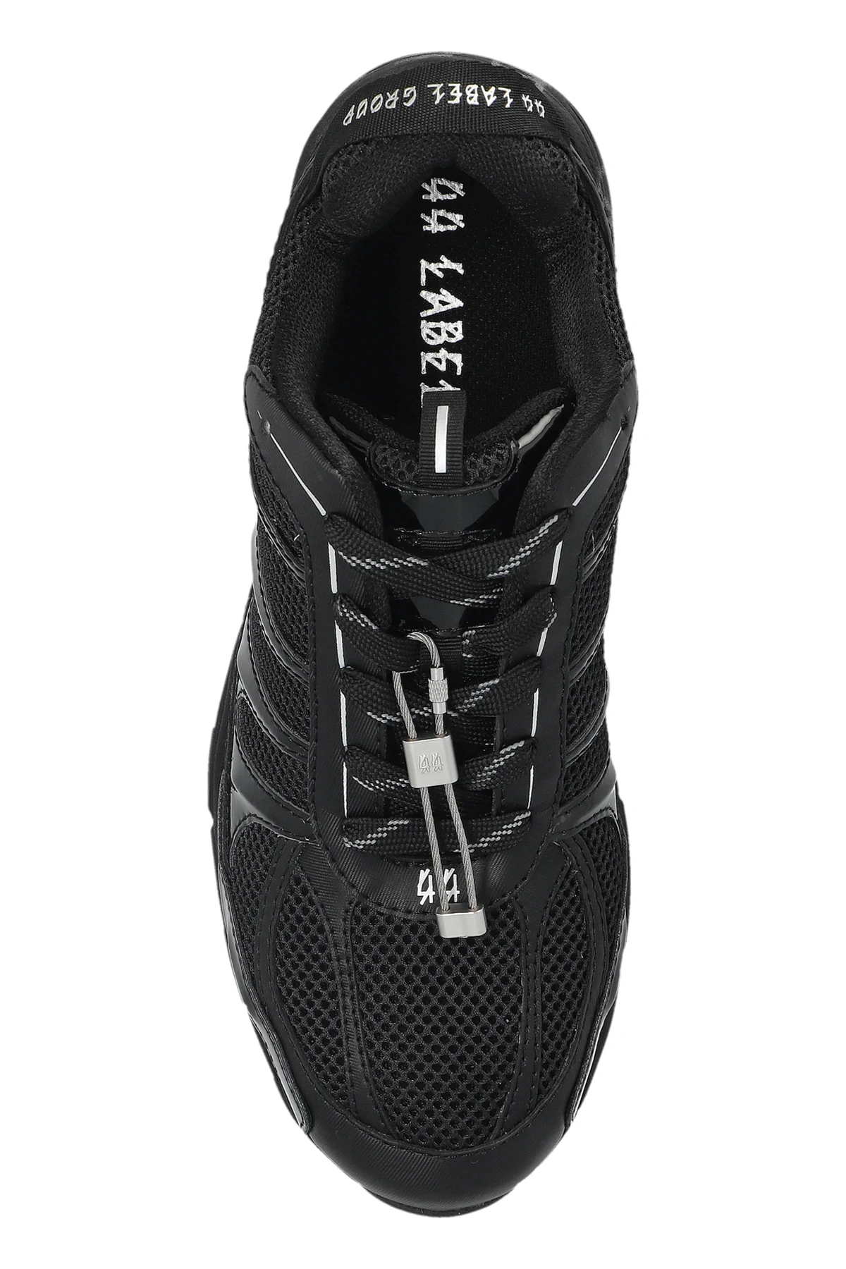 Introducing the \'Dragger\' sneakers from the exclusive collection of 44 Label Group. These black sports shoes epitomize a harmonious blend of contemporary design and unparalleled functionality. The sleek, dynamic silhouette is crafted with breathable mesh, ensuring optimal comfort and ventilation. Synthetic leather accents enhance durability and style. Adorned with distinctive details such as the inscriptions \"44 LABEL GROUP\" and \"TO HELL\" on the rear sole, these sneakers exude a bold statement. The lacing system, complemented by metallic elements, infuses a touch of modernity. The brand\'s logo is subtly positioned on the tongue and insole, maintaining an understated elegance. The rubber sole, featuring an aggressive tread, guarantees excellent grip and stability, making these sneakers perfect for everyday wear with a modern flair. Why Choose These Sneakers? Exclusive design by 44 Label Group, inspired by Berlin\'s techno scene. High-quality materials providing breathability and durability. Innovative details and inscriptions for a unique look. Superior grip with a robust rubber sole.
