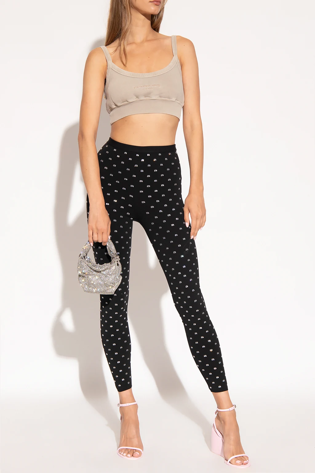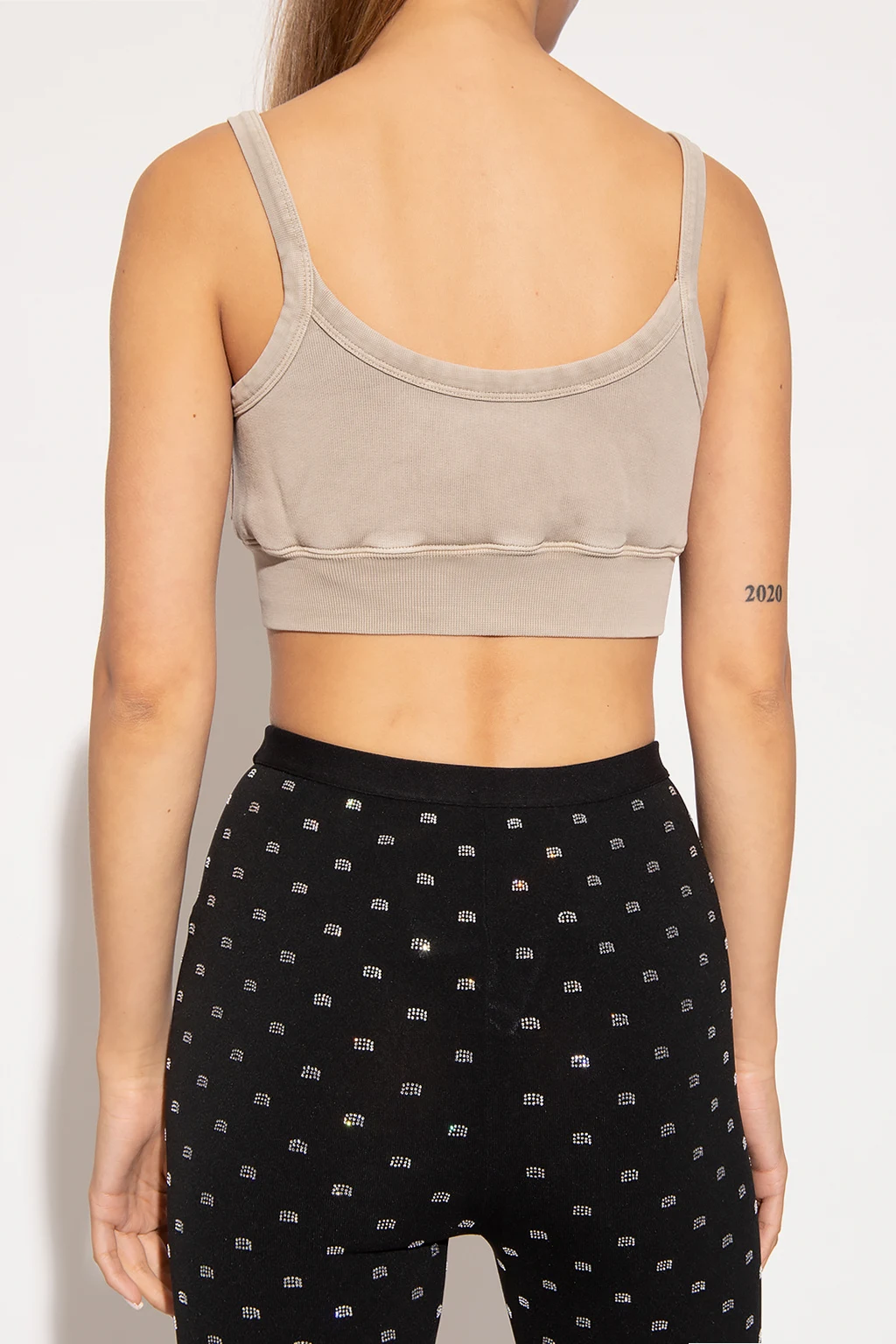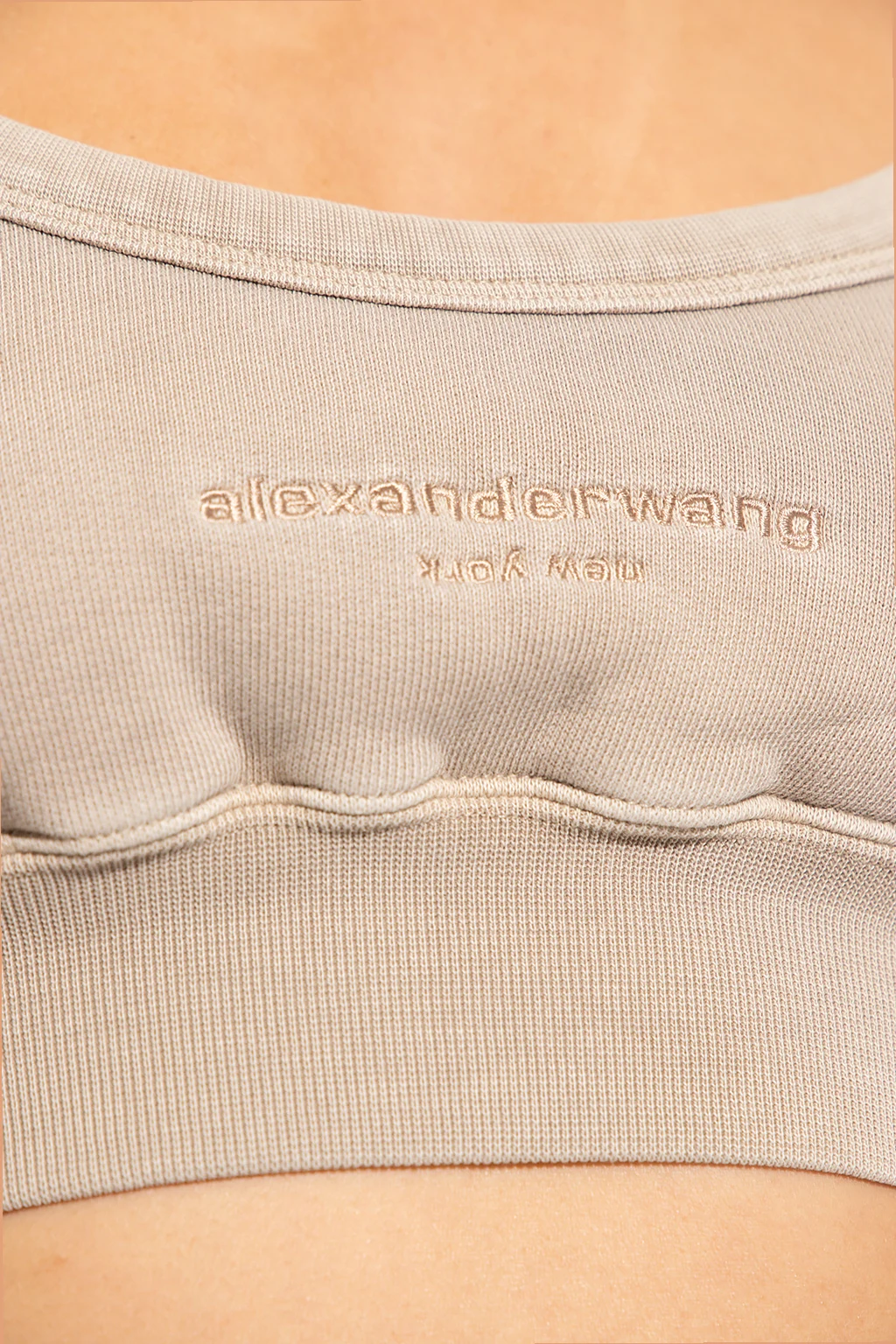 Beige tank top from Alexander Wang. Crafted from cotton with a cropped fit, this style features a vintage effect, an elasticated bottom hem and an embroidered logo on the front.