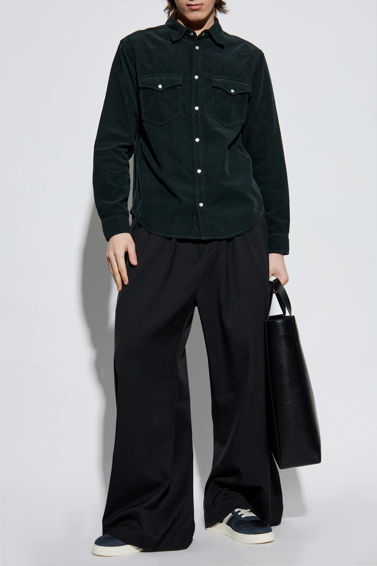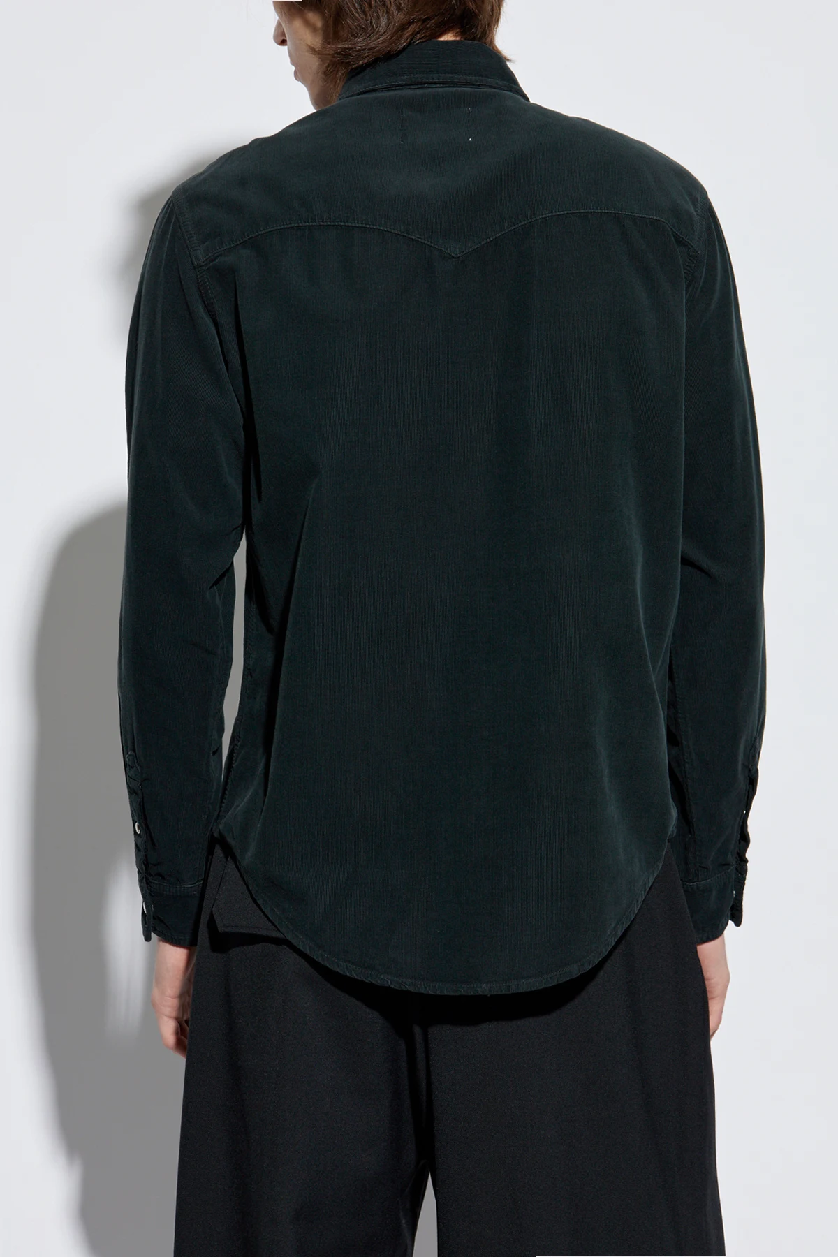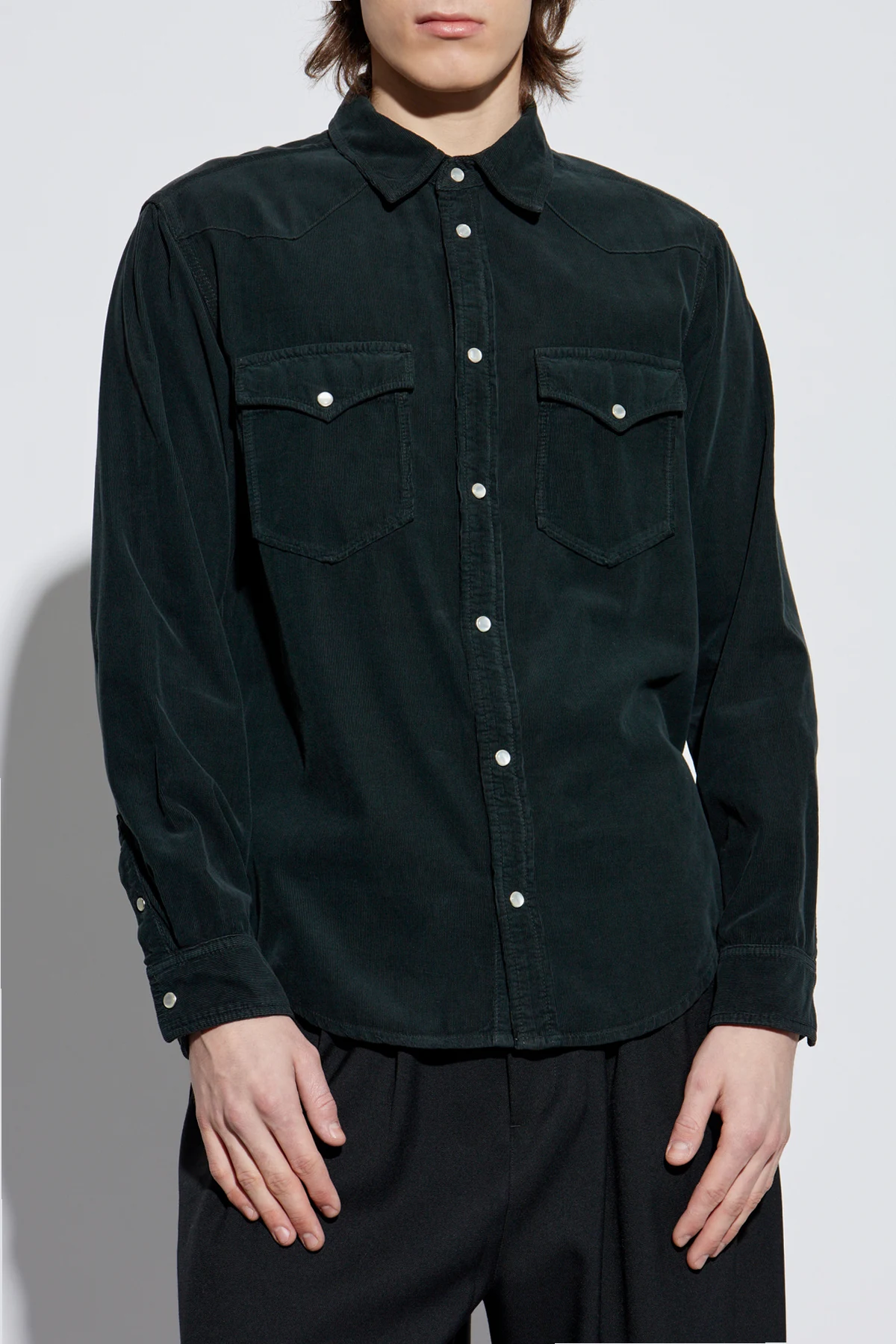 Introducing the ‘Vasco’ Corduroy Shirt, a sartorial masterpiece crafted by the illustrious designer MARANT. This exquisite garment, rendered in a sumptuous dark green hue, exudes an air of timeless elegance and sophistication. The shirt is meticulously tailored from luxurious corduroy, providing a tactile experience that is both rich and refined. It features a classic collar and long sleeves, with buttons in a contrasting light shade adorning the front, adding a touch of understated elegance. Functionality meets style with two chest pockets, each adorned with a flap and secured with a button. The back is designed with subtle stitching to accentuate the silhouette, offering a harmonious blend of classic and contemporary aesthetics. For added versatility, the cuffs are equipped with adjustable buttons, allowing for a personalized fit, making this shirt ideal for both casual and formal occasions. Why Choose This Product? Crafted from premium 100% cotton corduroy for superior comfort and durability. Elegant dark green color that enhances any wardrobe. Functional design with dual chest pockets for added utility. Adjustable cuffs for a bespoke fit. Designed by MARANT, known for blending Parisian nonchalance with sporty forms.