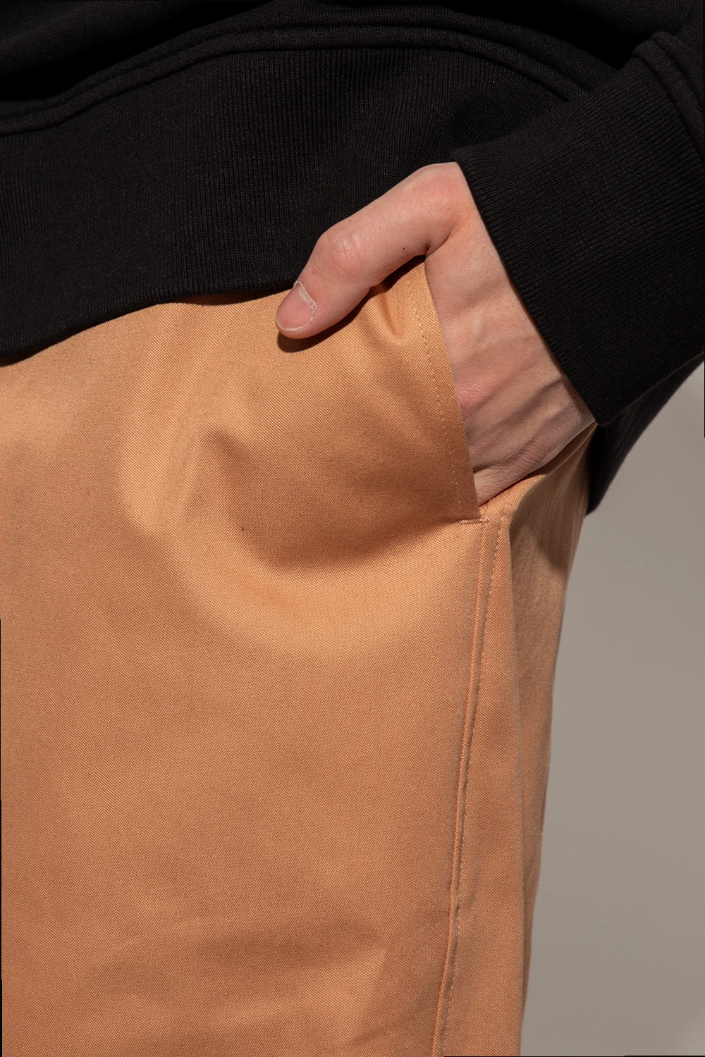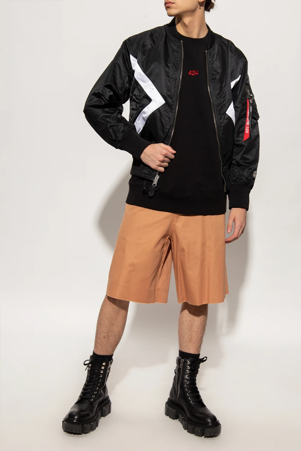 Light brown oversize shorts from 424. Made of cotton, this low-crotch design is complete with a hook and zip closure with a concealed placket, two front pockets and two back pockets.