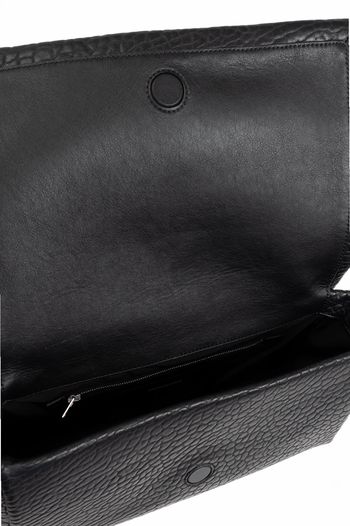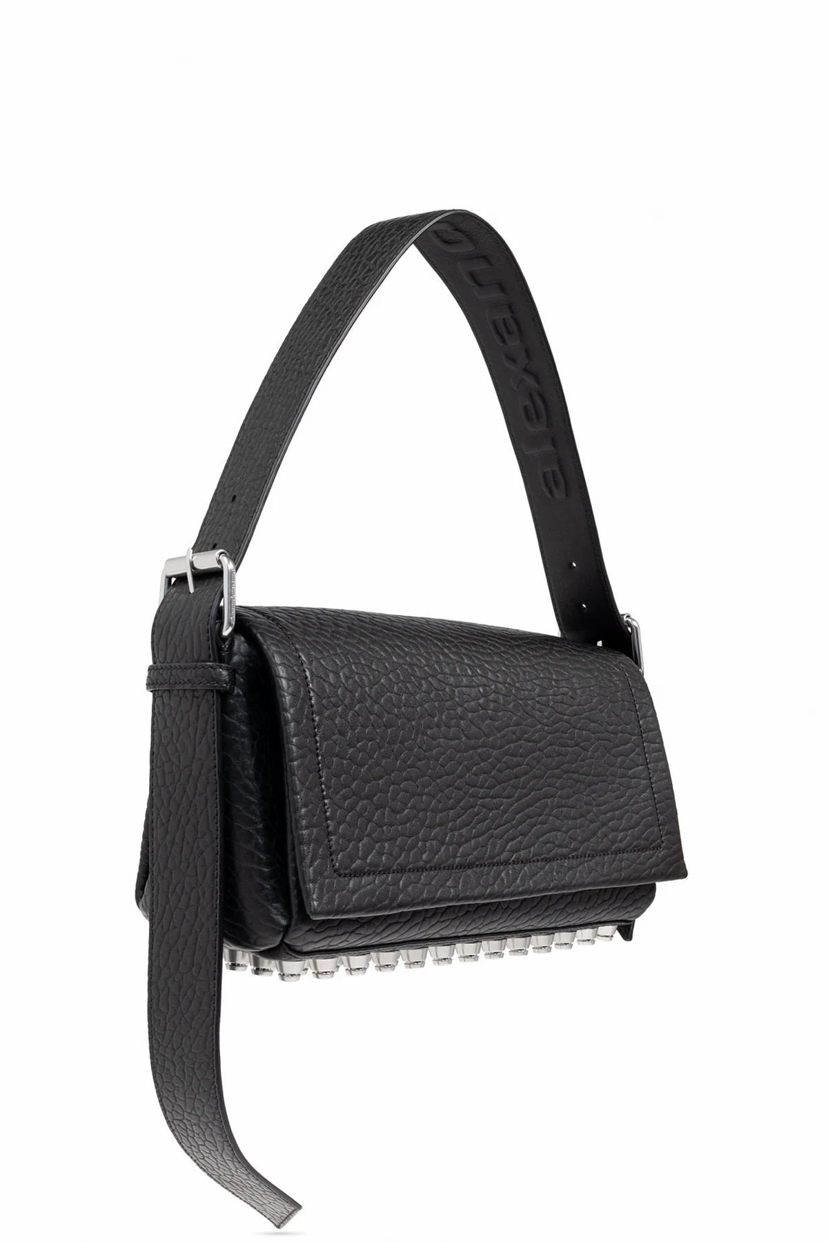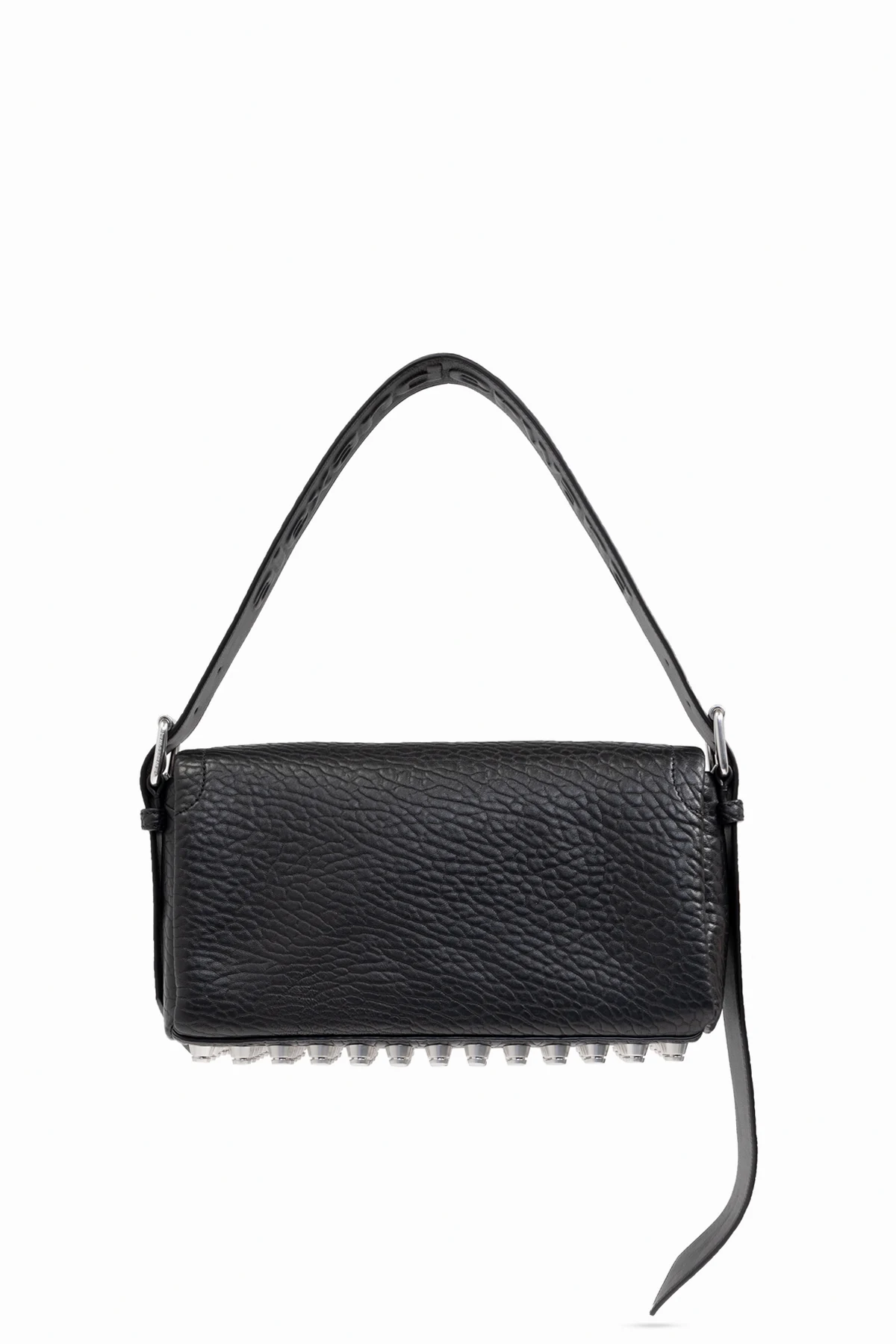 Introducing the Ricco Medium Shoulder Bag by the illustrious Alexander Wang. This exquisite accessory is crafted from the finest black lambskin, exuding sophistication with its distinct, grainy texture. The bag\'s rectangular silhouette is both modern and timeless, making it a quintessential addition to any wardrobe. The Ricco Medium features a sturdy, adjustable shoulder strap, ensuring both comfort and versatility. Its front flap is elegantly secured with a magnetic clasp, opening to reveal a spacious interior. The bag boasts an additional zippered pocket inside, offering seamless organization for your essentials. Silver-toned metal accents adorn the strap fastenings, imparting a contemporary allure to this classic piece. The Ricco Medium is a sublime fusion of elegance and functionality, embodying the essence of Alexander Wang\'s iconic design ethos. Why Choose This Product? Exquisite black lambskin with a unique grainy texture Adjustable shoulder strap for personalized comfort Spacious interior with an additional zippered pocket Magnetic flap closure for secure and effortless access Silver-toned hardware for a modern touch