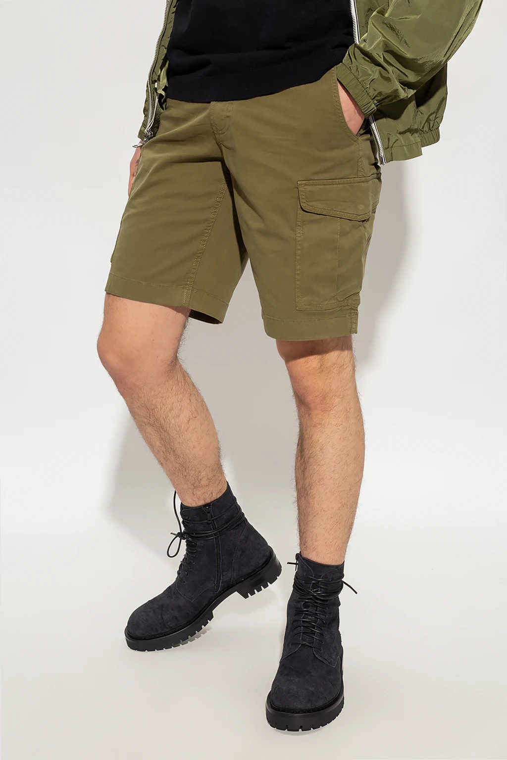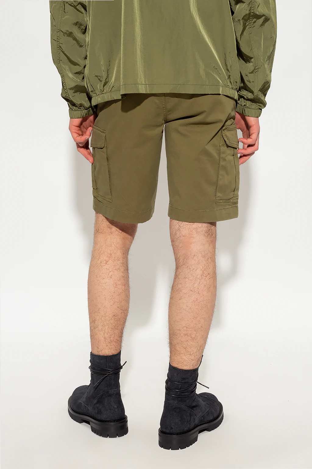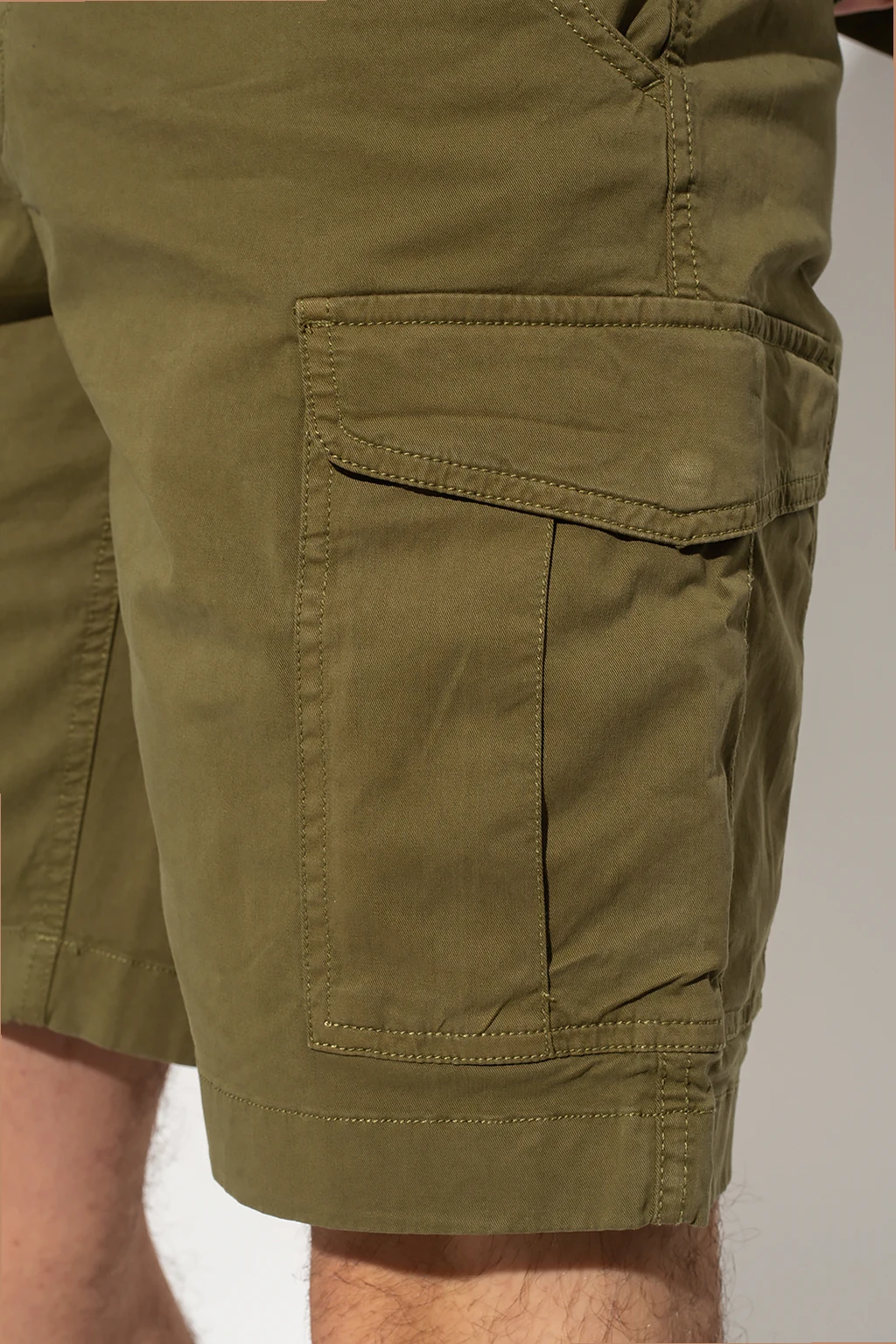 Green cargo shorts from Woolrich. Made of cotton, this pair features a zip and button closure, multiple pockets and logo patch at the back.