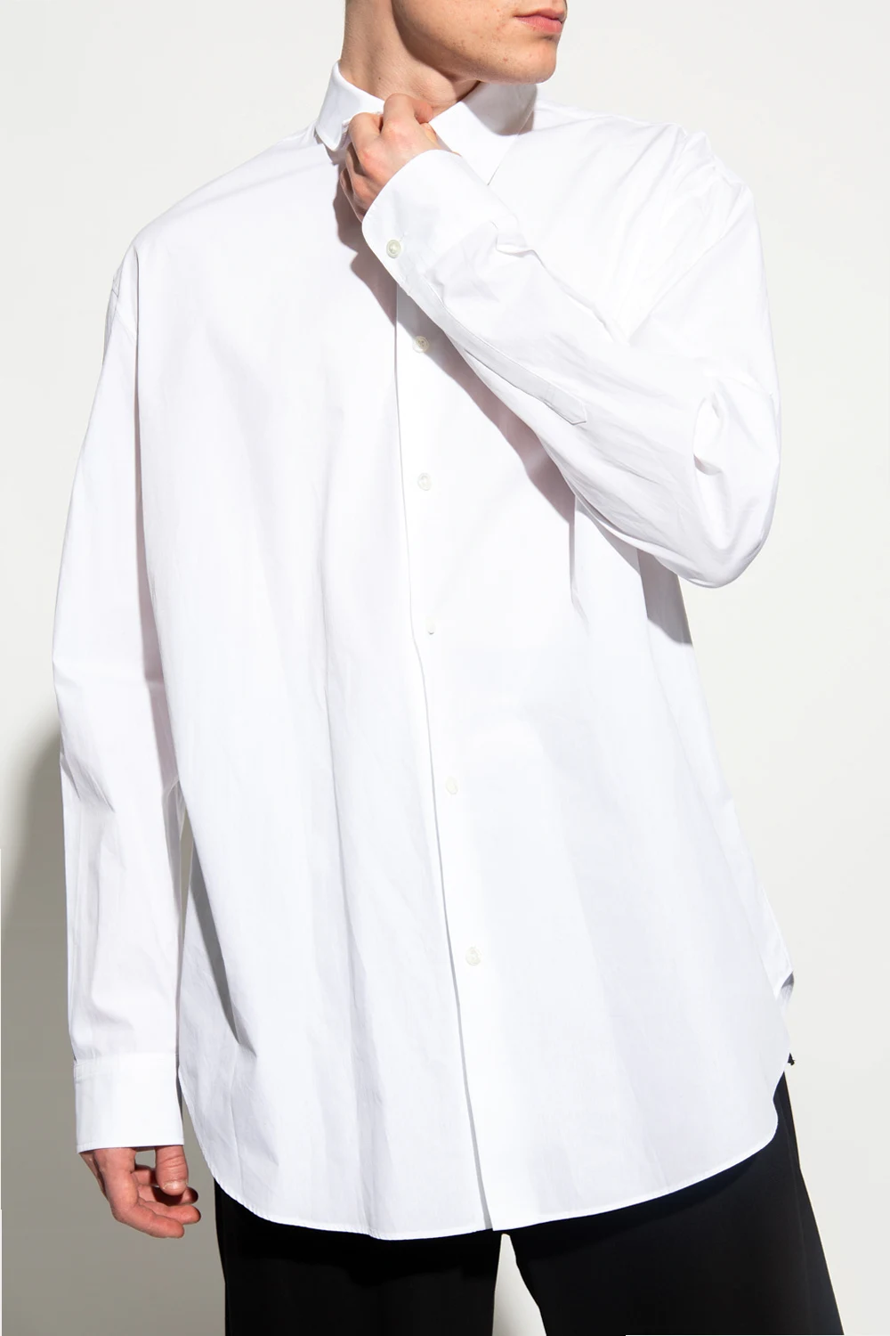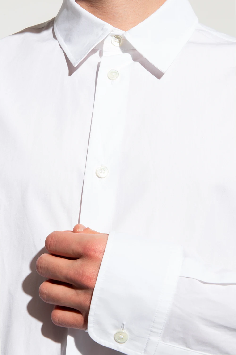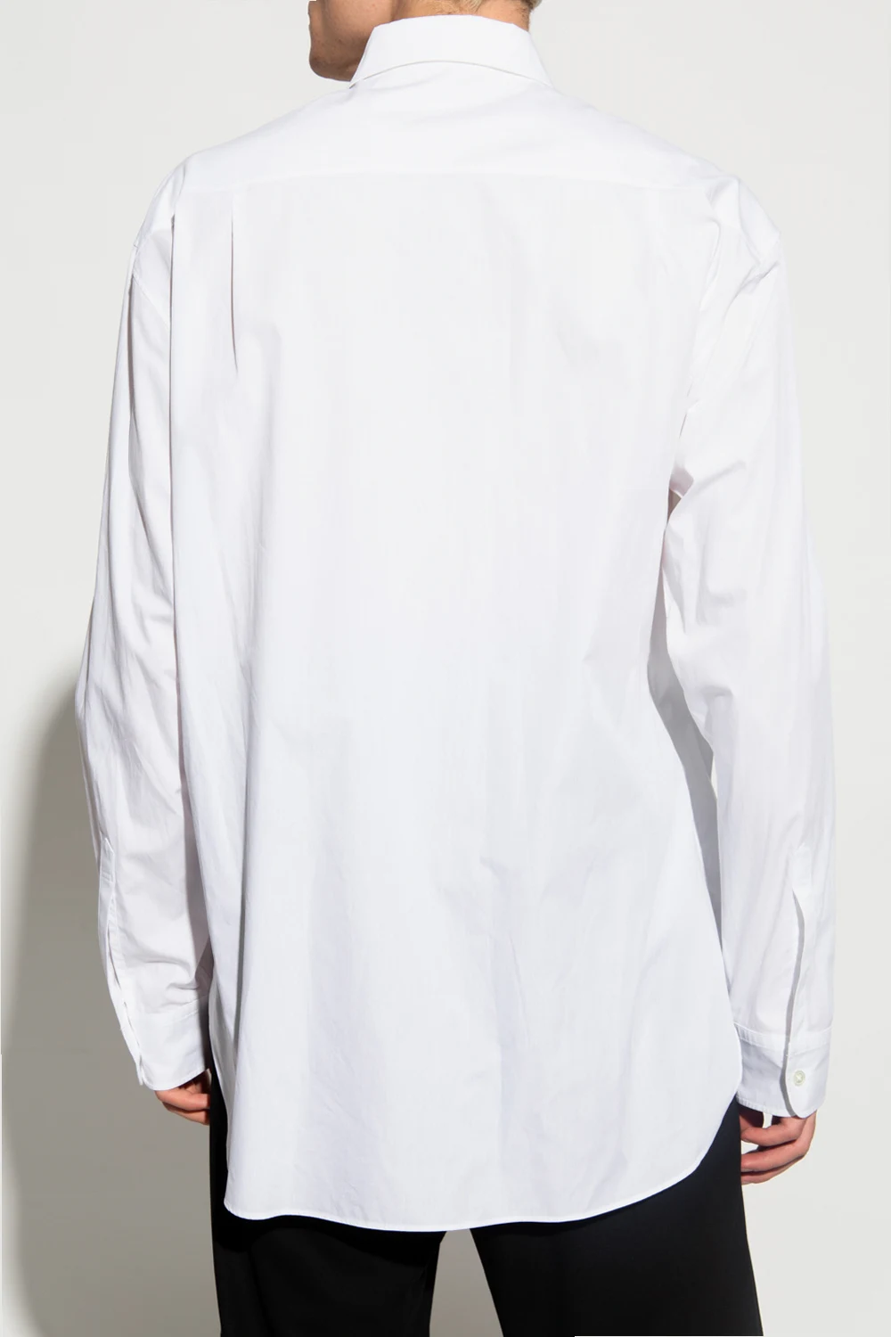 White ‘Klaas’ shirt from Ann Demeulemeester. Crafted from cotton, this style features button fastenings and long, rolled-up sleeves with button cuffs.