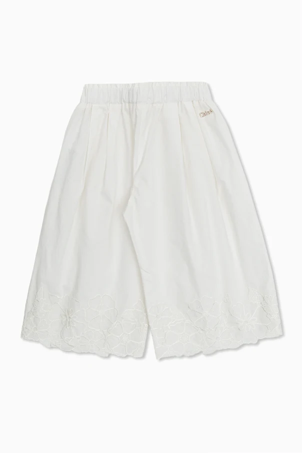 Discover refined charm with these Floral-Embroidered Shorts from Chloé Kids , thoughtfully tailored for girls who appreciate both style and comfort. In a pristine white hue, these shorts feature a relaxed silhouette with wide legs and a gently gathered elastic waistband, ensuring unrestricted ease throughout the day.