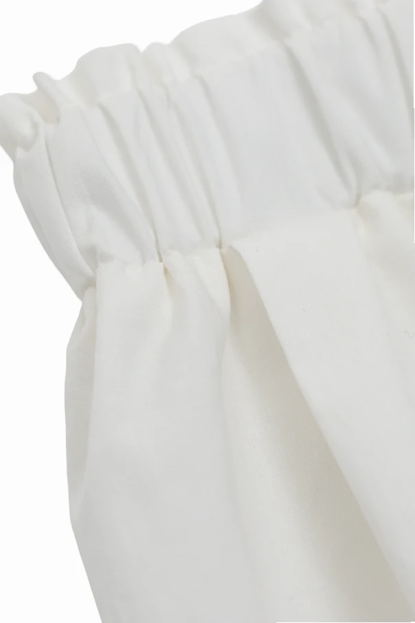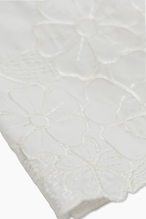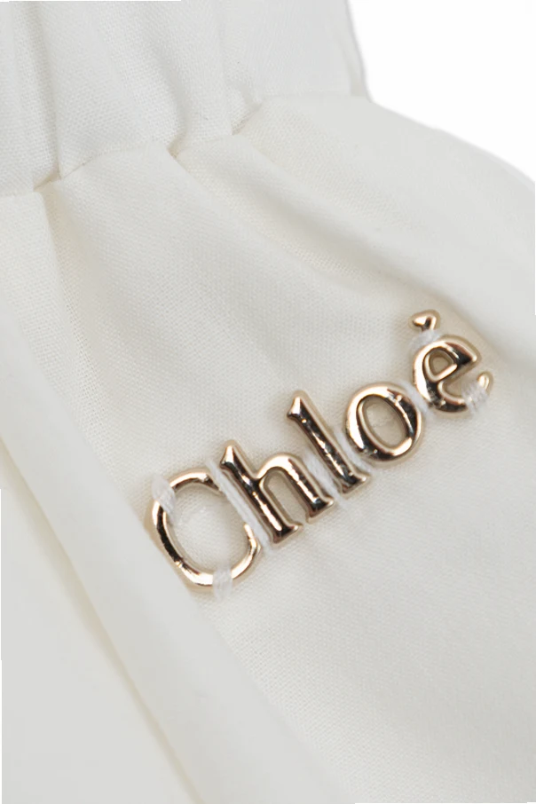 Crafted from a lightweight, airy cotton fabric with a subtle sheen, their exceptional quality is evident to the touch. The hems are gracefully adorned with exquisite, tone-on-tone floral embroidery, elevating the piece with artistic sophistication while maintaining understated elegance. A discreet, metallic "Chloé" logo at the waistband gives a signature touch of luxury to this exclusive garment.