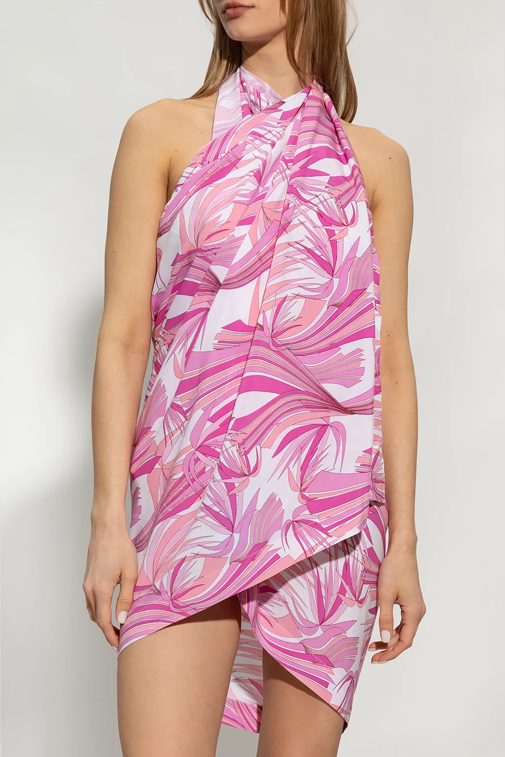 White and pink self-tie pareo with a decorative pattern from Melissa Odabash.