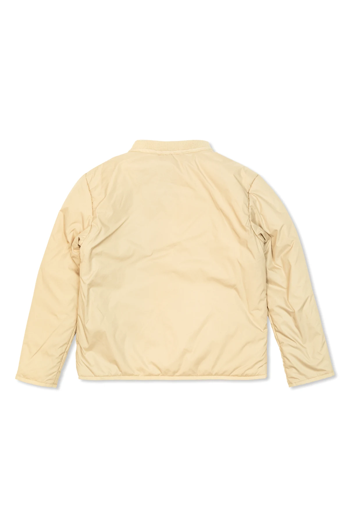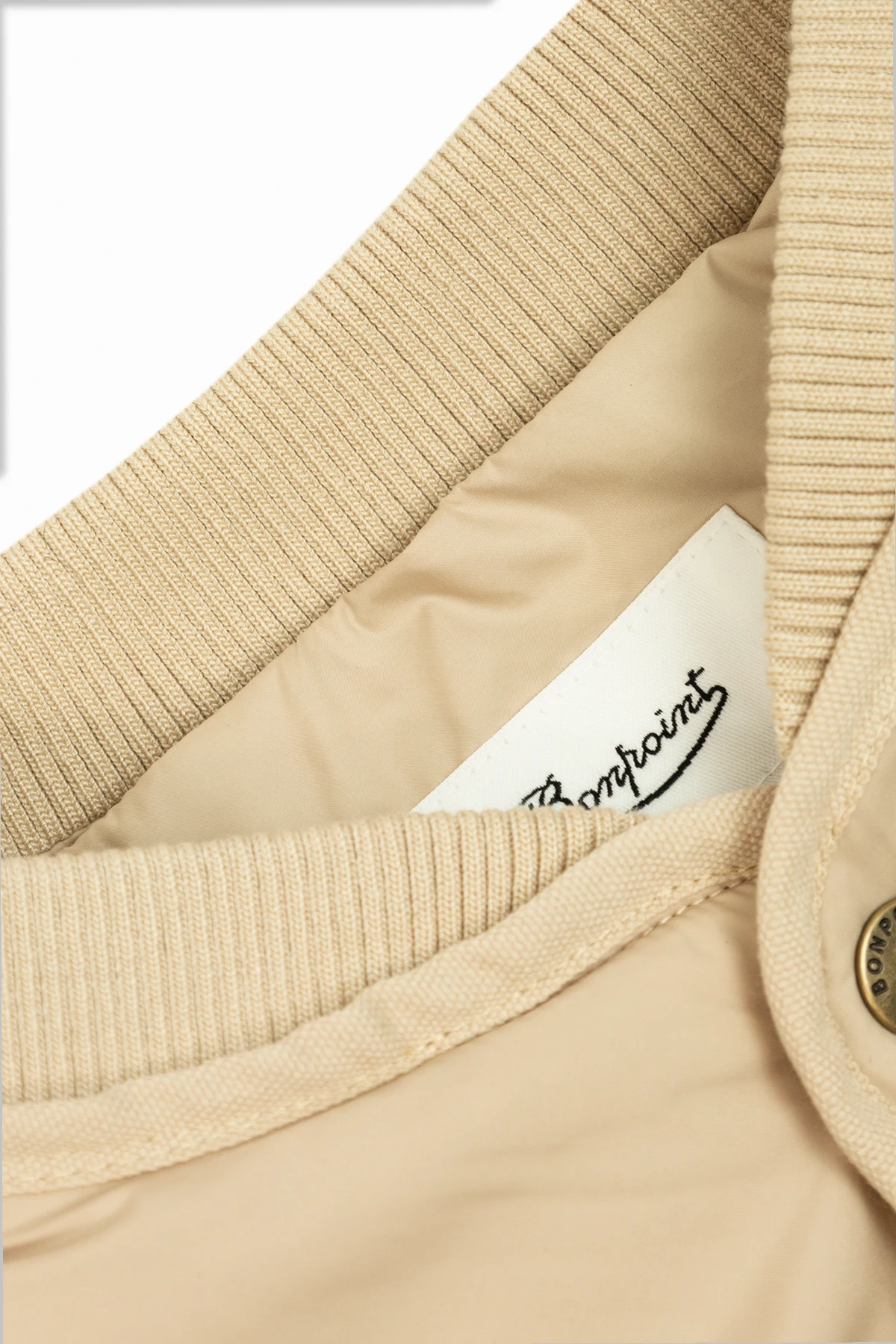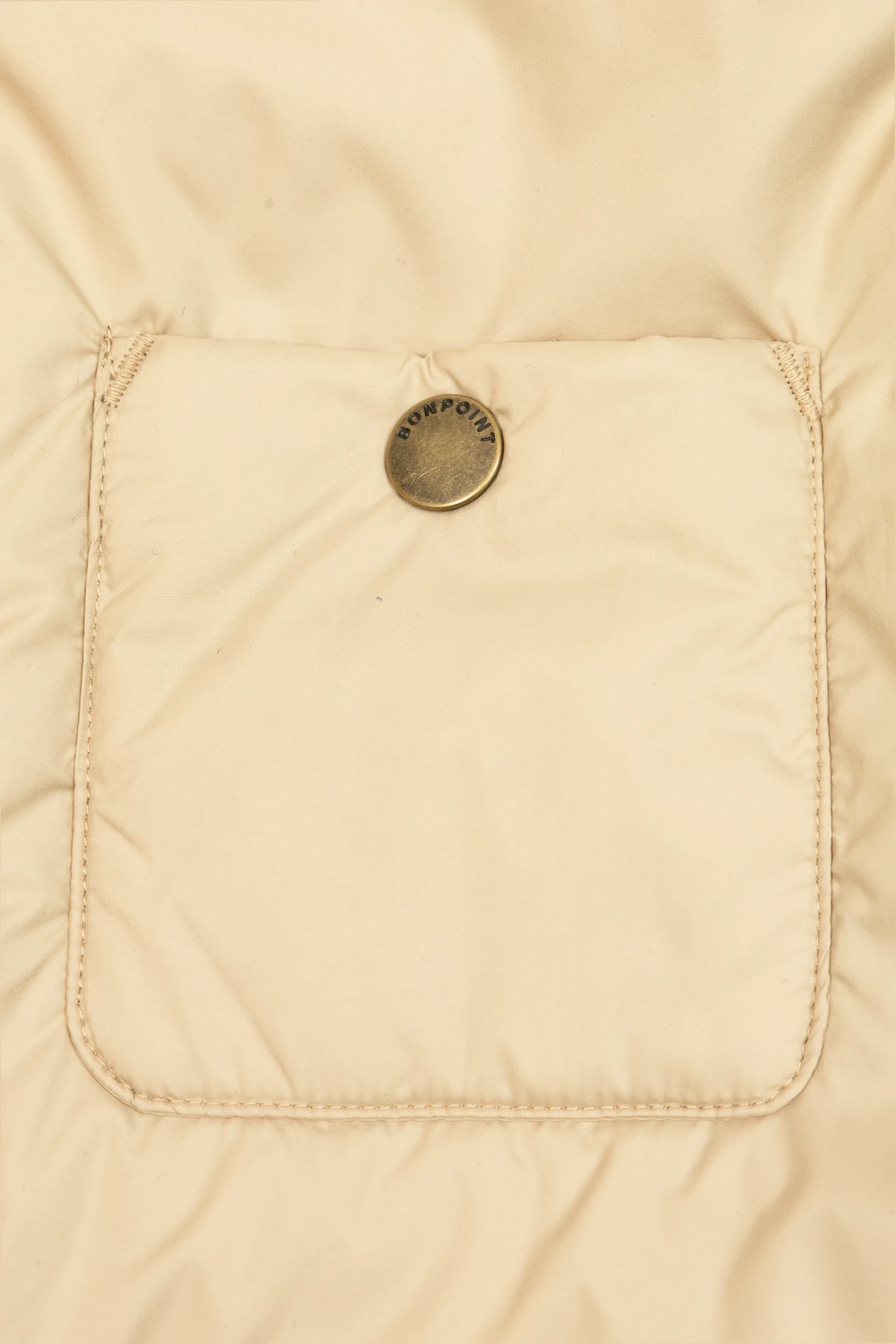 Introducing the Beige Insulated Jacket by the illustrious French designer Bonpoint. This elegant garment is meticulously crafted for boys aged 4 to 14 years, embodying a perfect blend of timeless elegance and modern flair. The jacket\'s simple silhouette features long sleeves and a subtly refined collar. Adorned with large front pockets and a chic chest pocket secured with a metal button, engraved with the prestigious Bonpoint name, this jacket exudes sophistication. The interior of the collar is lined with a ribbed fabric, enhancing both comfort and elegance. The smooth polyester material assures superior quality and remarkable durability, ideal for enduring chilly days. Why consider purchasing this product? Designed by the renowned Bonpoint, symbolizing French elegance. Features a practical and stylish design with three pockets. Constructed from high-quality materials for durability. Perfect for boys aged 4-14, offering both warmth and style. Engraved metal buttons add a touch of luxury.