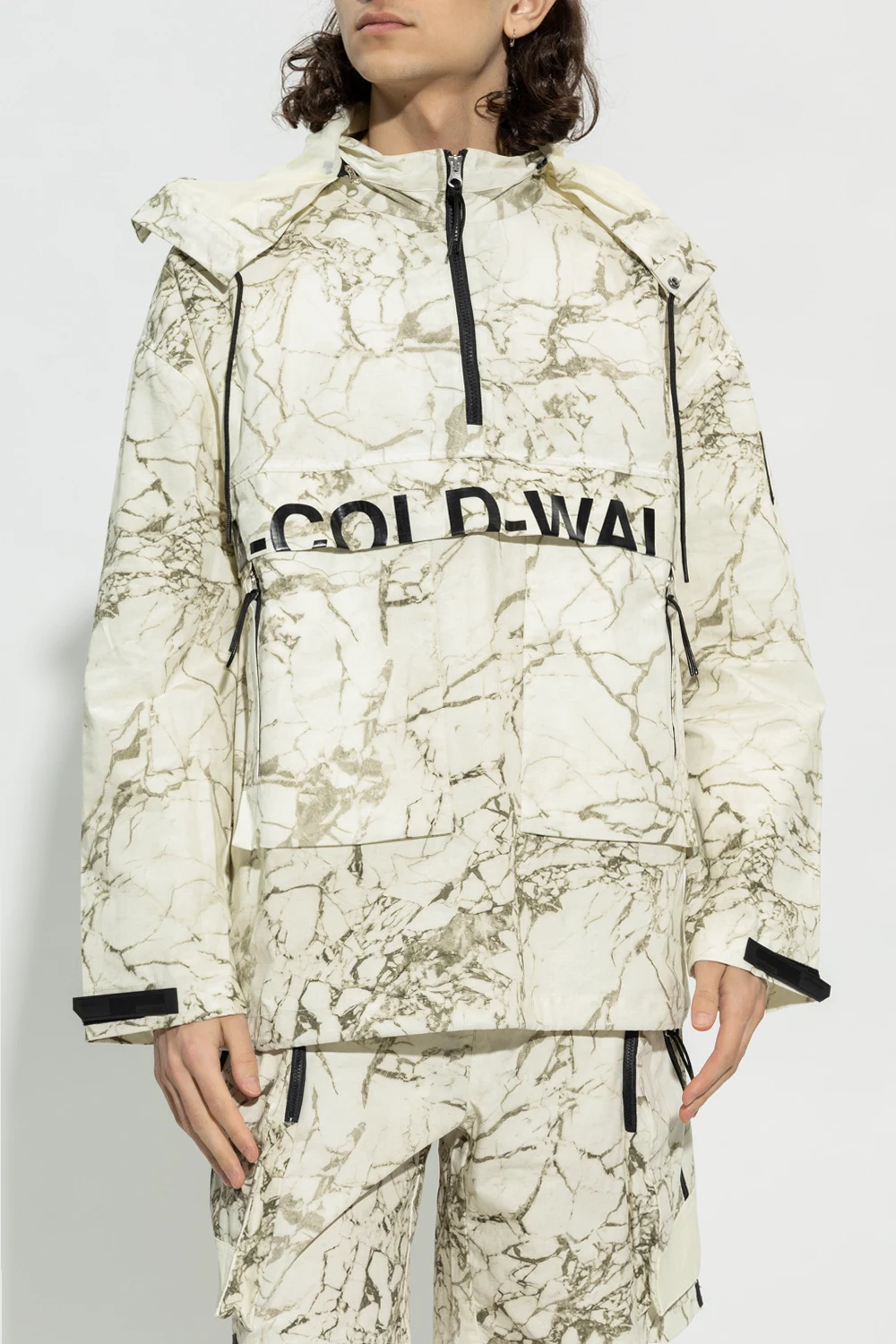 Cream, grey and green jacket from A-COLD-WALL*. Made of ripstop cotton, this design features a zip fastening, marble pattern, black logo print, detachable drawstring hood with snap fastenings, four pocket, drawstring hem and long sleeves with branded rubber tabs with velcro fastening.