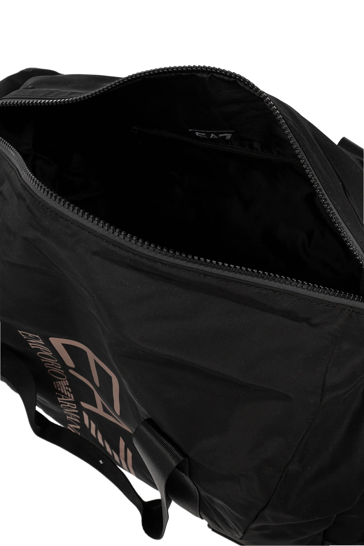 Introducing the epitome of refined travel accessories: the EA7 Emporio Armani Handheld Bag. Crafted from premium materials in a sleek, black hue, this rectangular bag with rounded corners exudes sophistication. Its design is accentuated with distinctive inscriptions and the logo in a contrasting shade reminiscent of precious metals, highlighting its elegance and brand prestige. Functionality meets luxury with its long, black handles and an adjustable, detachable shoulder strap, offering versatile carrying options. The bag’s exterior is thoughtfully equipped with additional zippered pockets on the sides for securing small items. The main compartment also boasts a zip closure, ensuring the safety of your belongings. This exquisite piece is not just an accessory; it is a statement of luxury and practicality for daily use or travel. Why Choose This Product? Exclusive design from the renowned EA7 Emporio Armani collection, signifying luxury and high fashion. Constructed with top-quality materials for durability and a sophisticated appearance. Features an elegant color scheme with the logo and inscriptions in a metallic tone, enhancing its luxurious appeal. Includes practical details like zippered side pockets and a secure main compartment for organized and safe storage.