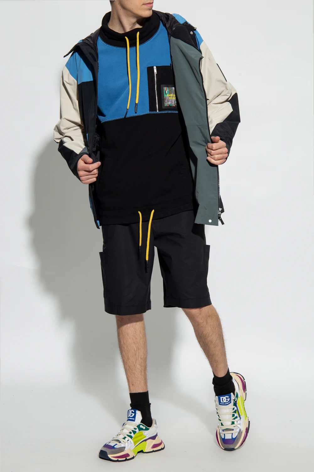 Black shorts from Ambush. Made of cotton, this pair features a drawstring waist, an embroidered logo and multiple pockets.