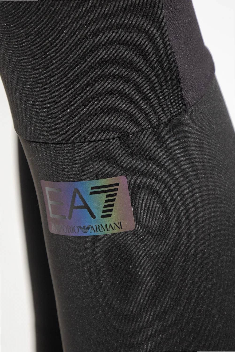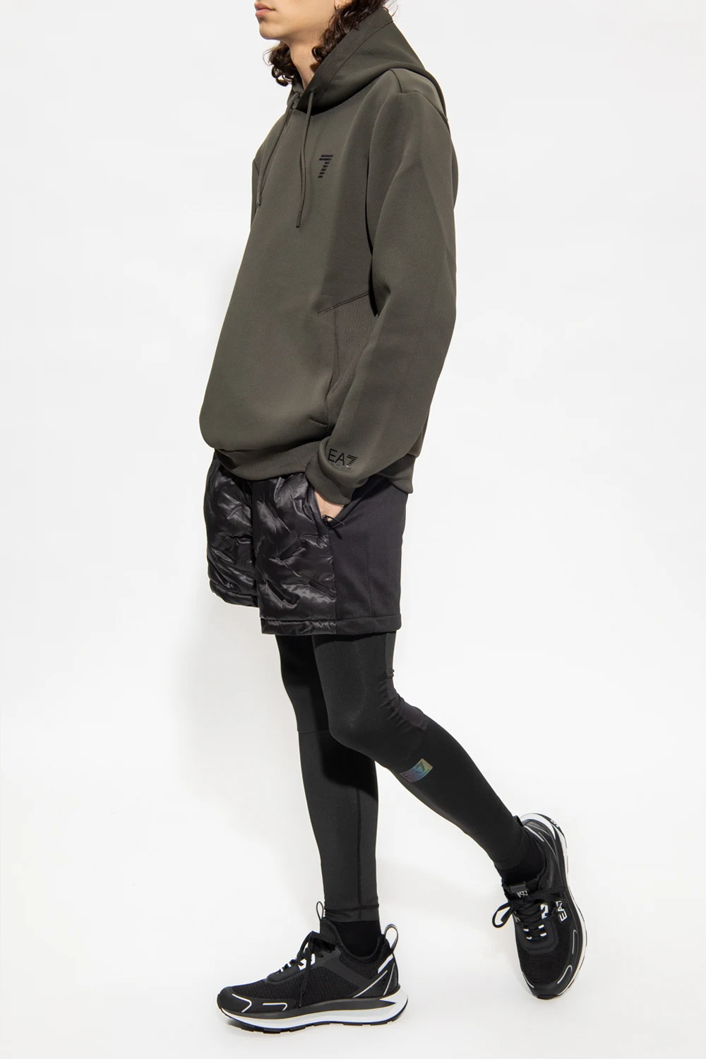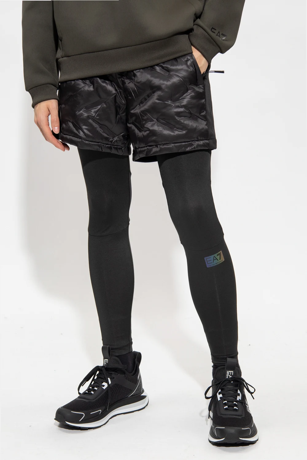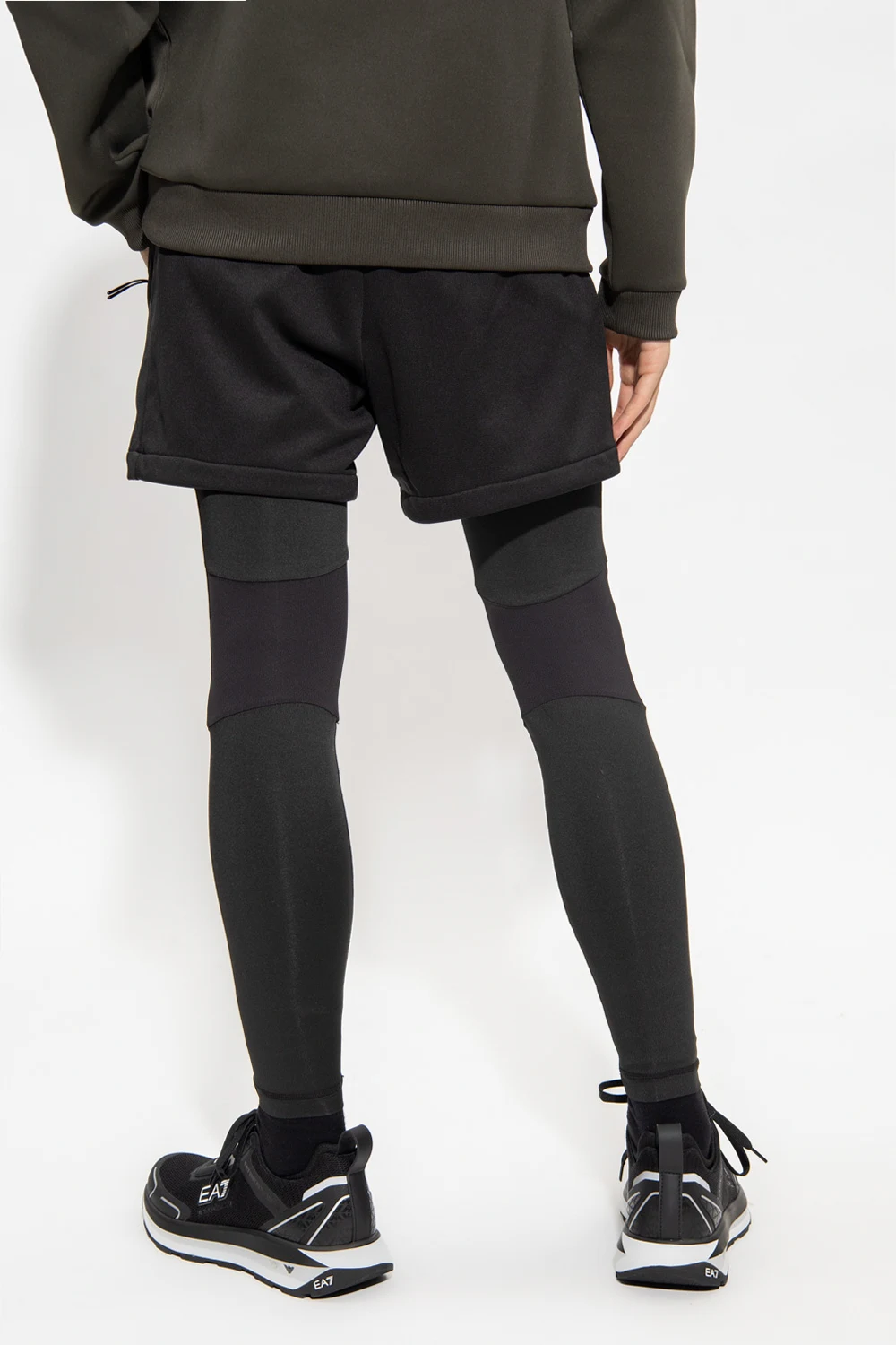 Black training leggings with shorts from EA7 Emporio Armani. Crafted in contrasting fabric panels, this style features a drawstring waist, a logo print and two front zip pockets.