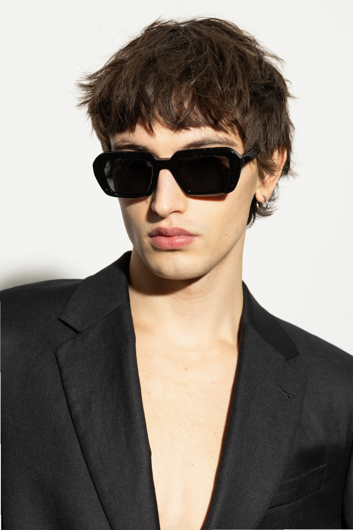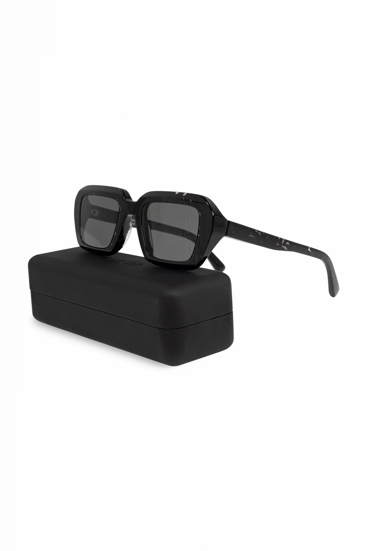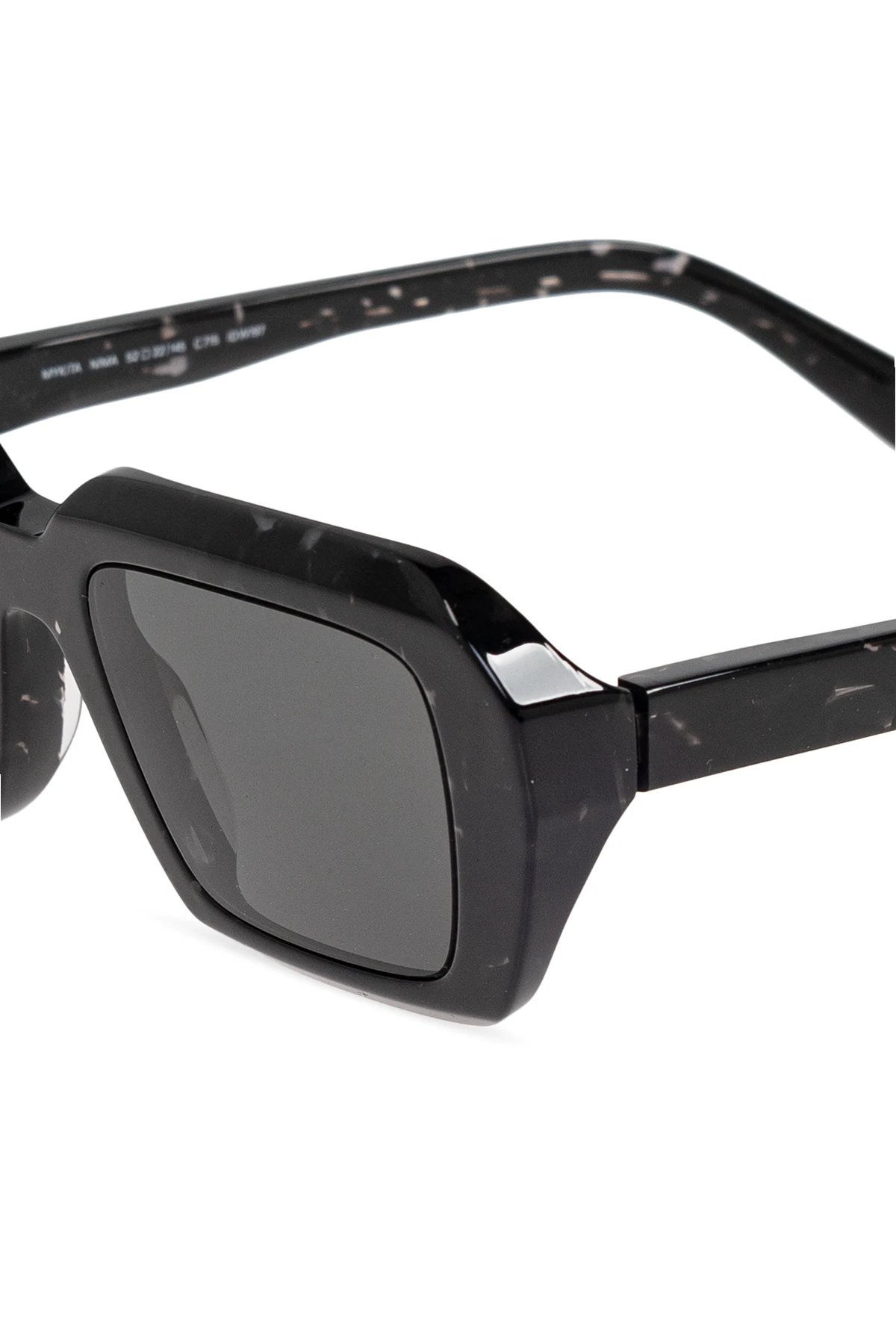 Introducing the exquisite Nima sunglasses from the distinguished house of Mykita—a brand synonymous with German precision and luxury. These unisex sunglasses are a testament to modern elegance, featuring a bold rectangular shape with pronounced edges that exude contemporary sophistication. The frames are meticulously crafted from top-quality acetate, presenting a sleek black design that offers both elegance and versatility. Delicate details, including the designer\'s logo, grace the temples, underscoring the opulent nature of these sunglasses. The classic black tone of the frames and lenses ensures these sunglasses complement a myriad of styles, making them a quintessential accessory for any wardrobe. Accompanied by a protective black case, these glasses are not only a fashion statement but also a practical choice. Why Choose This Product? Exquisite design by the renowned Mykita, known for innovation and trendsetting. High-quality acetate construction for durability and comfort. Classic black color that complements any style. Includes a protective case for enhanced longevity.