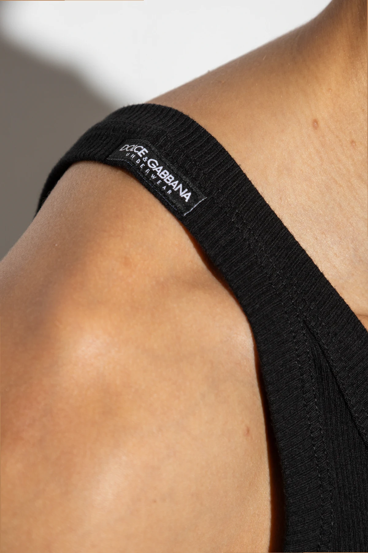 Black tank top from Dolce & Gabbana. Crafted from ribbed cotton with a form-fitting silhouette, this style features a round neck and a black logo label.