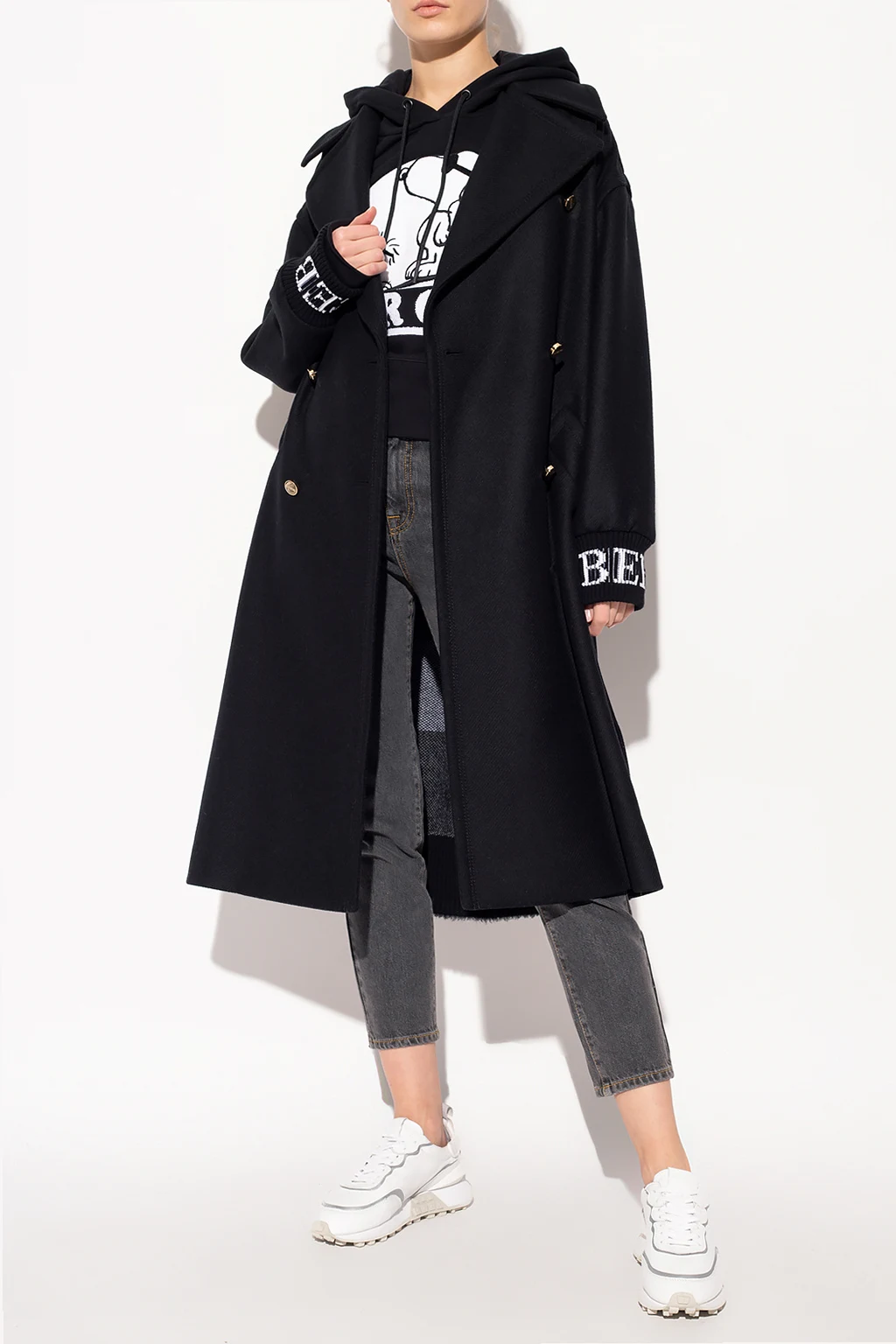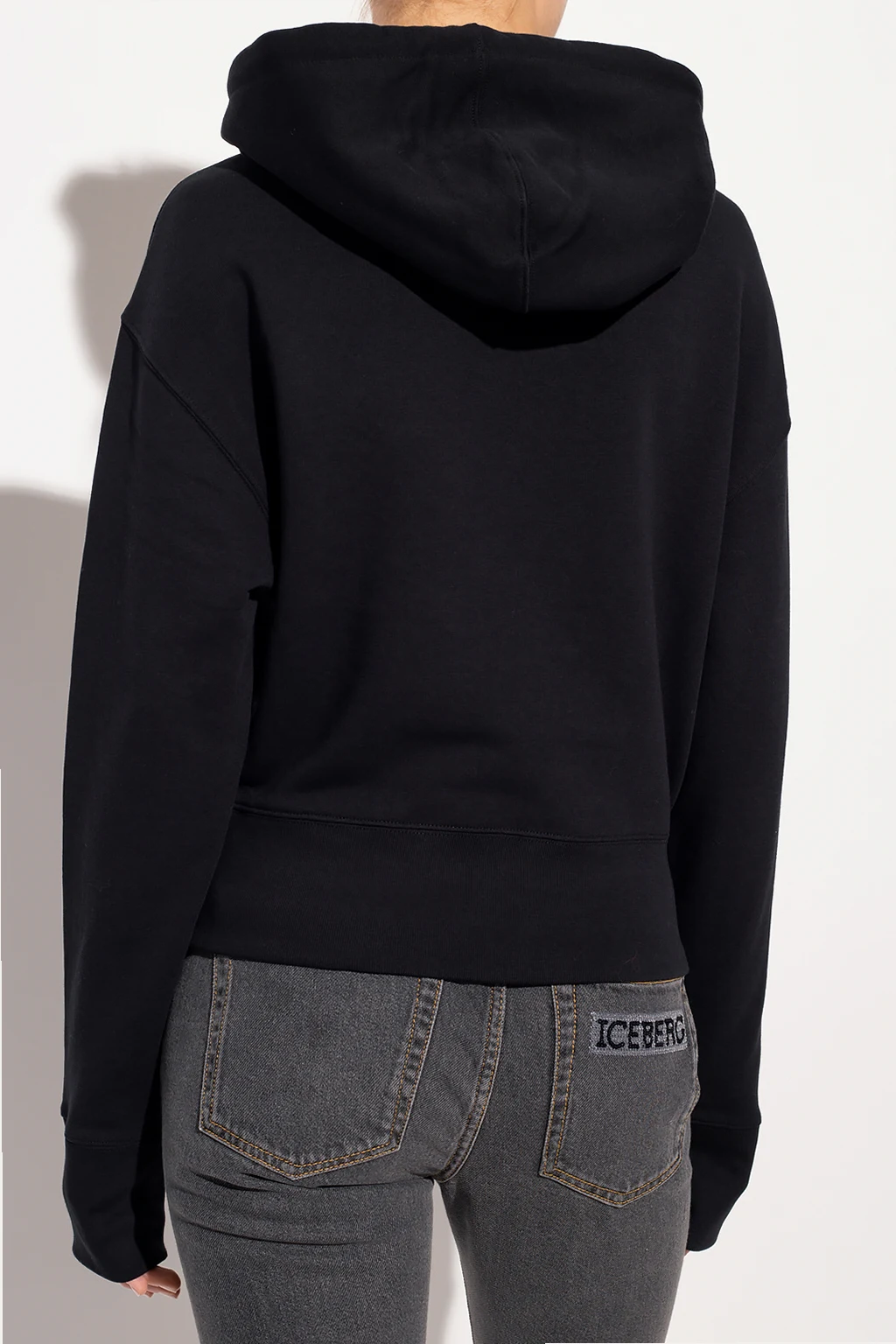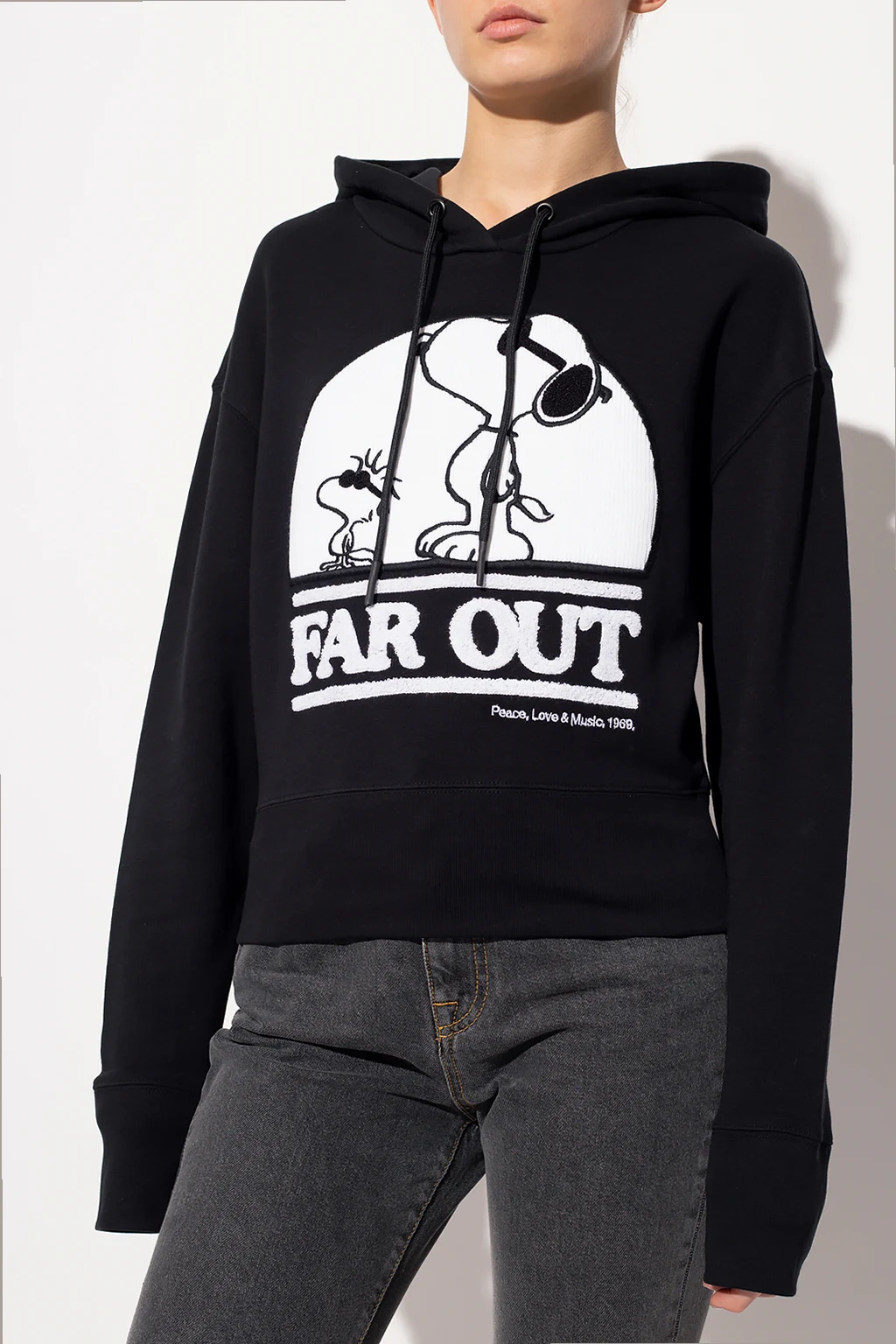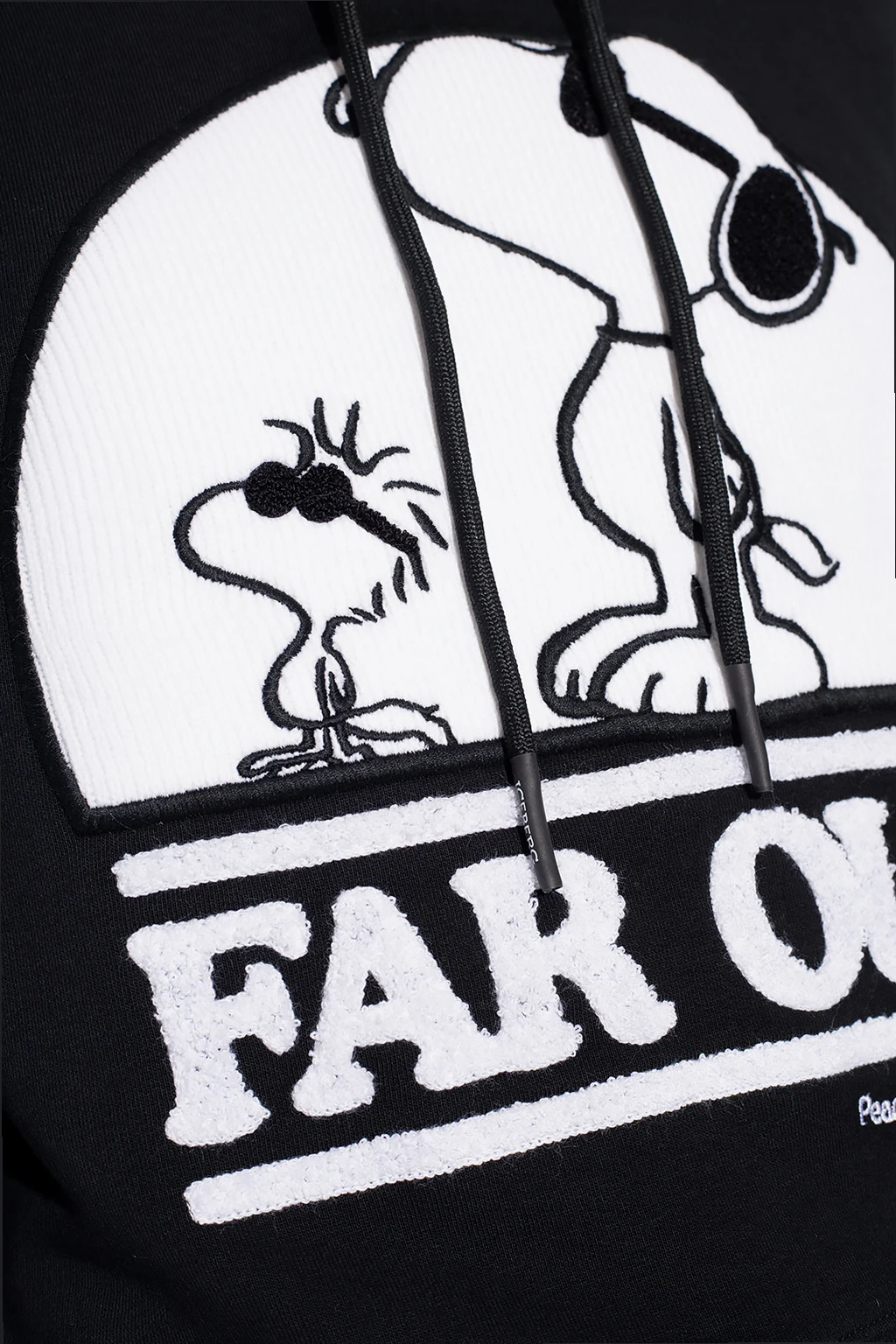 Black hoodie from Iceberg. Made of cotton, this garment features ribbed trims and an embroidered textured logo pattern with The Peanuts graphic.
