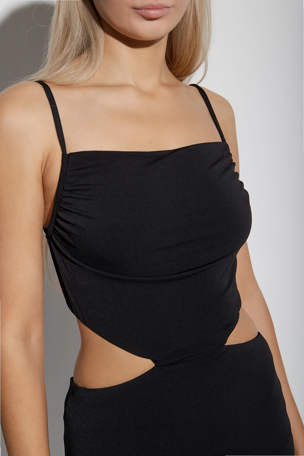 Black ‘Piper’ dress from Melissa Odabash. This design features adjustable straps, cut-out at the back and vent at the hem.