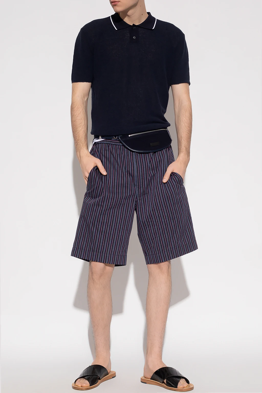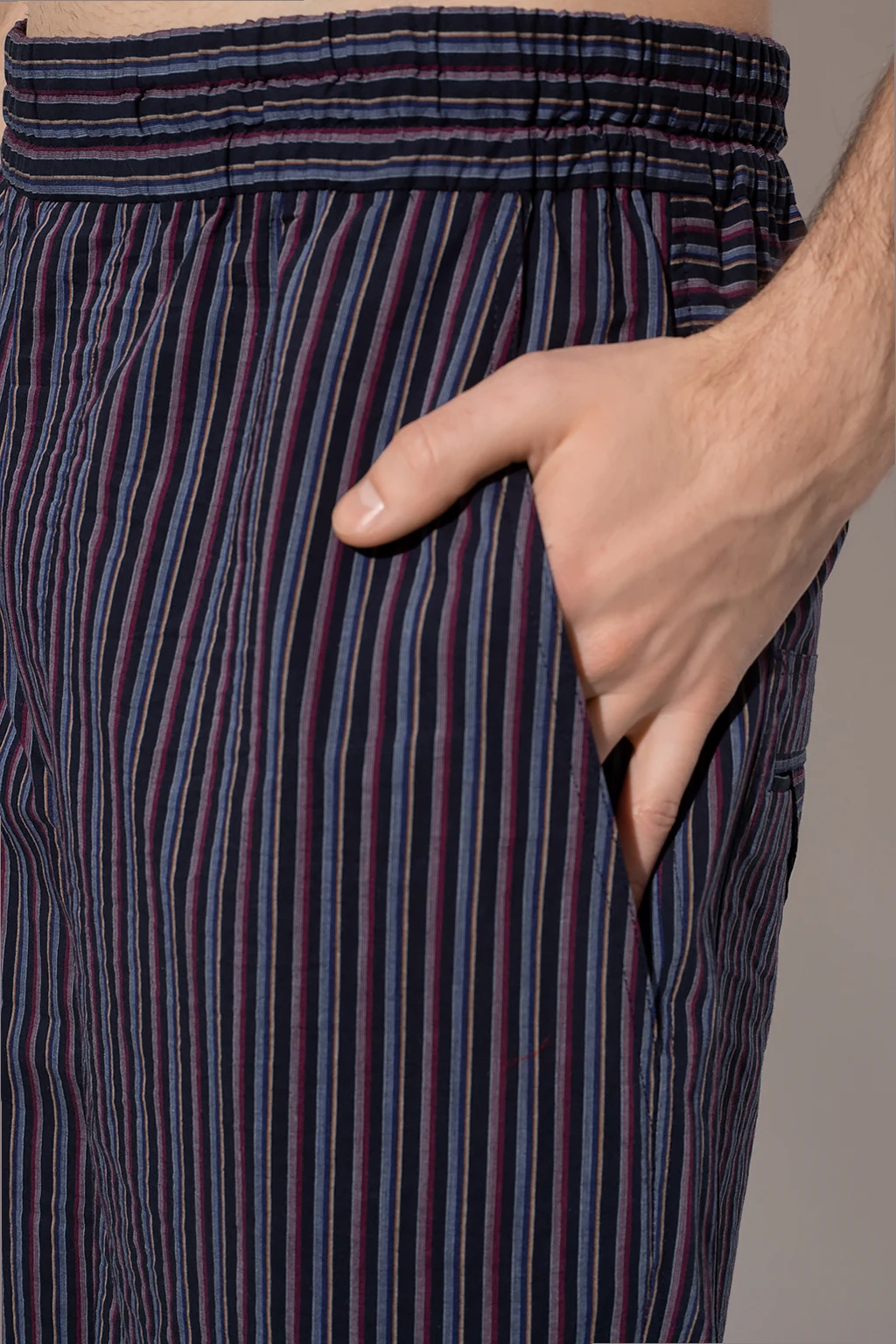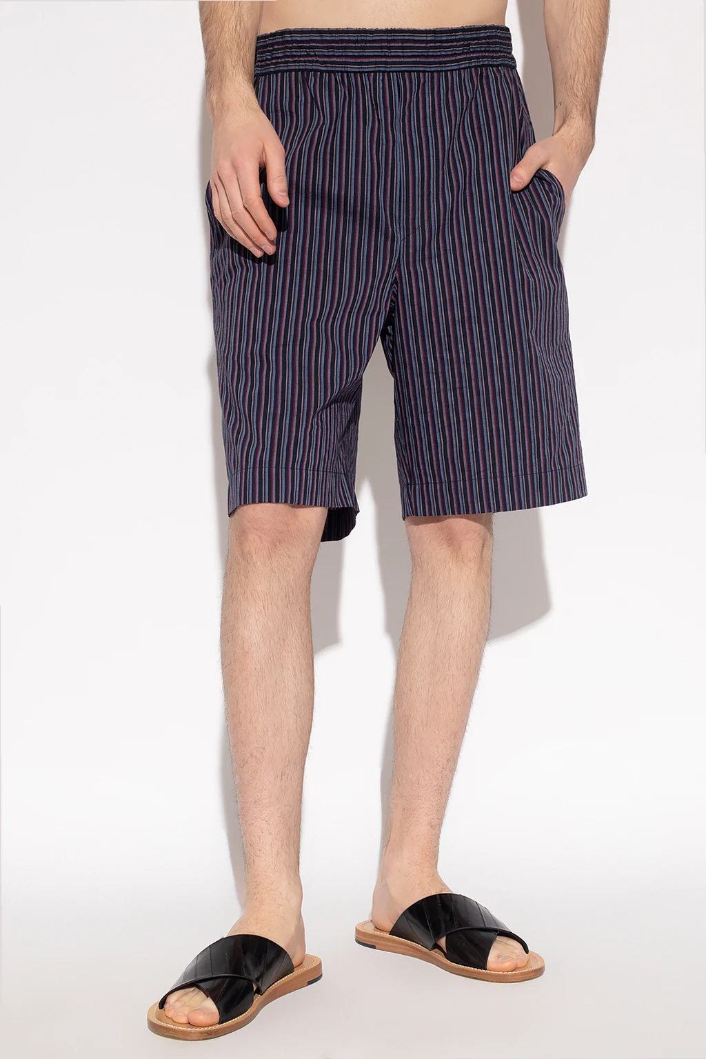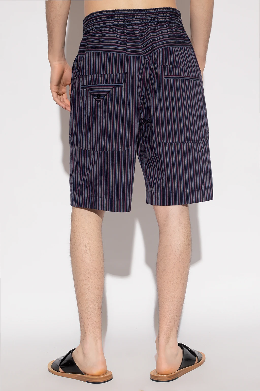 Navy blue ‘Tayan’ shorts from Isabel Marant. Made of cotton, this pair features a colourful fine stripe pattern, a drawstring waistband, a zip fly and a two slip pockets.