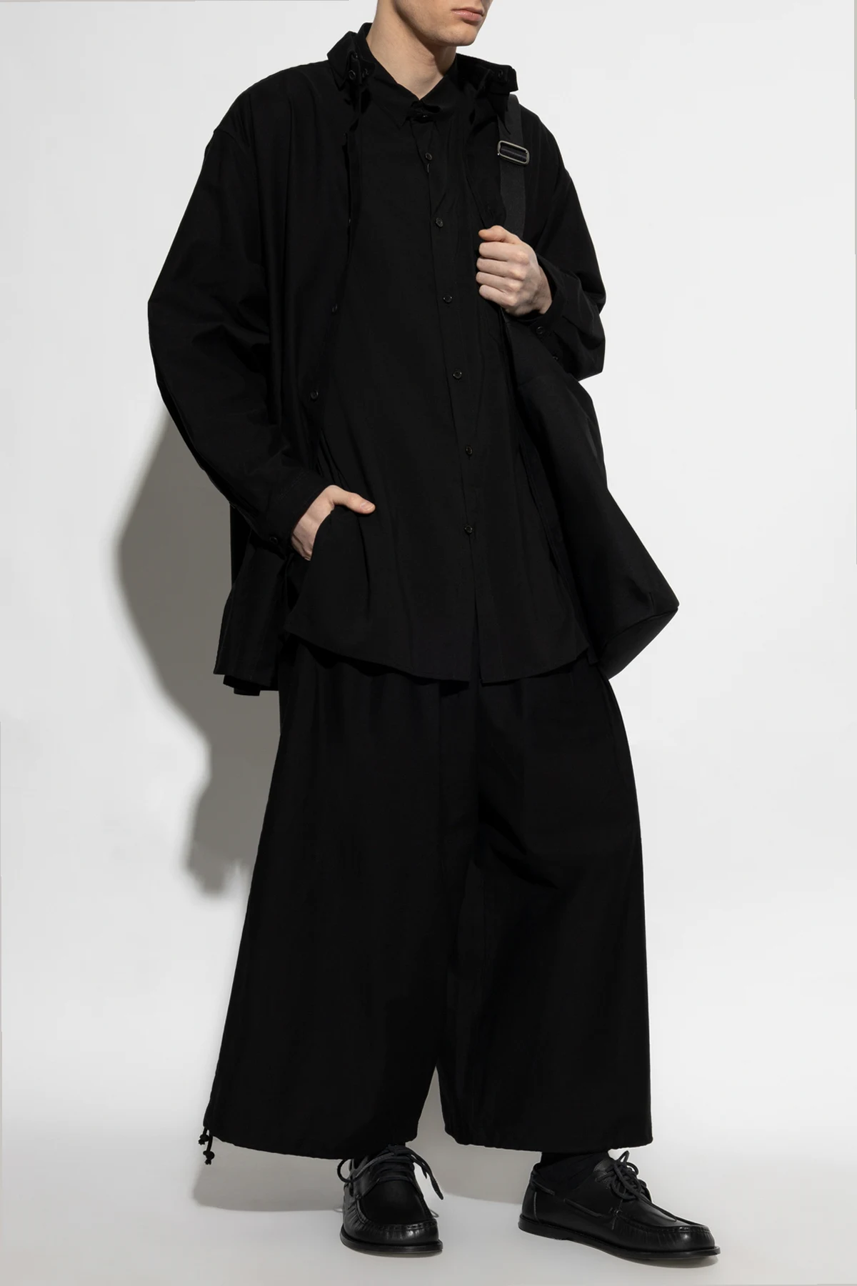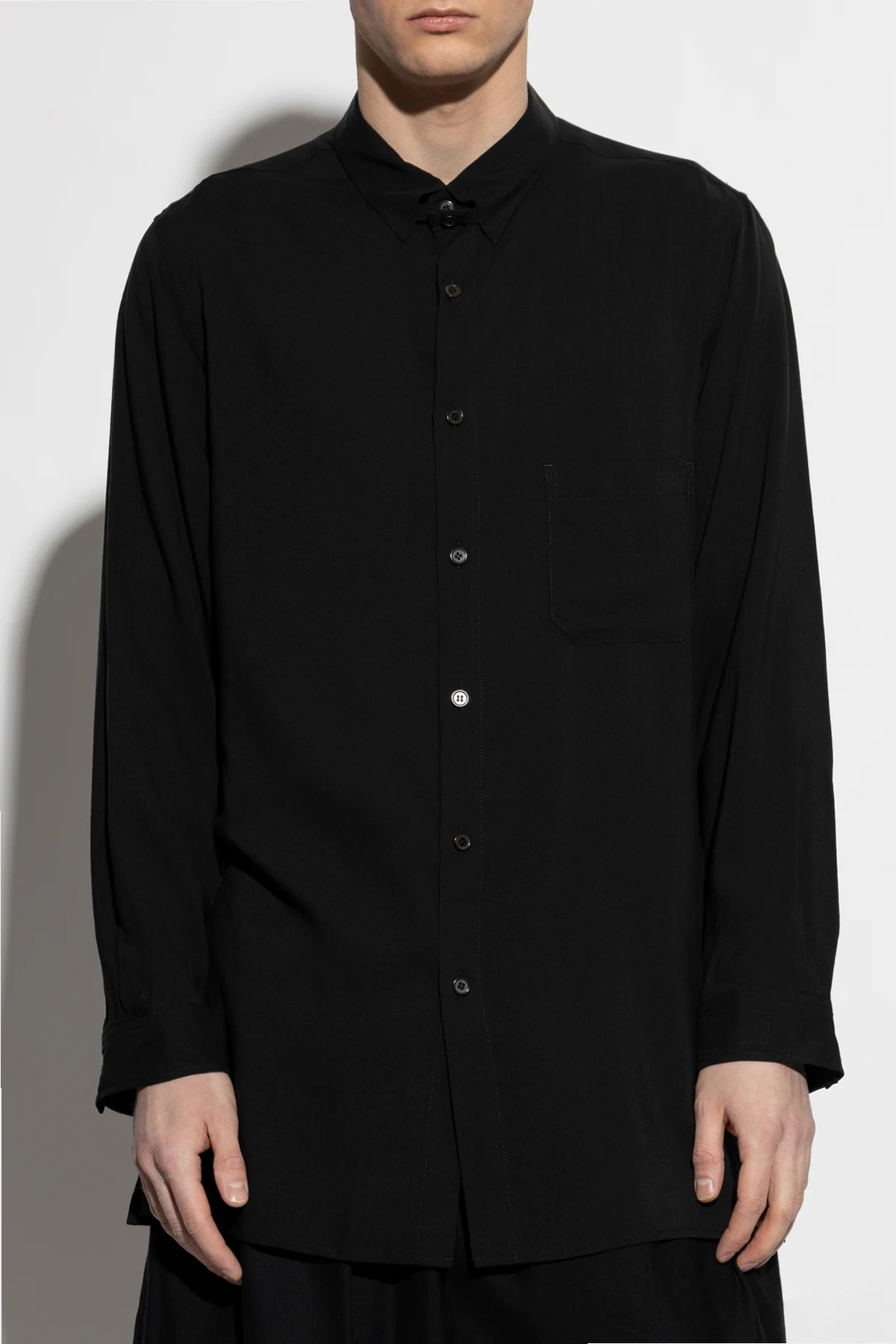 Experience the epitome of timeless elegance with the Black Pocket Shirt by Yohji Yamamoto. Crafted from a smooth, lightweight fabric, this shirt offers unparalleled comfort. Its classic long sleeves and standard collar exude a refined aesthetic, perfect for both formal and informal gatherings. Distinctive in its simplicity, the shirt features a functional chest pocket on the left side, seamlessly blending utility with style. Complemented by matching black buttons, this piece embodies sophistication. Yamamoto, renowned for his avant-garde approach, channels his rebellious spirit through this design, merging Parisian chic with a modern twist. Adorned in deep black, the shirt reflects gothic and futuristic inspirations, making it a staple for any wardrobe. Why Choose This Product? Classic Design: Versatile and suitable for any occasion. Premium Material: Ensures comfort and durability. Unique Artistic Influence: Designed by acclaimed designer Yohji Yamamoto.