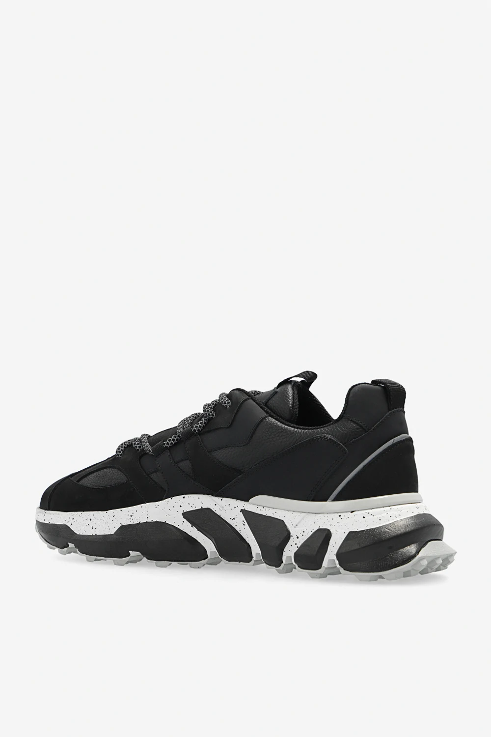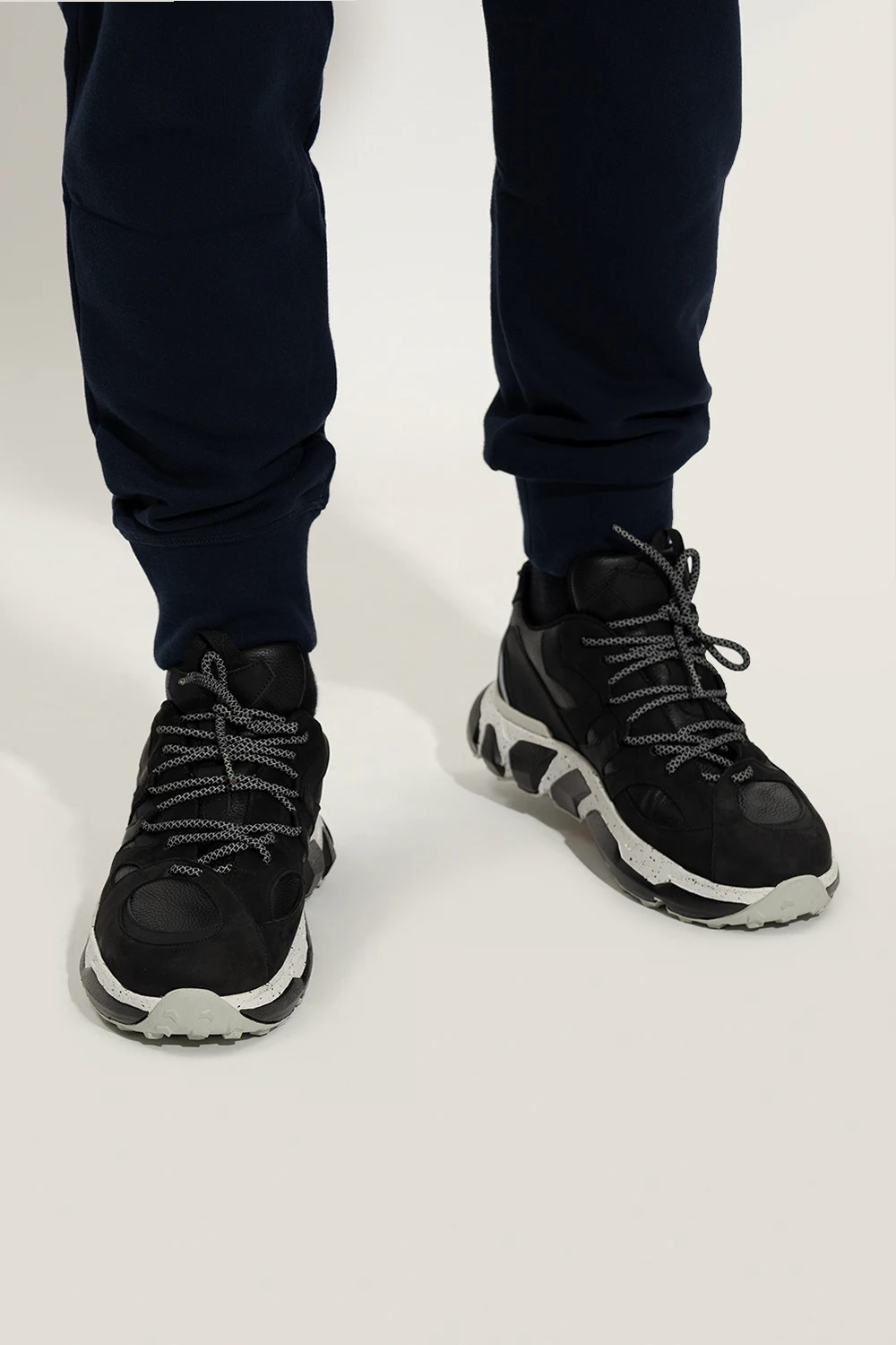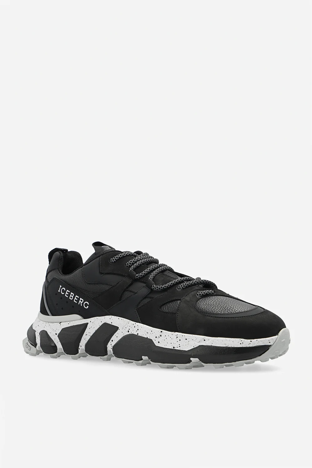 Black ‘ZeBipu’ sneakers from Iceberg. Crafted from smooth leather and suede, this lace-up model sits on a grey, black and white Vibram® rubber sole and showcases the brand\'s logo and reflective details.