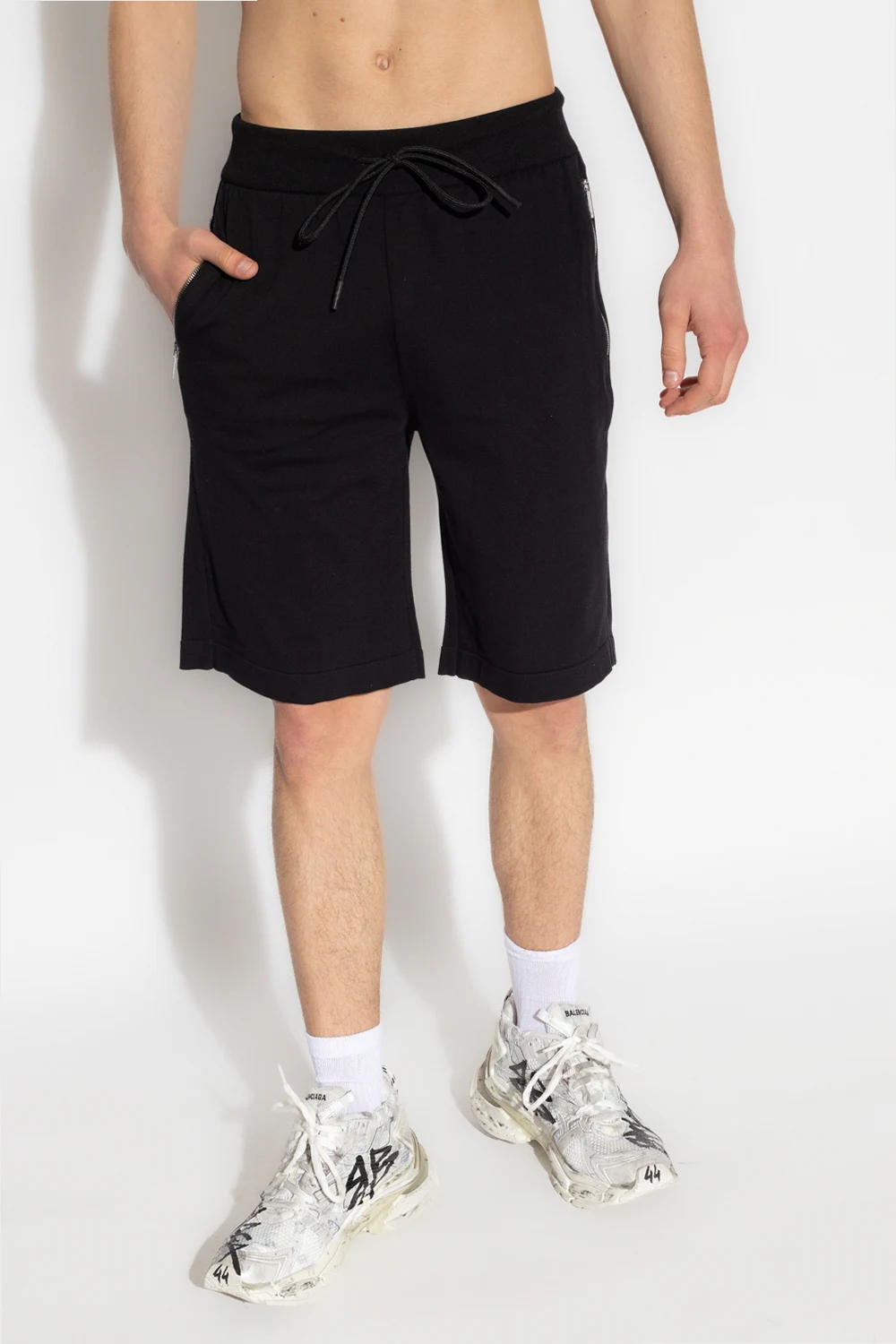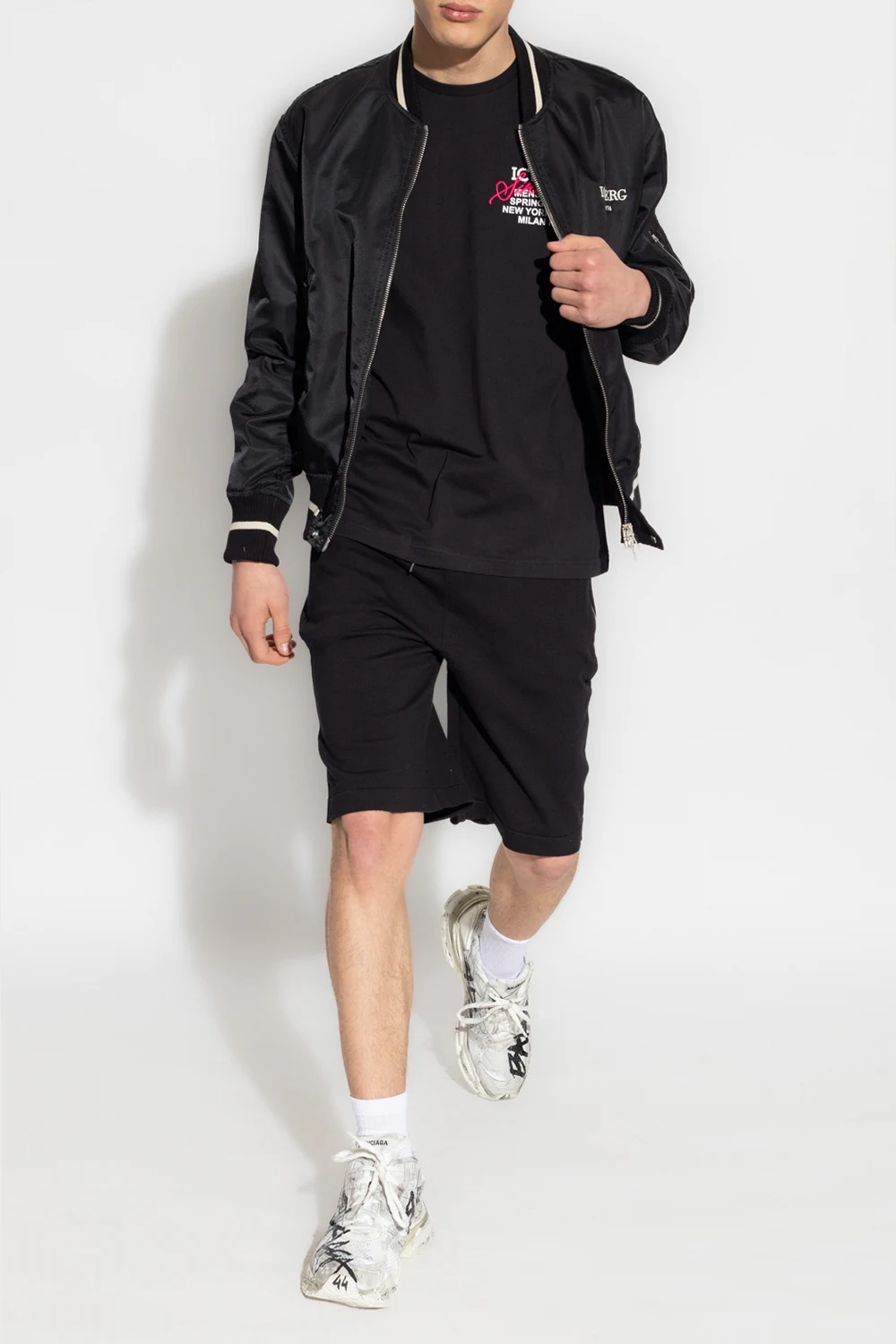 Black shorts from Iceberg. Crafted from cotton, this pair features a drawstring waist, two zip pockets and colourful graphic embroidery with a Duck Daffy motif at the back.