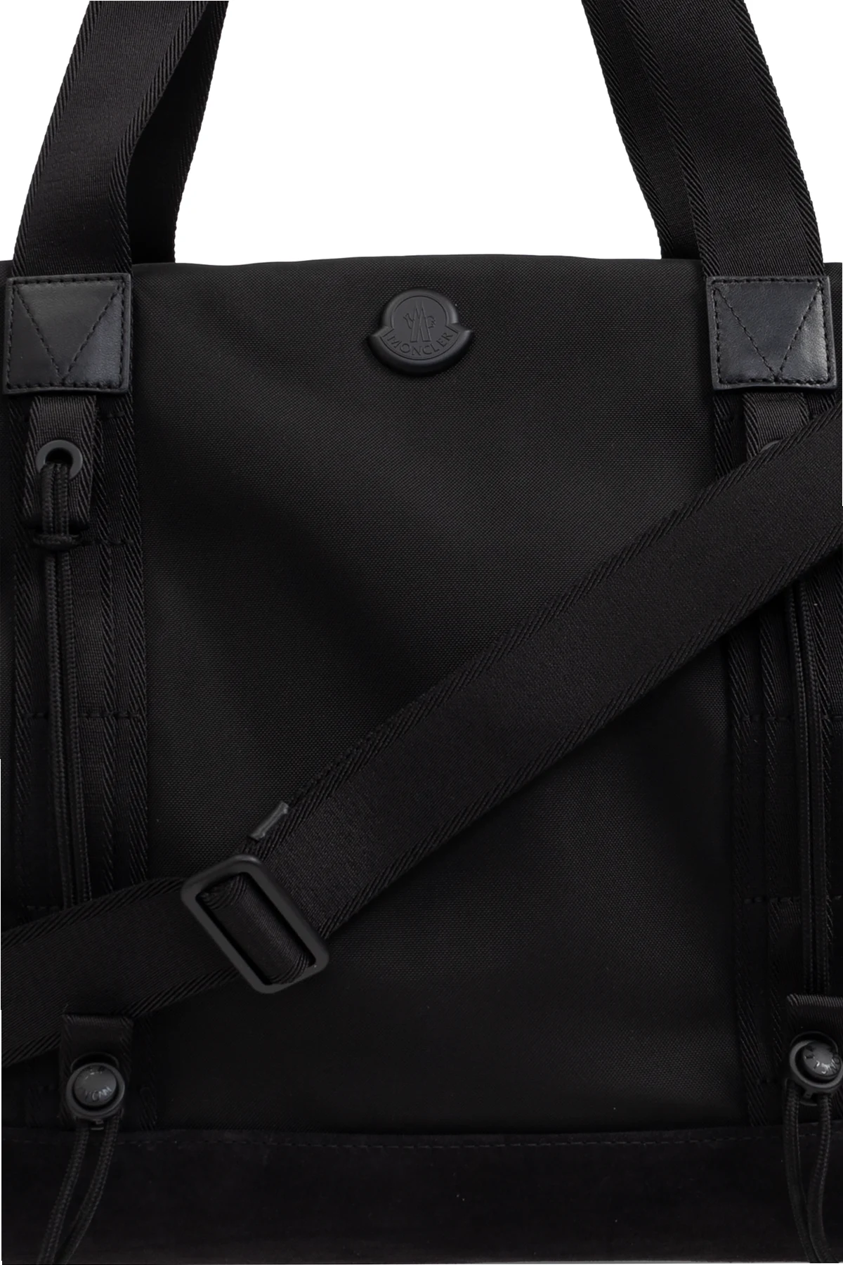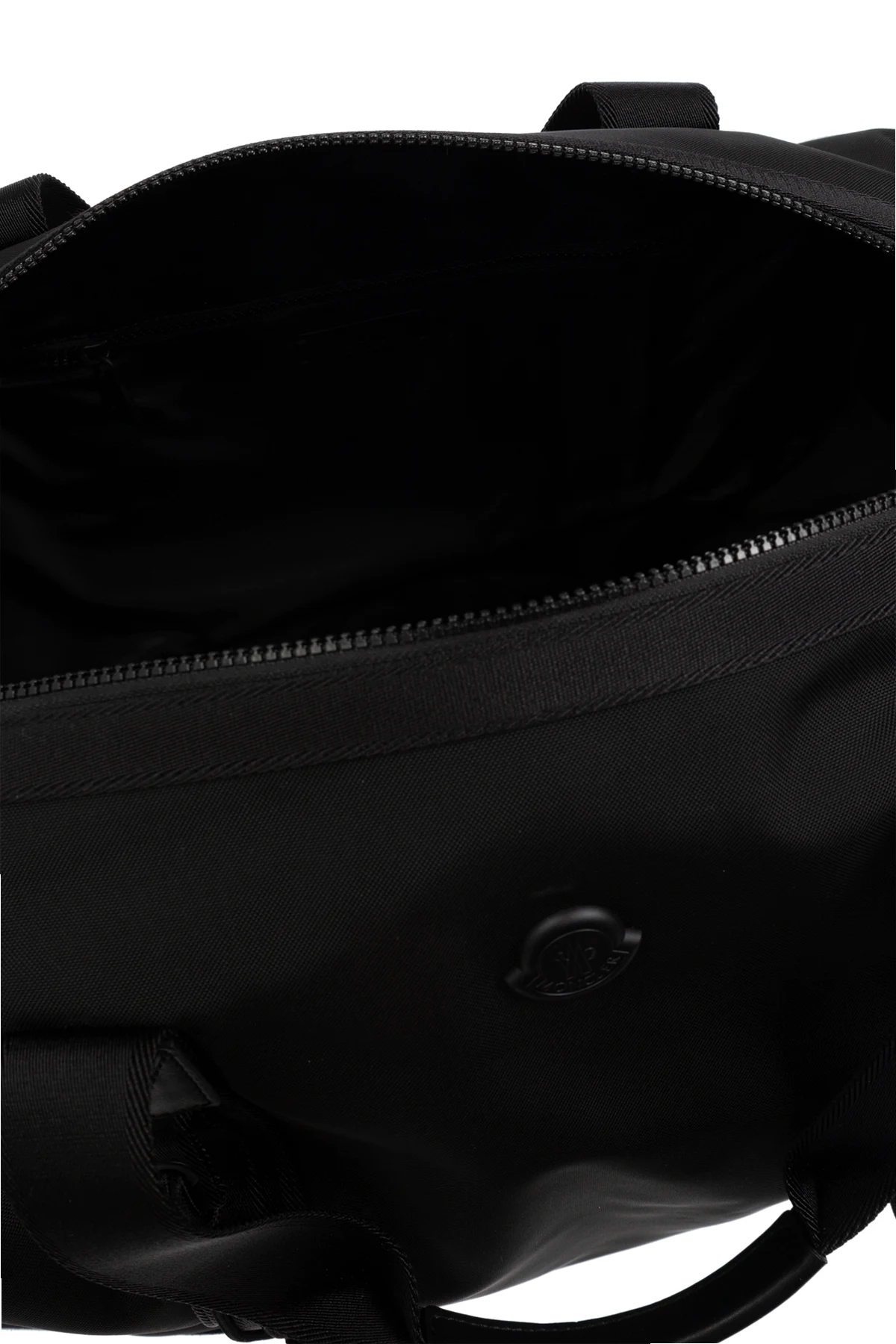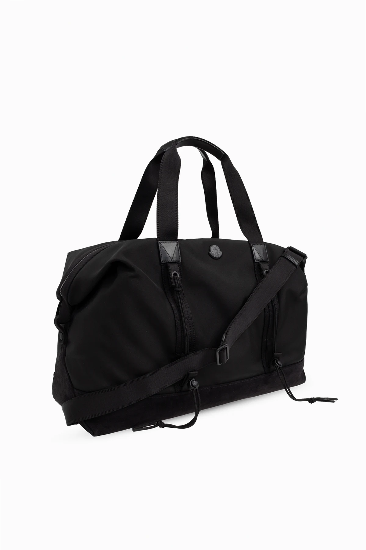 Introducing the Moncler Travel Bag, an epitome of elegance and practicality. Crafted with a classic rectangular silhouette, its rounded edges and spacious interior make it the quintessential travel companion. The exterior, a robust fusion of nylon and leather, promises durability and resilience against the rigors of travel. The bag\'s sleek black hue exudes a sense of timeless sophistication, while the discreet logo on the front adds a touch of exclusivity. Featuring two sturdy handles and an additional shoulder strap, it offers versatility in carrying options. The top is secured with a zipper closure, ensuring your belongings remain safe and sound. Inside, you\'ll find a commodious compartment with a slip pocket, perfect for organizing essentials, complemented by decorative stitching and refined hardware that accentuates its stylish allure. Why Choose This Product? Timeless Design: Classic shape with modern elegance. Durable Materials: Made from high-quality nylon and leather. Functional Features: Spacious interior with secure zipper closure. Versatile Carrying: Dual handles and a shoulder strap for convenience. Exclusive Branding: Subtle logo for a touch of luxury.