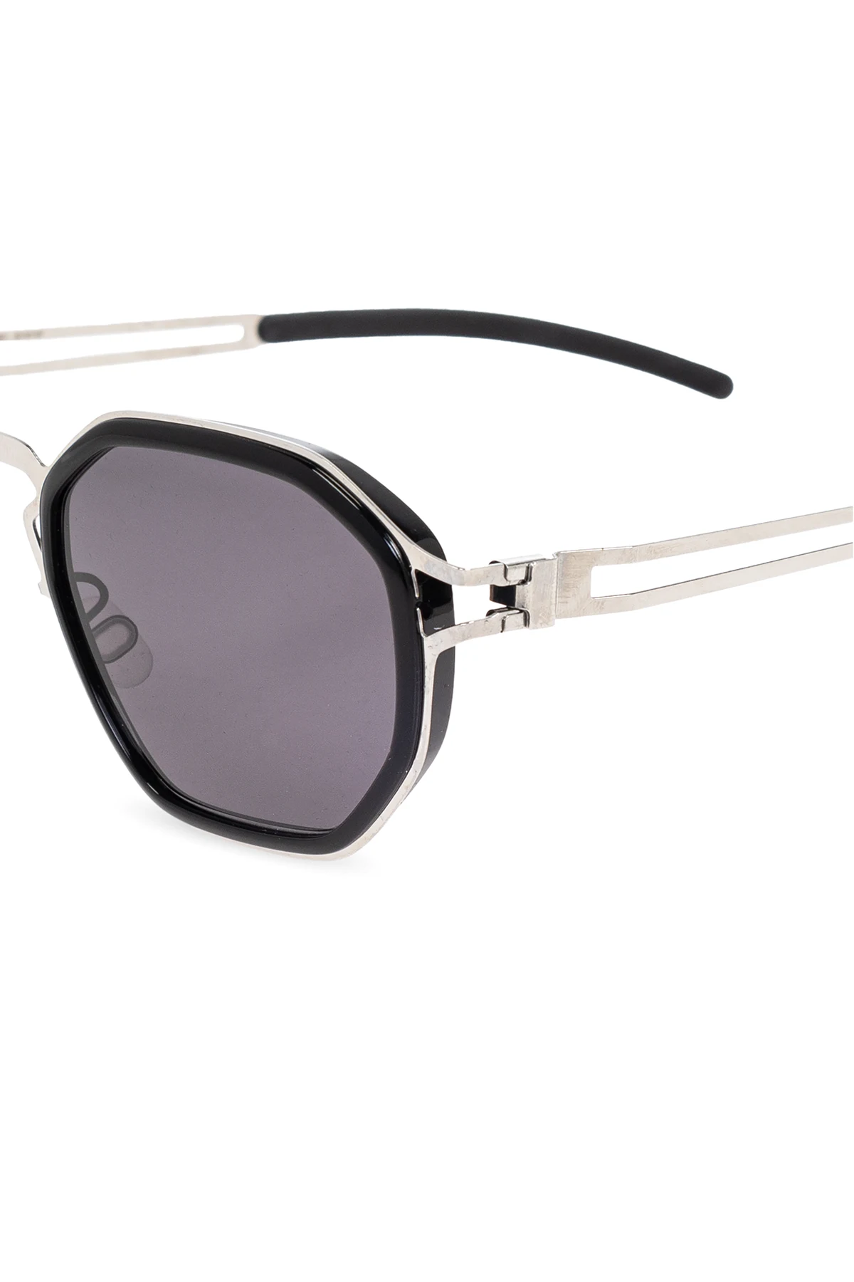 Introducing the Gia Sunglasses from the exclusive collection by Mykita, a paragon of German precision and avant-garde design. These sunglasses exhibit a unique, geometric shape akin to a hexagon, embodying a fusion of modernity and elegance. Crafted with meticulous attention to detail, the frames boast a sleek, metal construction in a sophisticated black-silver hue, complemented by dark lenses in a deep black tint, offering superior sun protection. The slender temples, adorned with a refined acetate finish, ensure comfort and effortless wearability. A subtle logo engraved on the lenses speaks volumes of the high-quality craftsmanship and prestige associated with the brand. Designed to be unisex, these sunglasses are a versatile accessory that enhances any ensemble, suitable for both men and women. Why Choose This Product? Innovative geometric design for a distinctive look. High-quality materials: Stainless Steel and Acetate. Comfortable fit with stylish acetate tips. Unisex style, perfect for any occasion. Craftsmanship that reflects Mykita\'s trendsetting ethos.