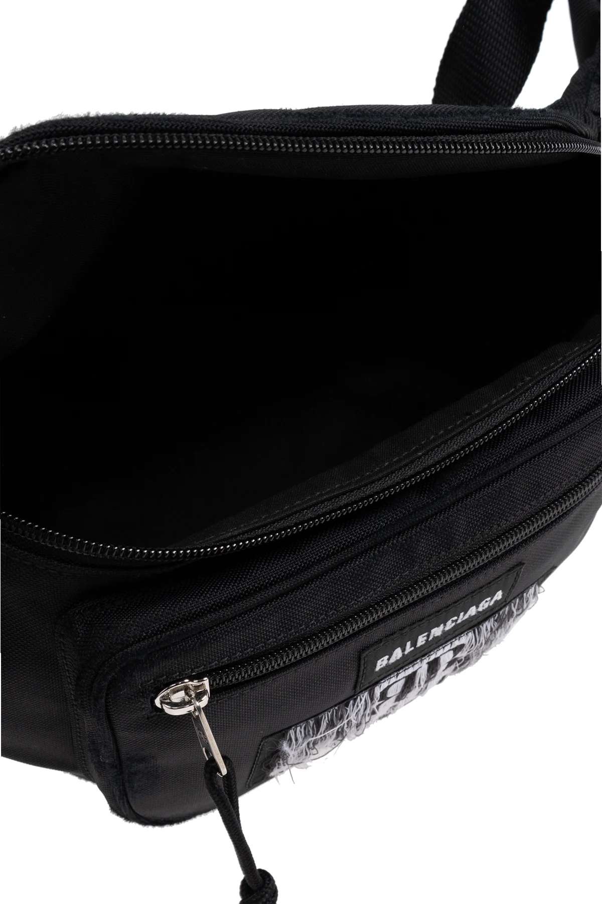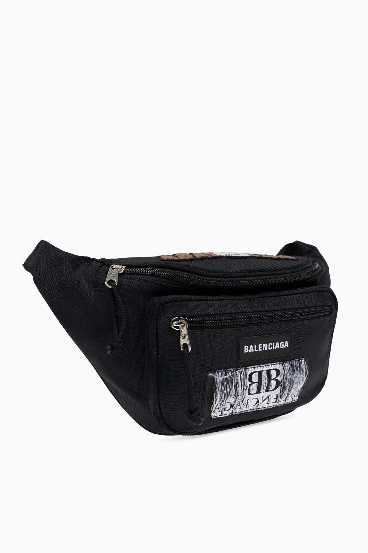 Discover the epitome of luxury with the Balenciaga Waist Bag, a masterful creation from the house of Balenciaga, renowned for its exquisite craftsmanship and visionary designs. This exclusive waist bag marries elegance with contemporary flair, making it a quintessential accessory for the modern connoisseur. Crafted from premium materials, primarily high-grade nylon, this bag offers both durability and resilience against the elements. The sleek black exterior is accentuated by a distinctive white patch bearing the iconic Balenciaga name and the emblematic BB logo, meticulously finished with frayed edges to impart a unique, avant-garde aesthetic. The bag\'s compact shape is complemented by a spacious main compartment and an additional front pocket, both secured with robust zippers, ensuring your essentials are safely stowed. The wide, adjustable strap with a convenient buckle clasp provides a customizable fit for unparalleled comfort during wear. Why Choose This Product? Exquisite Design: Features the iconic Balenciaga branding with a distinctive frayed patch. Premium Materials: Made from high-quality nylon, ensuring longevity and weather resistance. Functional Elegance: Includes a main compartment and front pocket, both with secure zipper closures. Comfortable Fit: Adjustable strap with a user-friendly buckle for optimal comfort. Exclusive Appeal: Embodies the luxurious and avant-garde spirit of Balenciaga.