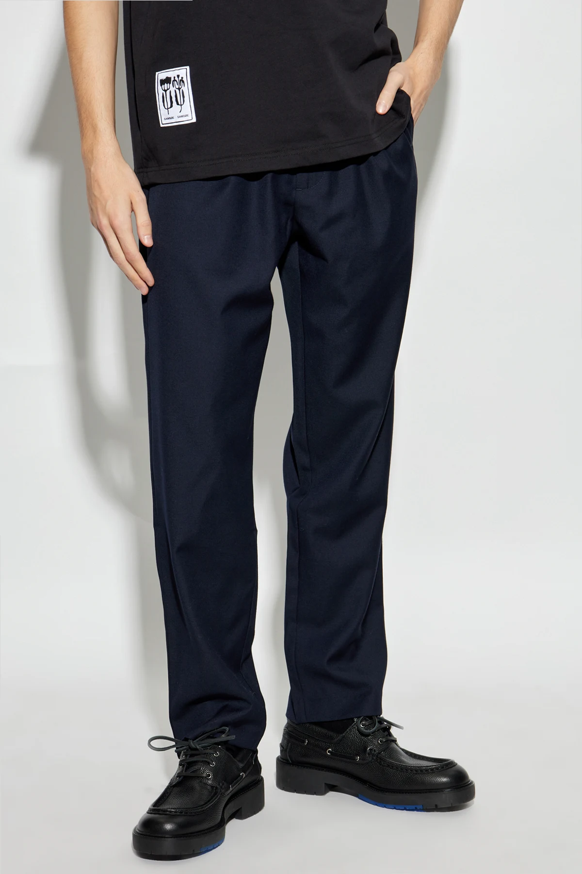 Introducing the Sabertil Trousers from the illustrious Samsøe Samsøe collection, epitomizing timeless elegance and versatility. These navy-hued trousers exude sophistication and are crafted for those who appreciate both comfort and style. Composed of a luxurious blend of wool and polyester, the Sabertil Trousers offer a smooth texture that suggests an air of refinement and an unparalleled sense of ease. The loose fit ensures a contemporary silhouette, complemented by an elastic waistband with drawstrings for an adjustable fit, enhancing your comfort and adaptability. The straight-leg design embodies a universal appeal, making these trousers a perfect match for any ensemble, from casual to semi-formal. A subtle pocket detail adds a touch of practicality, rounding off this exquisite piece. Why Choose This Product? Exquisite blend of materials for comfort and durability. Elegant navy color suitable for diverse occasions. Adjustable fit with elastic waistband and drawstrings. Designed by the renowned Samsøe Samsøe.