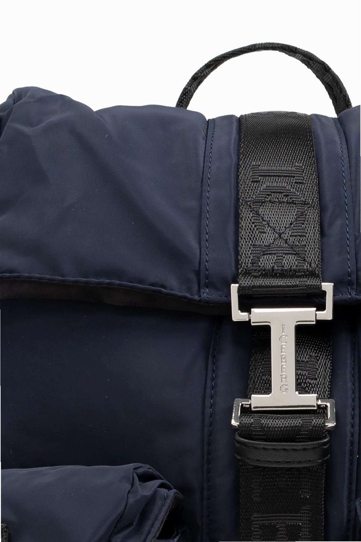 Introducing the Plecak z logo from the distinguished collection of Iceberg, a beacon of sophistication and practicality. This navy-blue Its classic rectangular silhouette, accentuated by a top flap closure with a snap, exudes timeless elegance. The bag\'s exterior is enhanced by side pockets secured with strap buckles and a front strap adorned with the iconic ICEBERG logo, a hallmark of its esteemed designer heritage. Inside, the backpack offers a spacious compartment, complemented by an additional zipped pocket and three auxiliary pockets, providing ample storage for your essentials. The adjustable shoulder straps and top handle ensure comfort and versatility. This backpack seamlessly merges style with functionality, making it an ideal choice for those who value both quality and design. Dlaczego warto kupić ten produkt? Exquisite Design: Showcases Iceberg’s renowned aesthetic with a pop culture flair. Functional Luxury: Ample storage with multiple pockets for organized carrying. Durable Construction: Made from robust, potentially water-resistant materials. Comfortable Wear: Equipped with adjustable straps for personalized comfort.