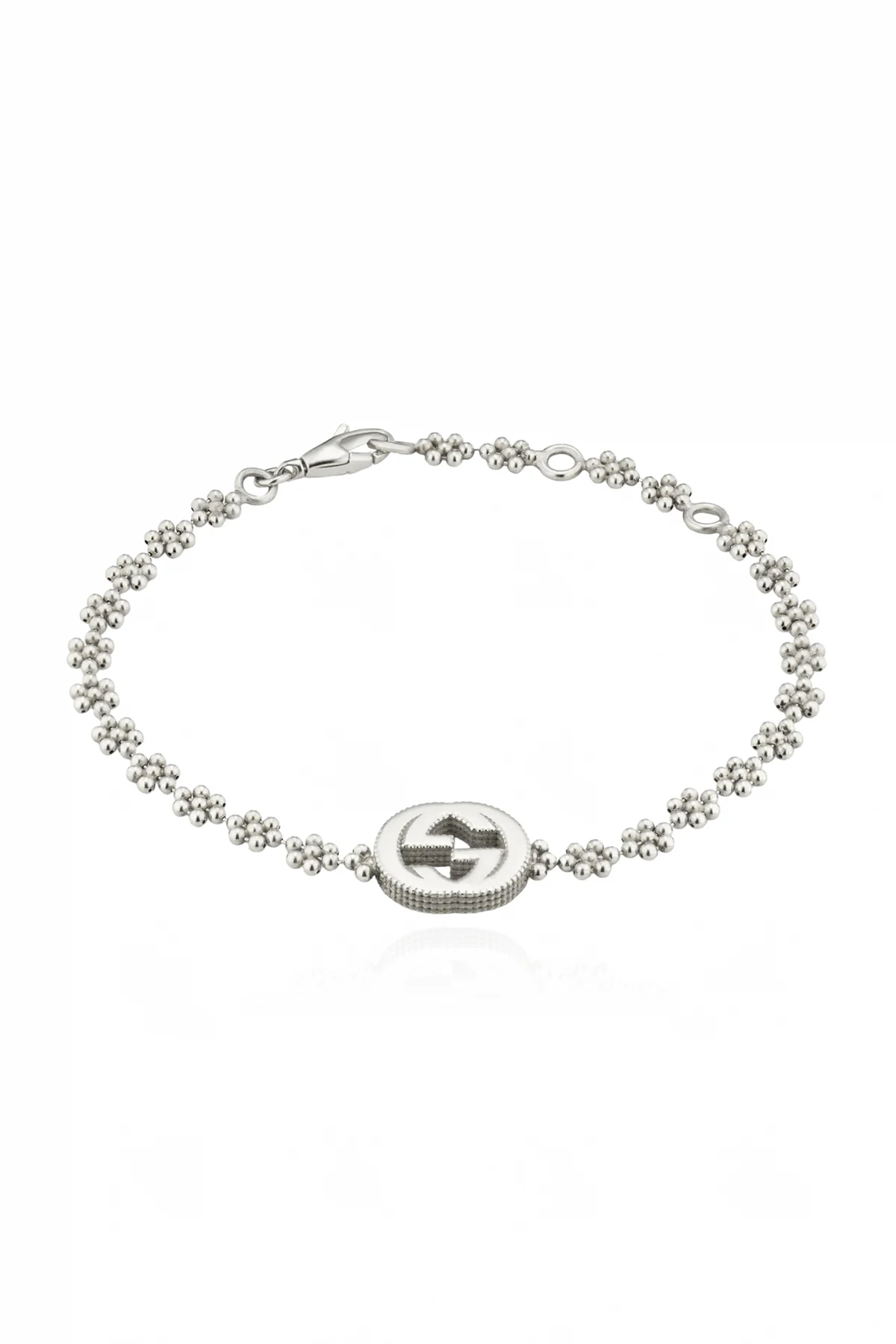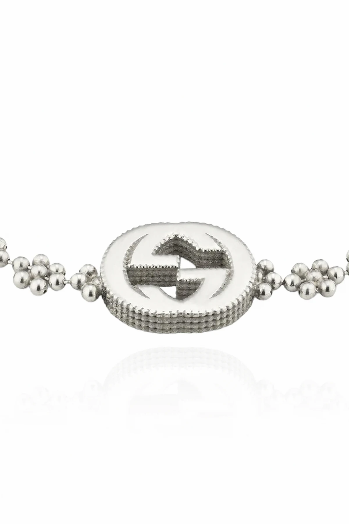 Introducing an exquisite piece from the renowned designer Gucci, this Silver Bracelet encapsulates the essence of sophistication and elegance. Crafted from 100% 925 silver, it boasts a luster that catches the eye and captivates the soul. The bracelet is designed with meticulous attention to detail, featuring a series of fine, round elements linked together to form a flexible chain that gracefully adorns the wrist. The uniform pattern of the elements lends the bracelet an elegant and cohesive appearance, while the silver material reflects light beautifully, highlighting the high-quality craftsmanship. A distinctive central disc, engraved with the iconic \"G\" indentation, serves as the focal point, signifying the bracelet as a coveted item within an exclusive collection. The bracelet\'s clasp, a practical lobster claw, ensures ease of wear, making it both a stylish and convenient accessory. Its versatility is showcased through presentation on various outfits, affirming its ability to complement both elegant and casual styles seamlessly. Why Purchase This Product? Exclusivity: A signature piece from Gucci, offering a touch of luxury. Versatility: Perfectly pairs with a multitude of looks, from formal to everyday wear. Quality: Meticulously crafted from 925 silver, ensuring durability and lasting brilliance. Detail: The \"G\" emblem central disc adds a unique, recognizable touch to the design.