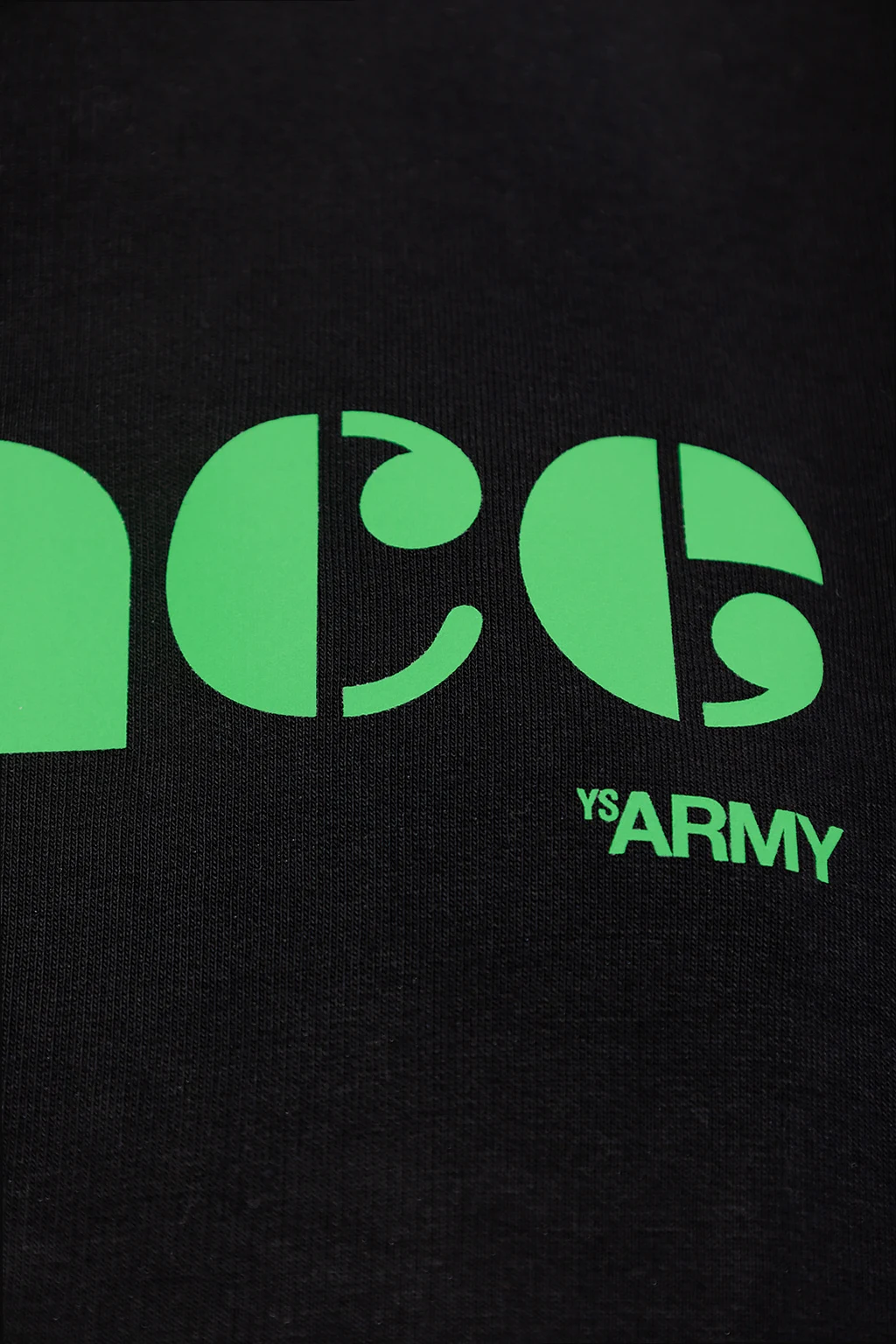 Black crewneck sweatshirt from Yves Salomon, the ‘Army’ line. Made of organic cotton, this long sleeve design features a green logo print and ribbed trims at the hem and cuffs.