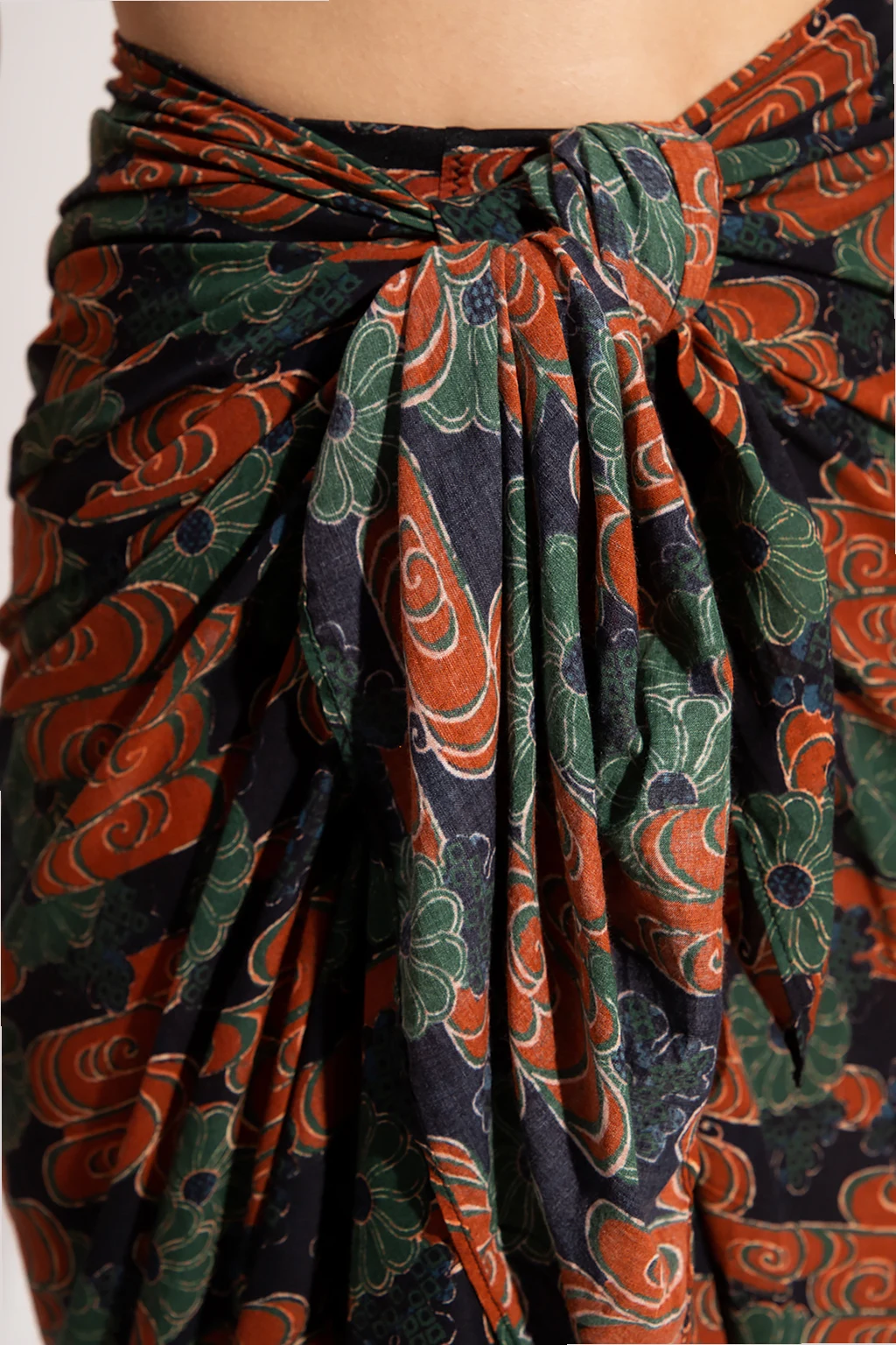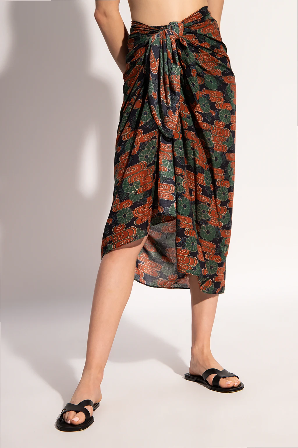 Multicoloured \'Paz\' beach skirt from Ulla Johnson. Flaunting an all-over pattern, this style features a front vent and a decorative knot fastening.