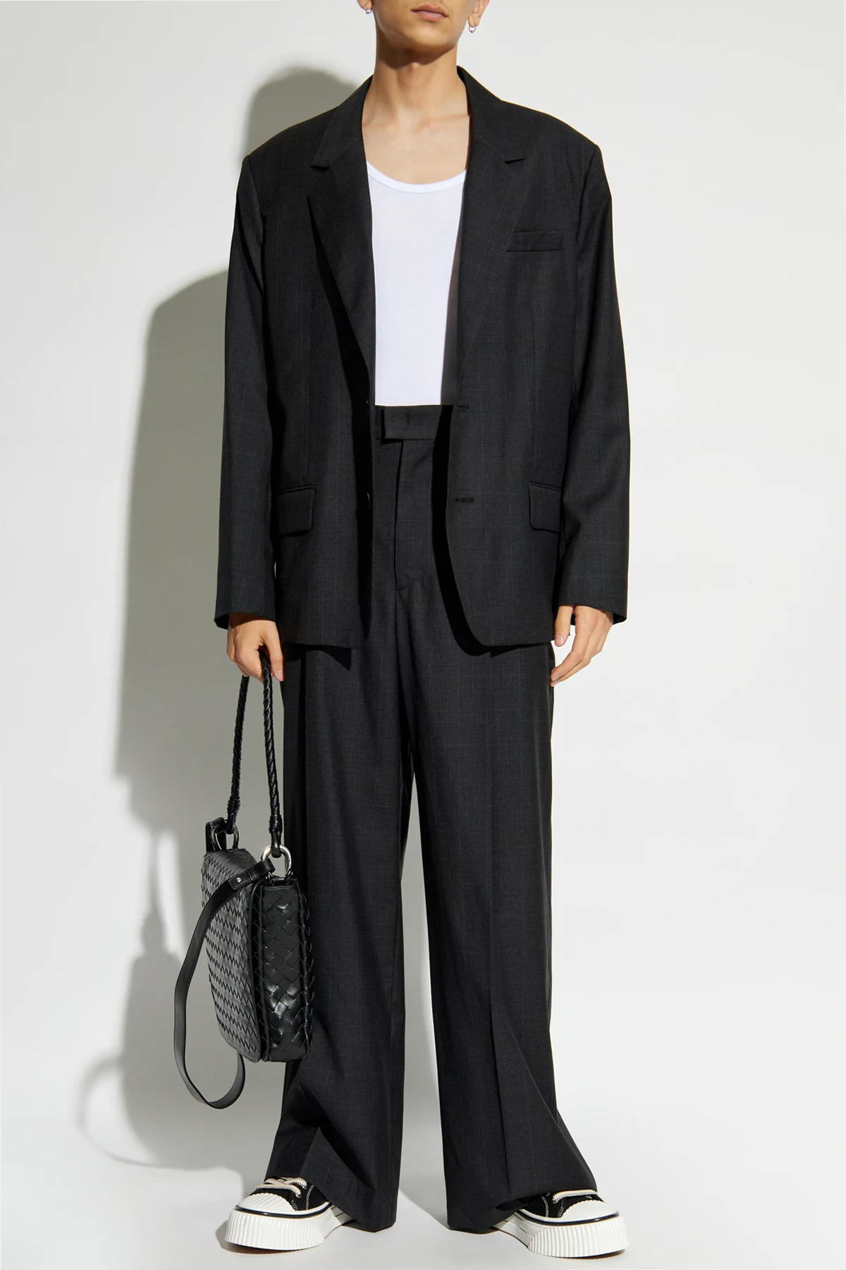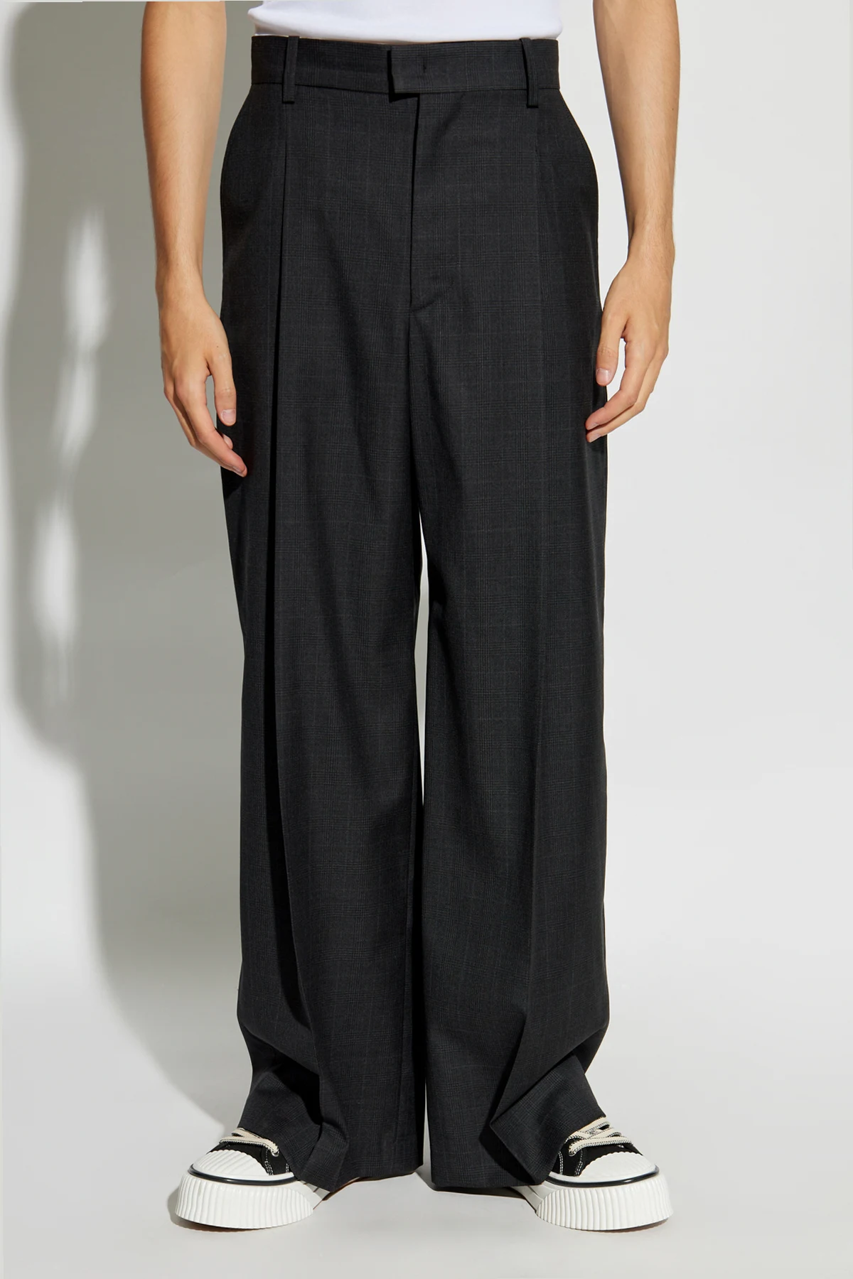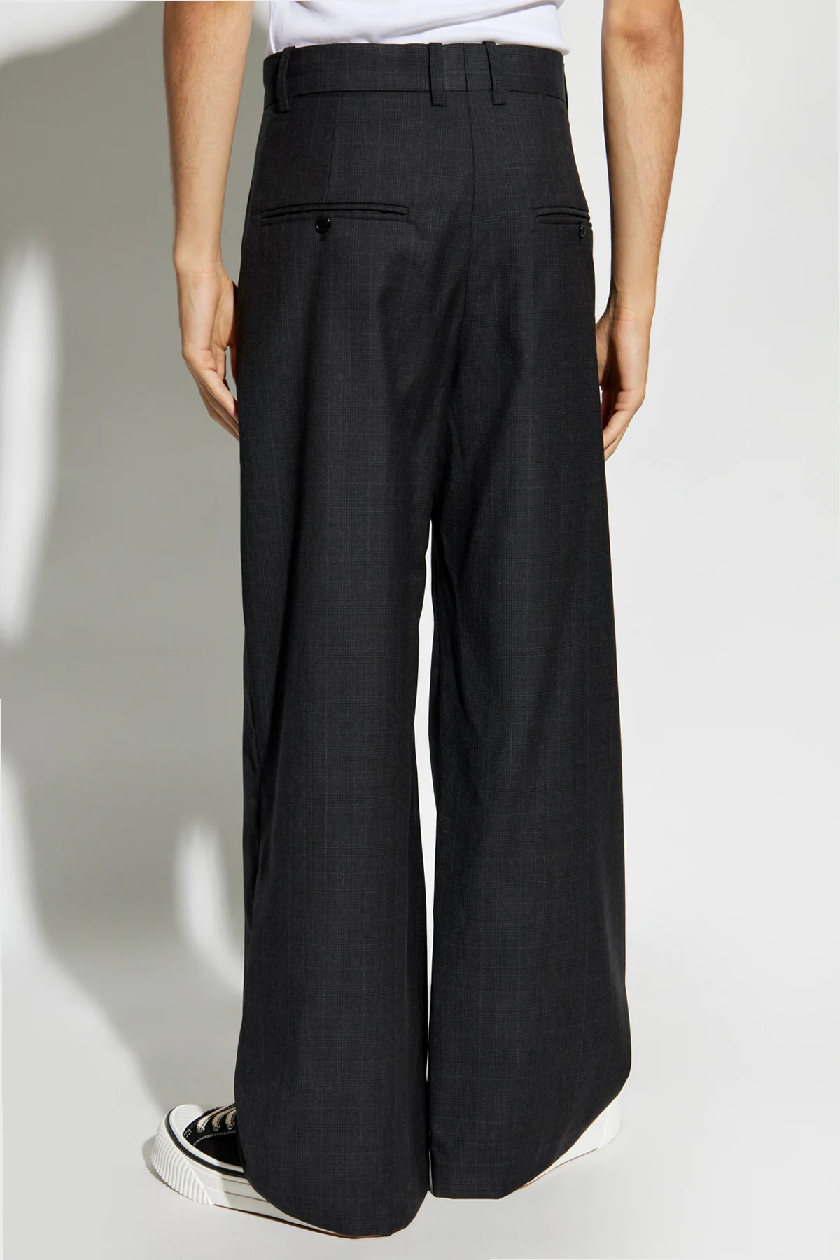 Introducing the exquisite Namoro Pants from the exclusive MARANT collection. These pants epitomize elegance and sophistication, crafted from the finest wool to ensure unparalleled comfort and durability. The loose, wide-leg design offers a contemporary and relaxed silhouette, perfect for the modern individual. The fabric features a subtle check pattern, adding a touch of refinement and subtlety to your ensemble. The rich dark gray hue makes these pants versatile and easy to pair with a variety of wardrobe pieces. Attention to detail is paramount in the Namoro Pants. They boast pleats at the front, side and back pockets, and belt loops at the waist. The back pockets are adorned with buttons, adding a hint of understated elegance. The pants are fastened with a button and a zip closure, ensuring a secure and comfortable fit. Why Choose This Product? Premium Material: Made from 100% high-quality wool. Unique Design: Loose, wide-leg cut with a subtle check pattern for a modern twist. Functional Details: Includes four pockets and belt loops for practicality. Versatile Color: Dark gray shade that complements any wardrobe. Discreet Elegance: No visible logos, ensuring a sophisticated look.