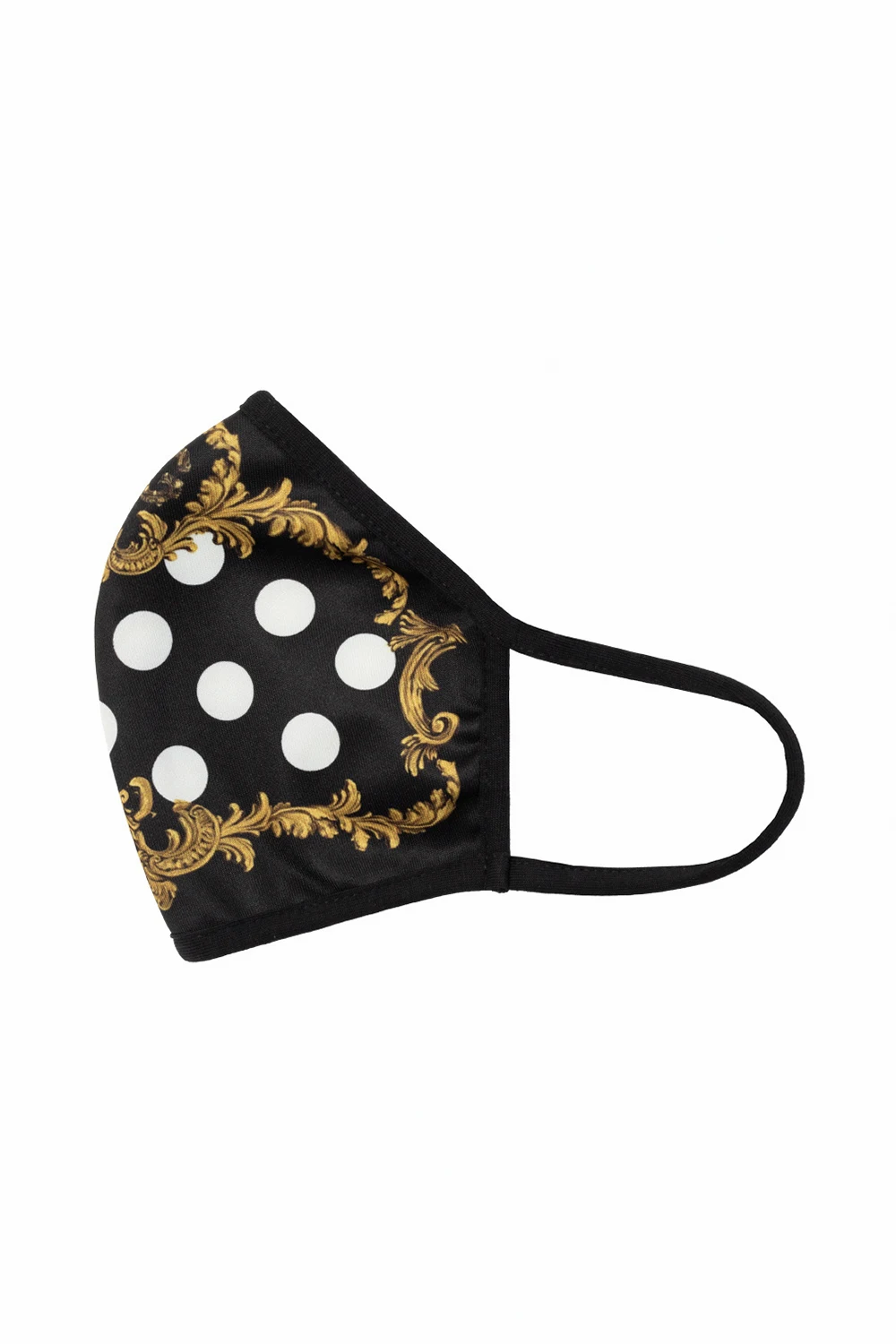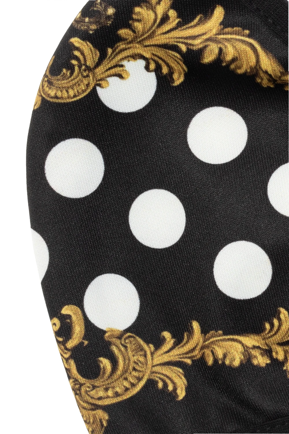 Black patterned mask with a logo in yellow and white from Dolce & Gabbana.