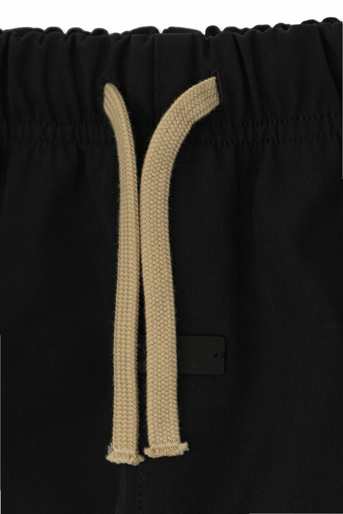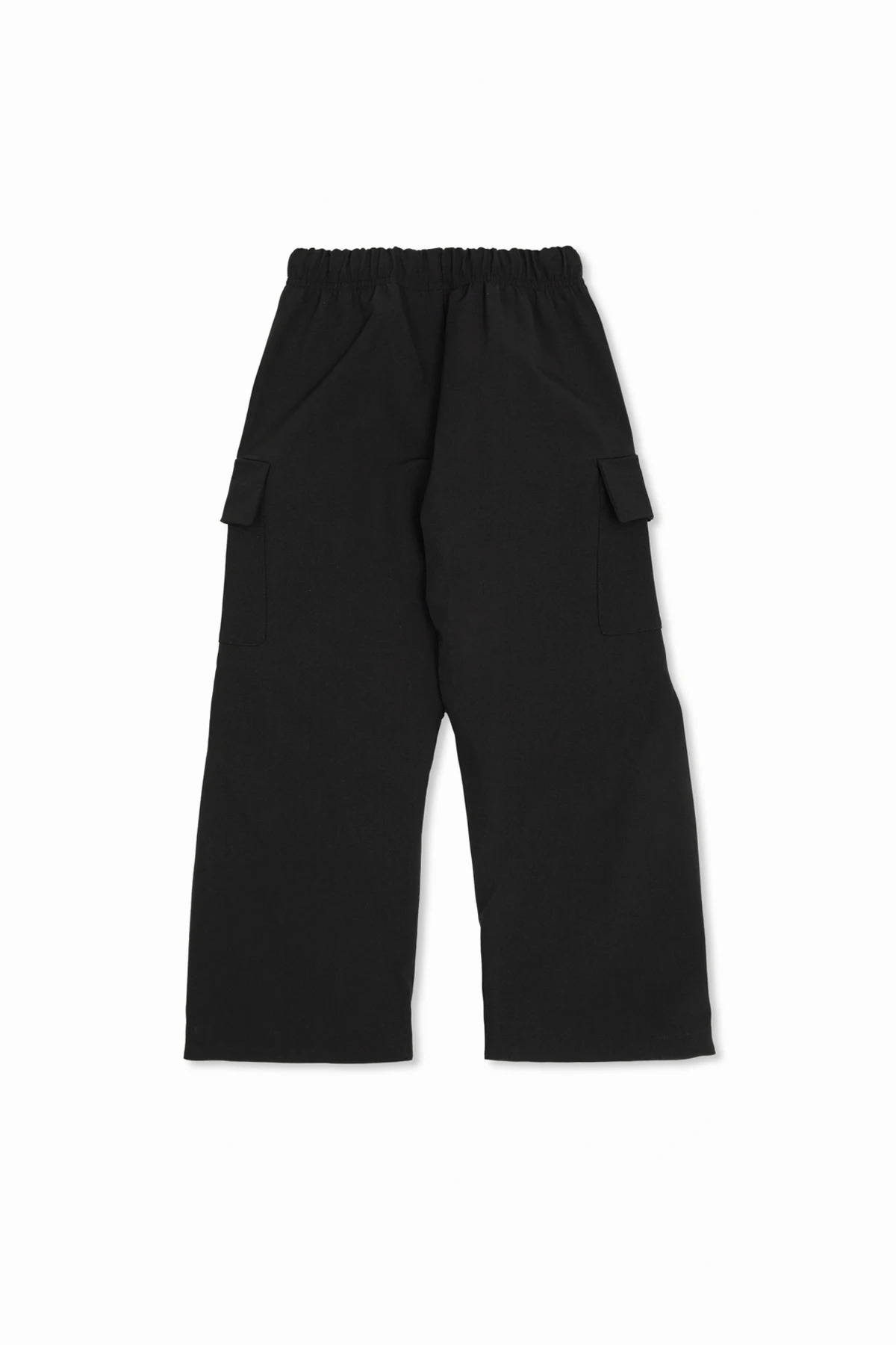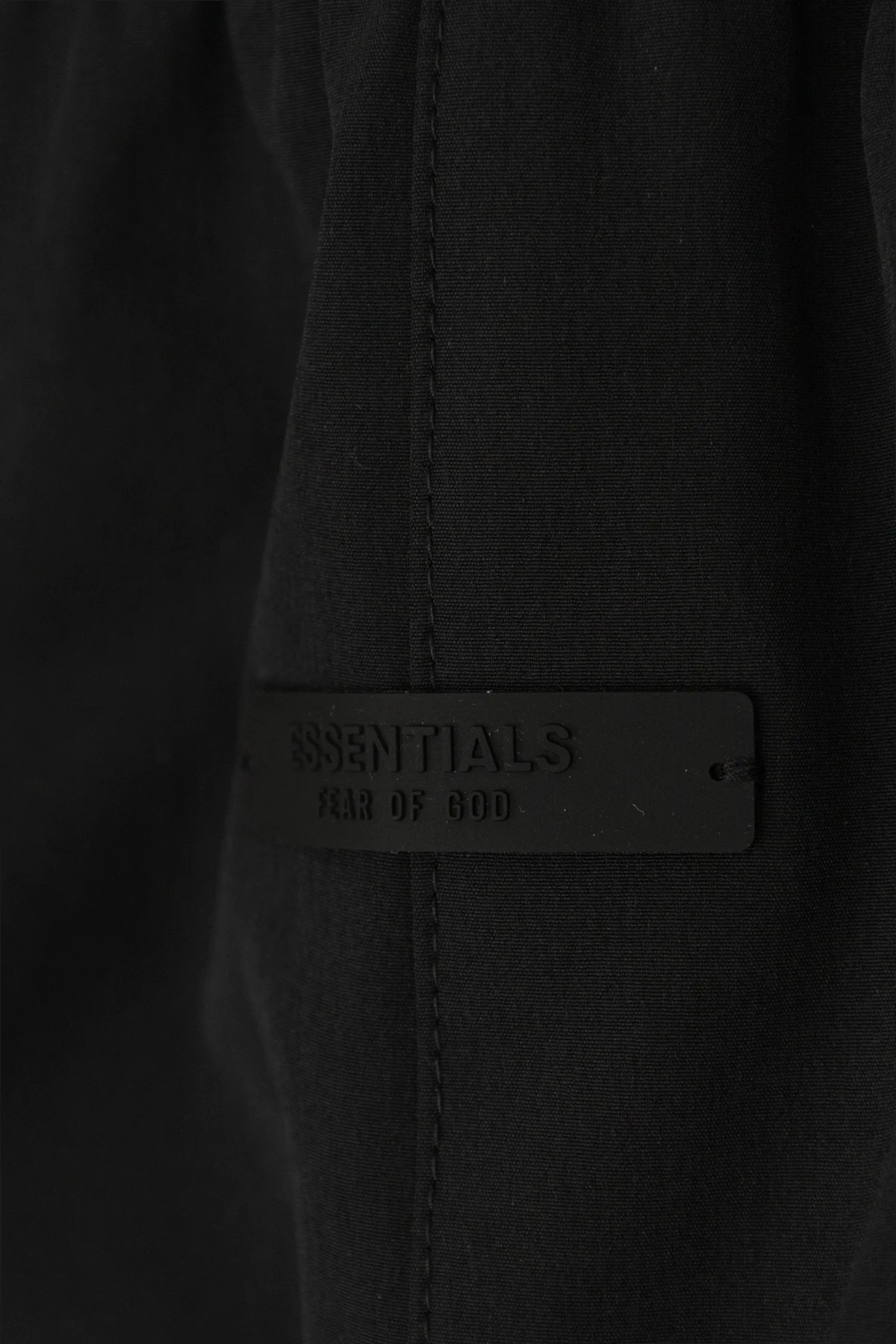 Presenting the Fear Of God Essentials Kids Cargo Pants from our exclusive collection of children\'s wear. These pants epitomize a blend of style, comfort, and durability, making them an indispensable addition to your child\'s wardrobe. Crafted from a smooth, black fabric, these cargo pants feature a classic, straight cut with wide legs to ensure utmost comfort. The material, a sophisticated blend of nylon and spandex, guarantees both durability and ease of movement. Distinctive for their large front cargo pockets, these pants also boast elasticized waistbands with a beige drawstring for an adjustable fit, ensuring they stay in place during all activities. The back of the pants also showcases additional cargo pockets, enhancing both functionality and style. A subtle, black patch on one of the side pockets bears the inscription \"ESSENTIALS FEAR OF GOD,\" signifying the brand\'s heritage and the collection\'s prestige. The dominant black color offers a versatile and elegant look suitable for any occasion. Why Choose This Product? Exclusive design by Fear Of God Essentials Kids Durable and comfortable fabric blend Adjustable waistband with stylish drawstring Ample storage with multiple cargo pockets Elegant and universal black color