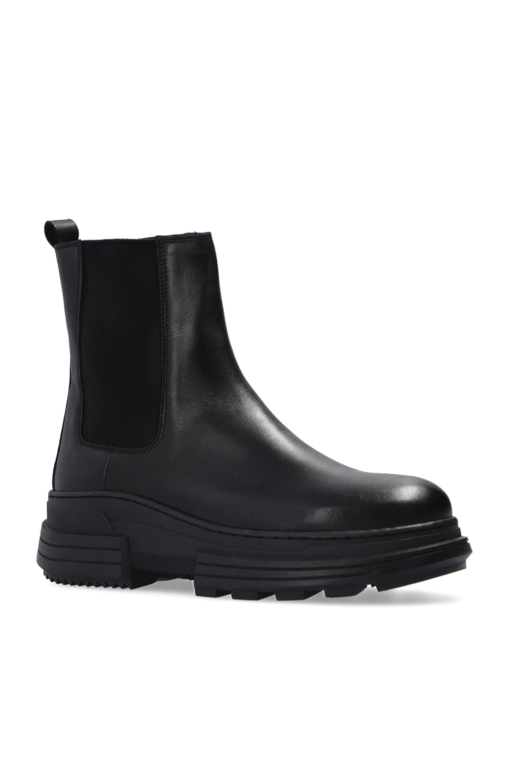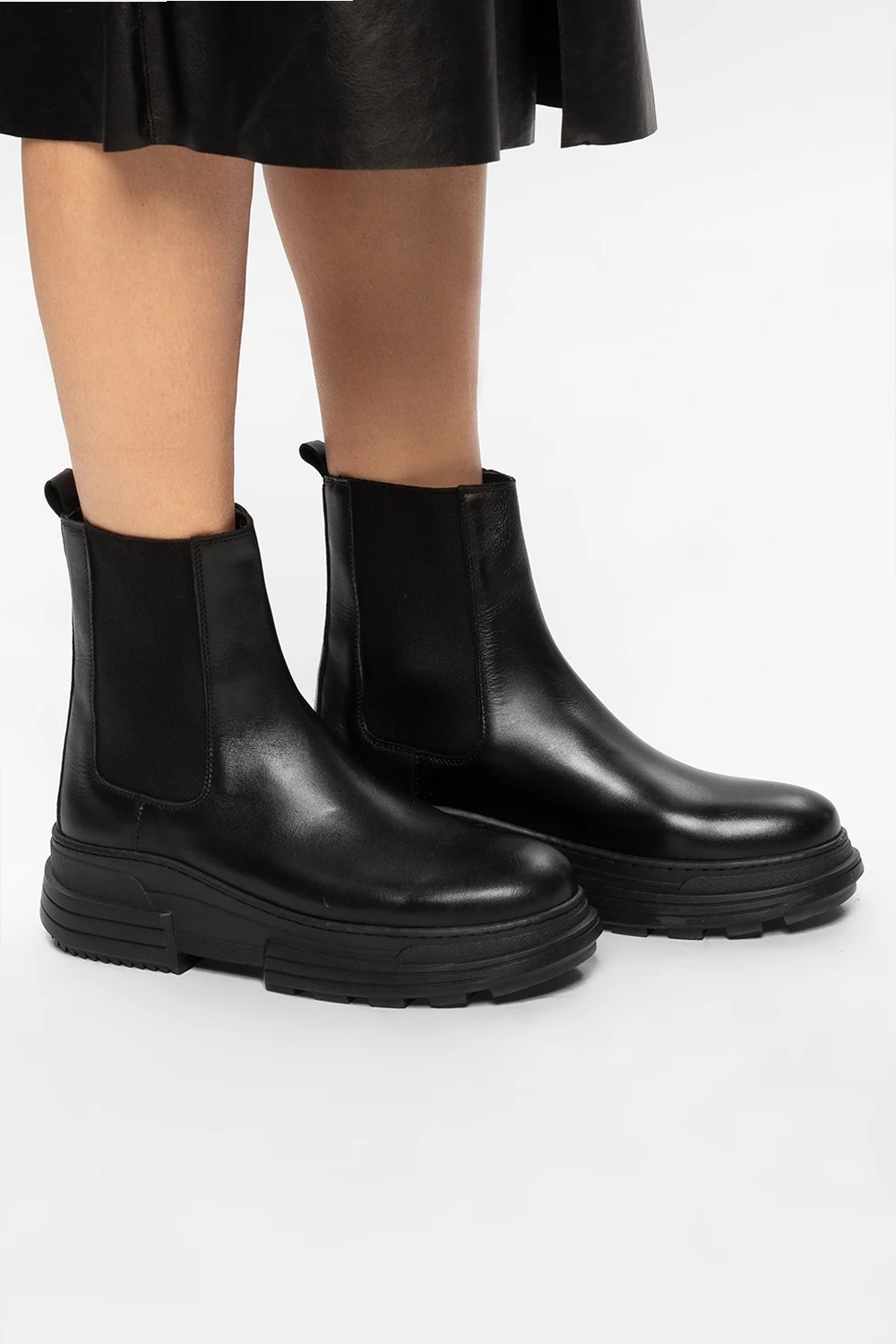 Black ‘Albinia’ Chelsea boots from Samsoe Samsoe. Crafted from leather, this pair sits on a black chunky rubber sole and features slip-on silhouette with elastic sides and back pull tab.