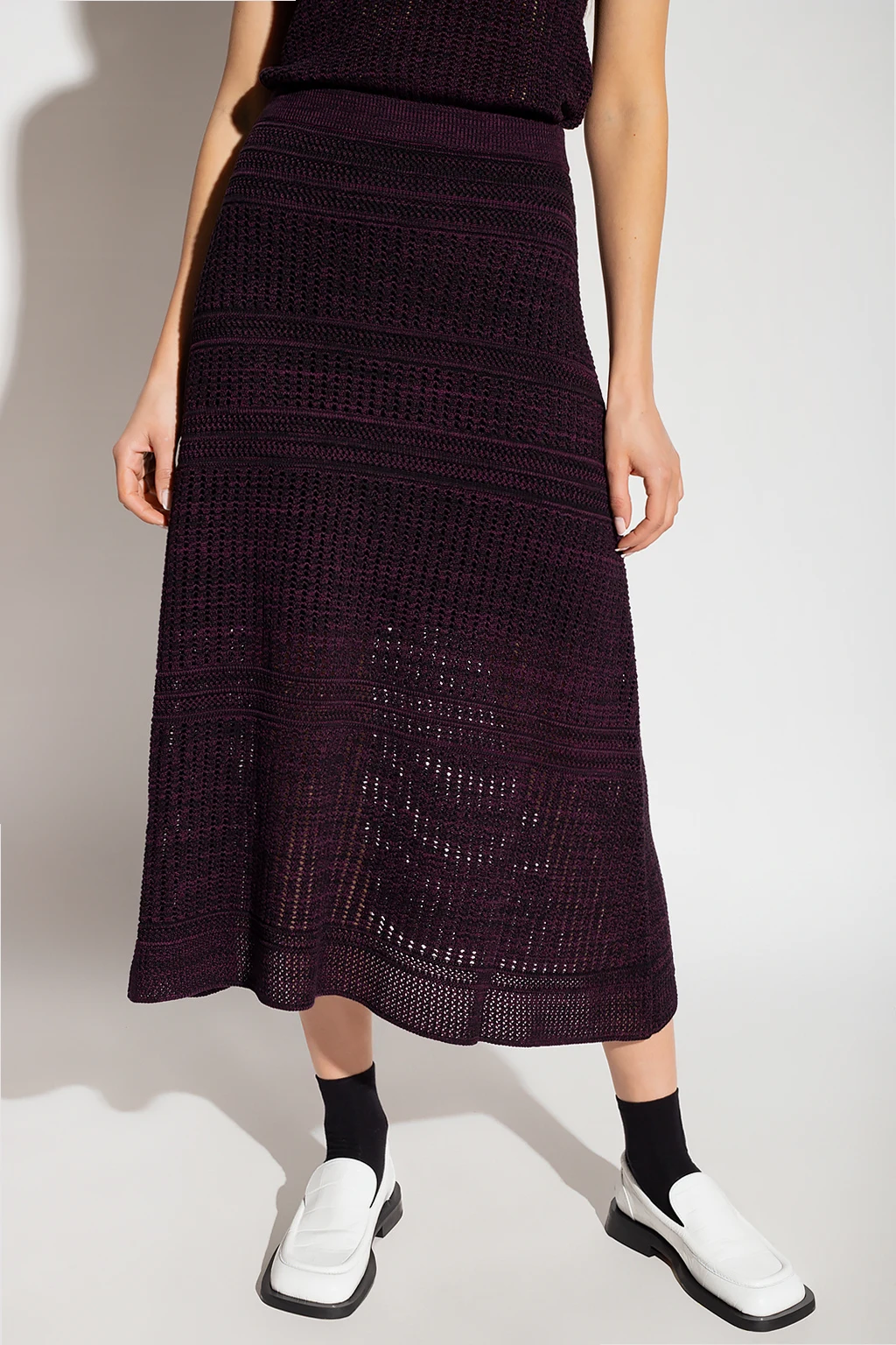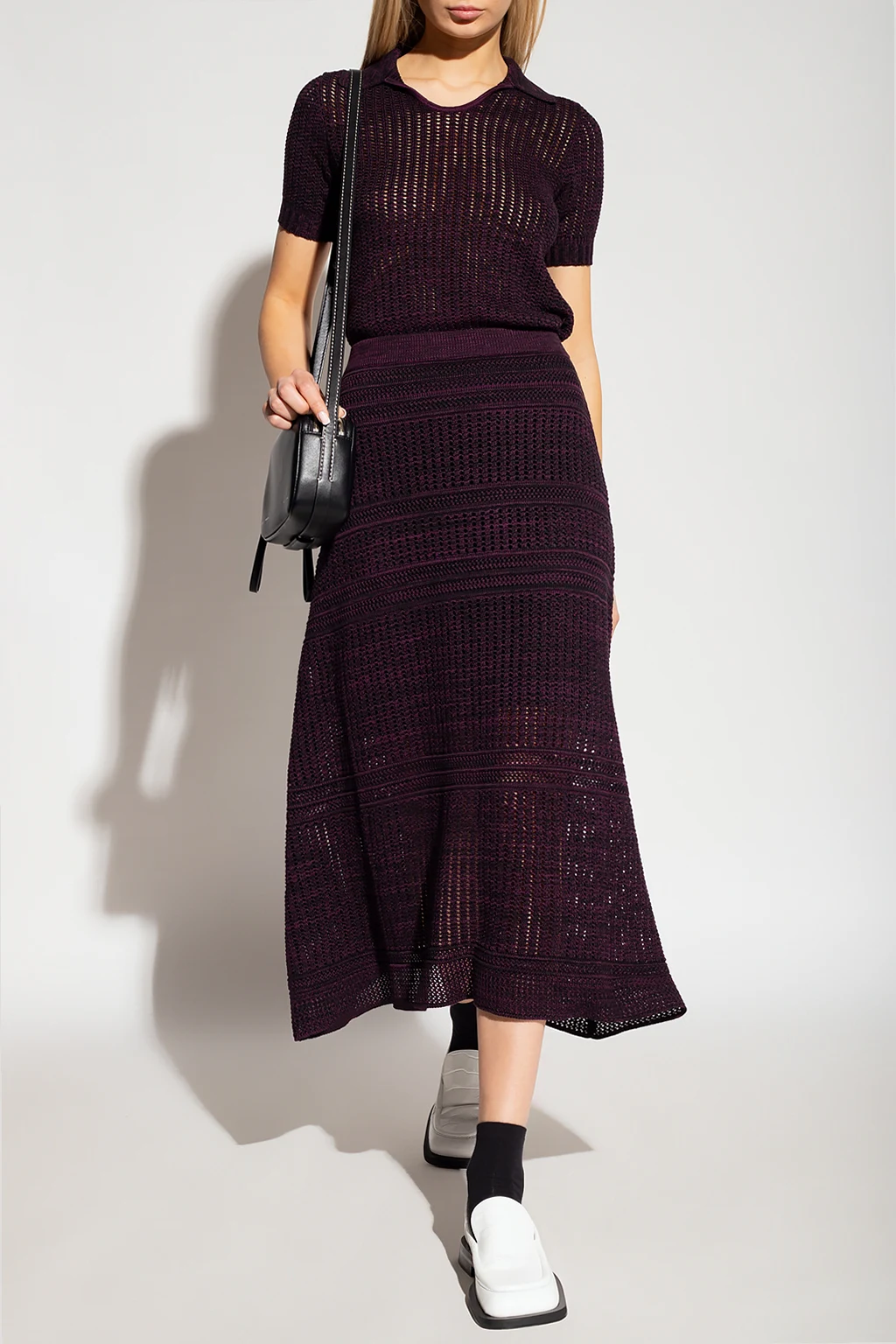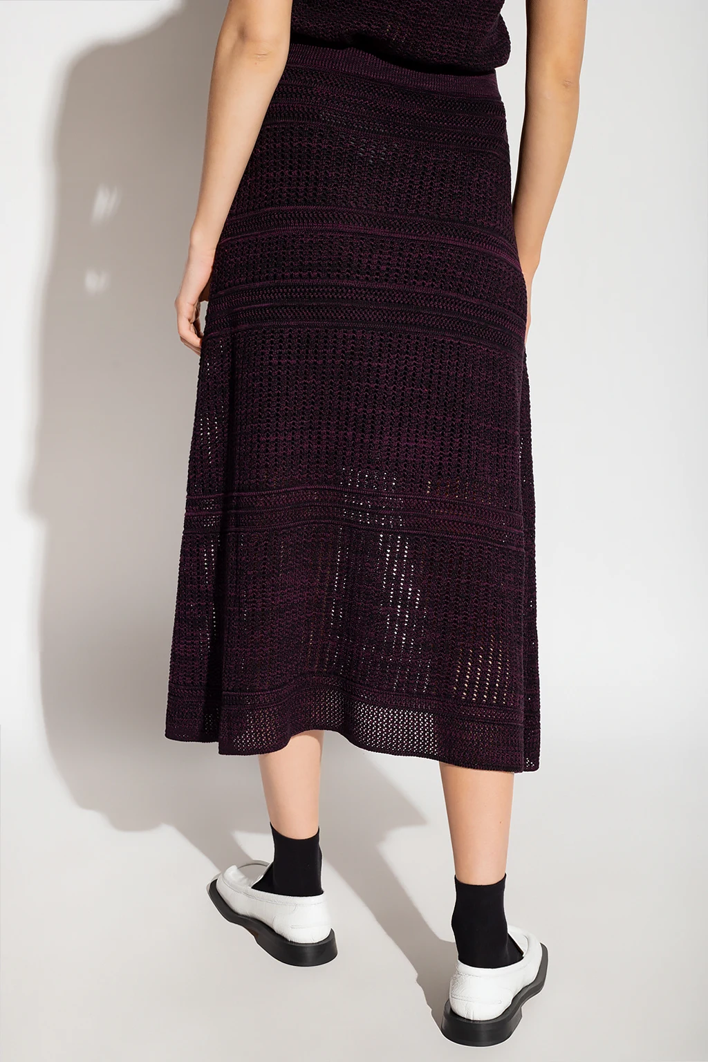 Purple and black A-line skirt from Proenza Schouler White Label. Crafted from a silk and cotton blend with an openwork design, this style features an elasticated waistband.