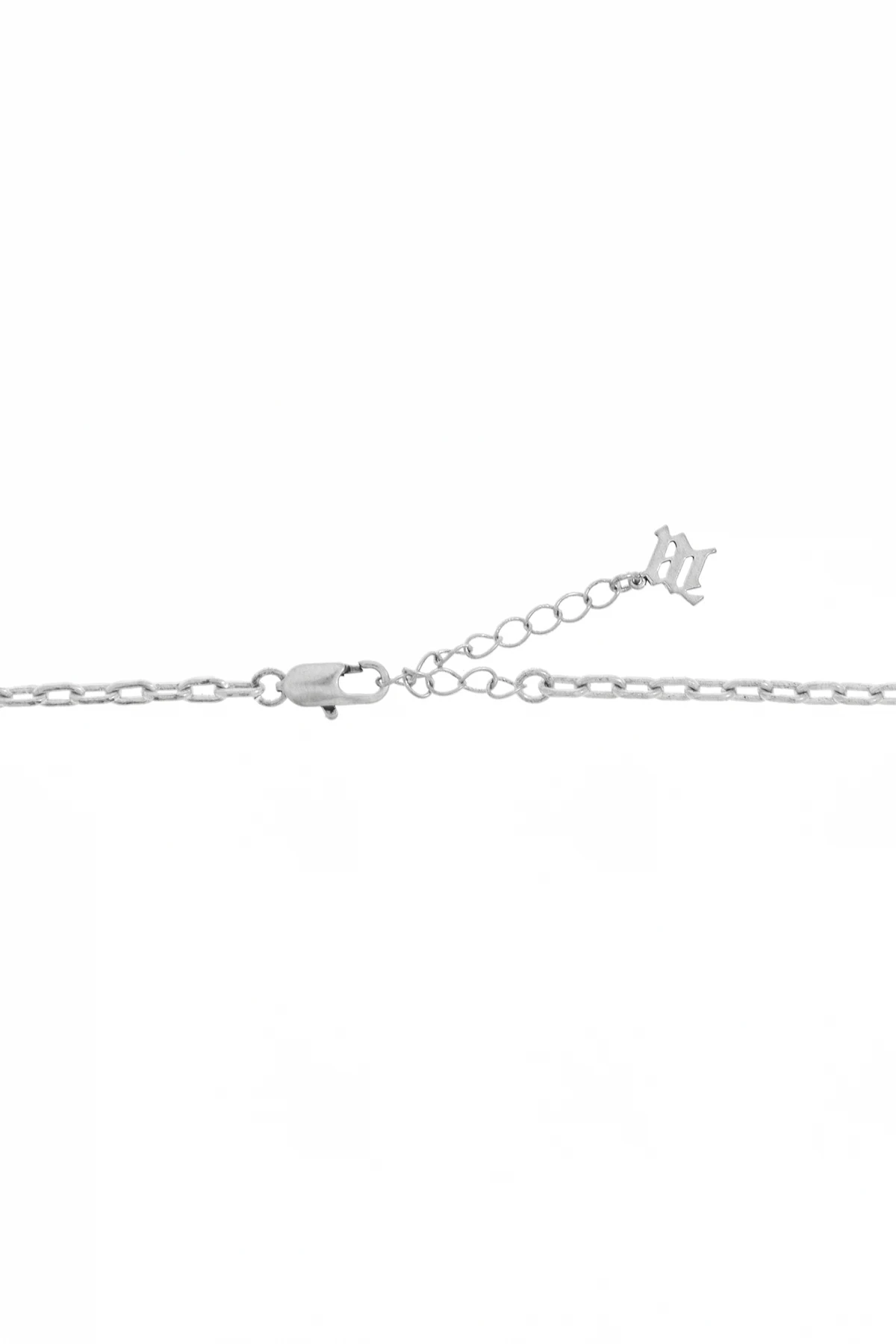 Introducing the Cross Pendant Necklace by the esteemed designer MISBHV, a distinguished addition to your luxury accessory collection. This exquisite piece is meticulously crafted, embodying sophistication and timeless elegance. The pendant features a richly adorned cross, embellished with intricate geometric patterns reminiscent of Gothic and Baroque styles, exuding an air of opulence and refinement. This luxury pendant is expertly crafted from high-quality silver metal, imparting a cool, luminous sheen synonymous with high-end fashion. The chain, also silver, boasts a simple yet classic weave, offering understated elegance. Its length ensures the pendant rests gracefully at the sternum, making it a prominent and eye-catching element of any ensemble. The necklace is equipped with a classic clasp, featuring subtle length adjustments, allowing for a customized fit. An additional small decorative charm at the chain\'s end adds a final touch of charm. This unisex necklace is versatile and can be adorned by any gender, making it suitable for both special occasions and daily wear for those who appreciate refined accessories. Why Choose This Product? Exclusive Design: Crafted by the renowned designer MISBHV, known for their bold and unconventional approach to fashion. High-Quality Materials: Made from premium silver metal, ensuring lasting elegance and durability. Versatile Style: Unisex design, perfect for any occasion, from sophisticated events to everyday chic. Adjustable Fit: Classic clasp with adjustable length for a personalized and comfortable fit. Attention to Detail: Intricate geometric patterns and a decorative end charm add unique charm and sophistication.