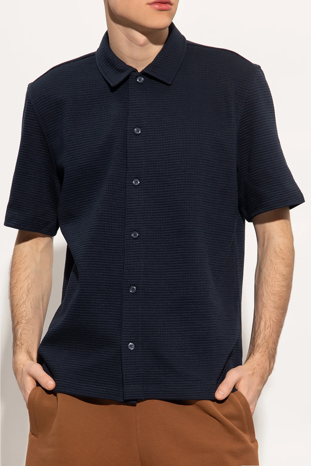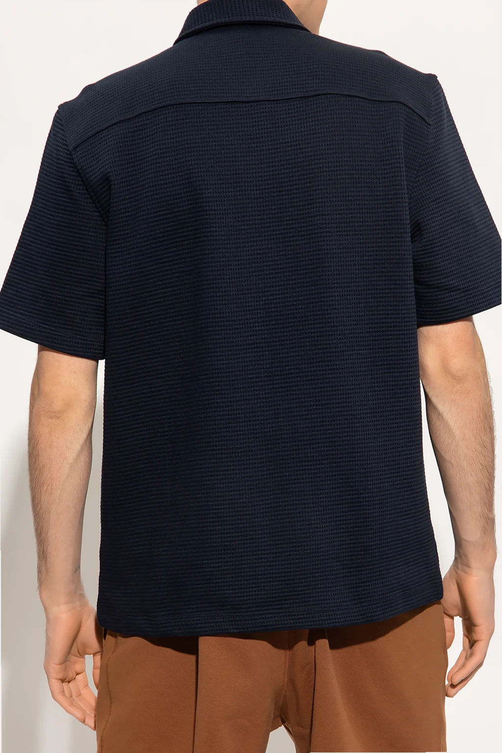 Navy ‘Kvistbro’ shirt with short sleeves from Samsoe Samsoe. Made of textured fabric, this short sleeve design fastens with buttons.
